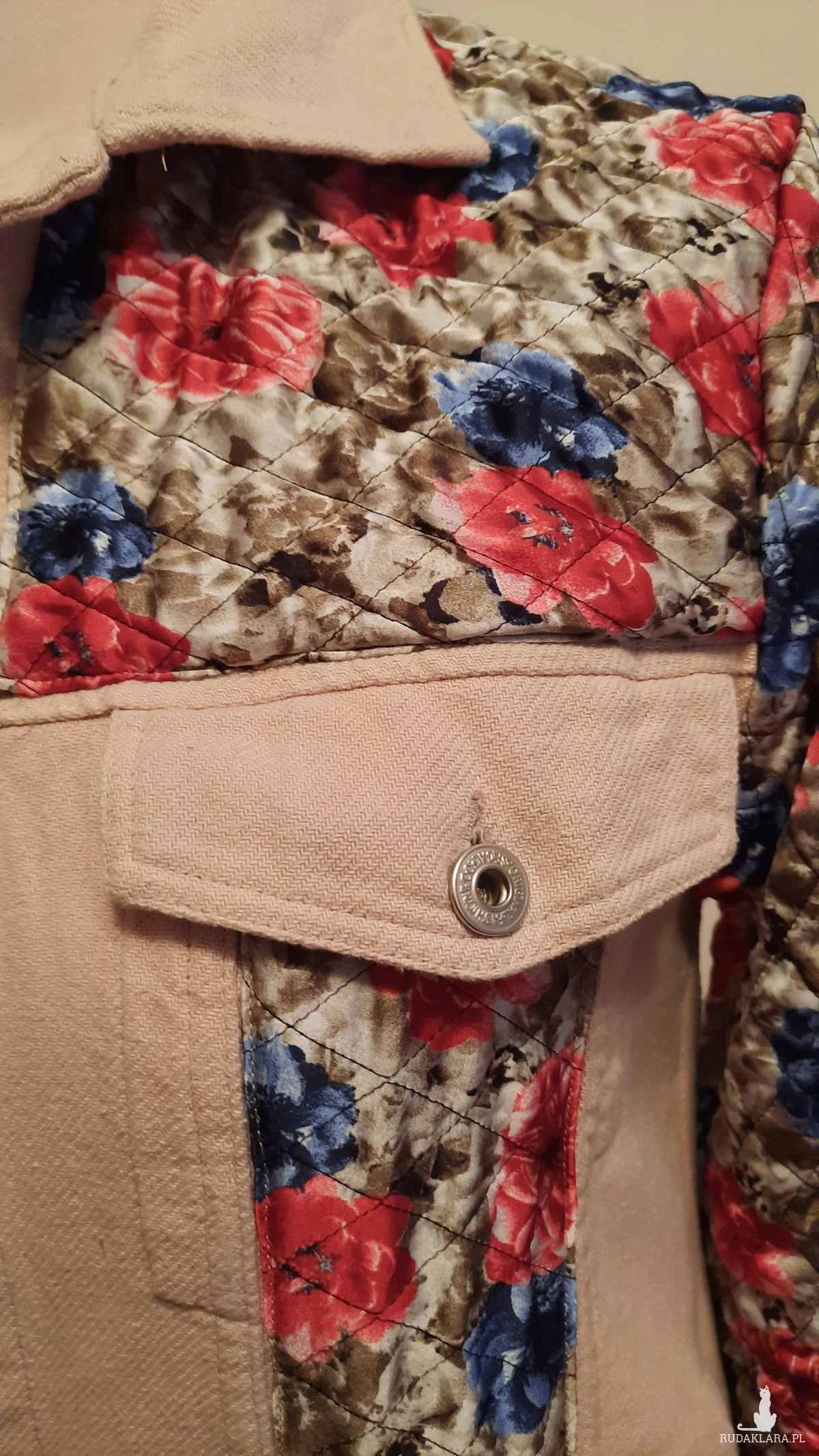 Sprzedam optymistyczną beżową kurtkę z rękawami i dodatkami z resztek pikowanej tkaniny! Mój projekt z serii nic nie może być nudne!!! Rękawy ,plecy i przód super ozdobione. Wszystko 100 % mój projekt,nie będzie drugiej takiej. Pięknie wygląda , do pracy ,na spacer! ! Długość 70 szer,dół 104 cm, międzypachami 2x50. POLECAM jedyna taka dla Ciebie 🙂 DAJĘ RZECZOM DRUGIE ŻYCIE