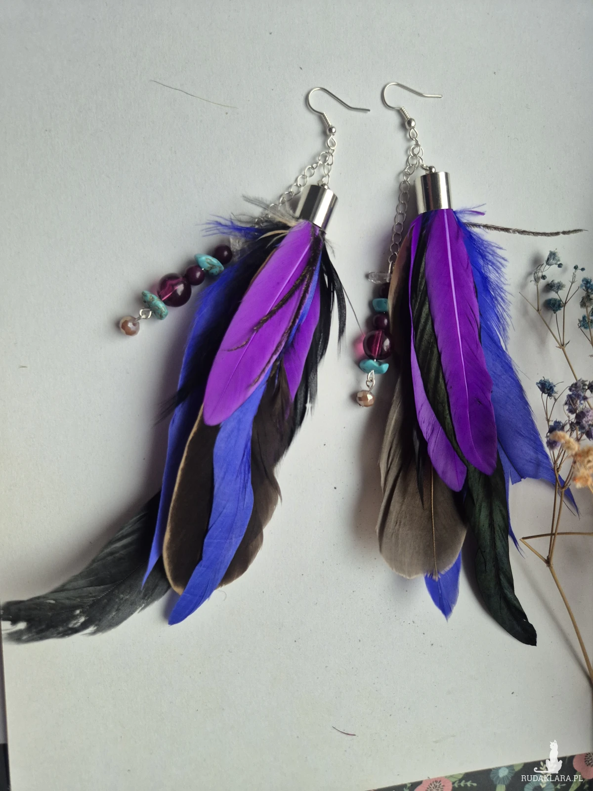 Kolczyki pióra boho kolorowe lekkie wykonane w pojedynczym egzemplarzu