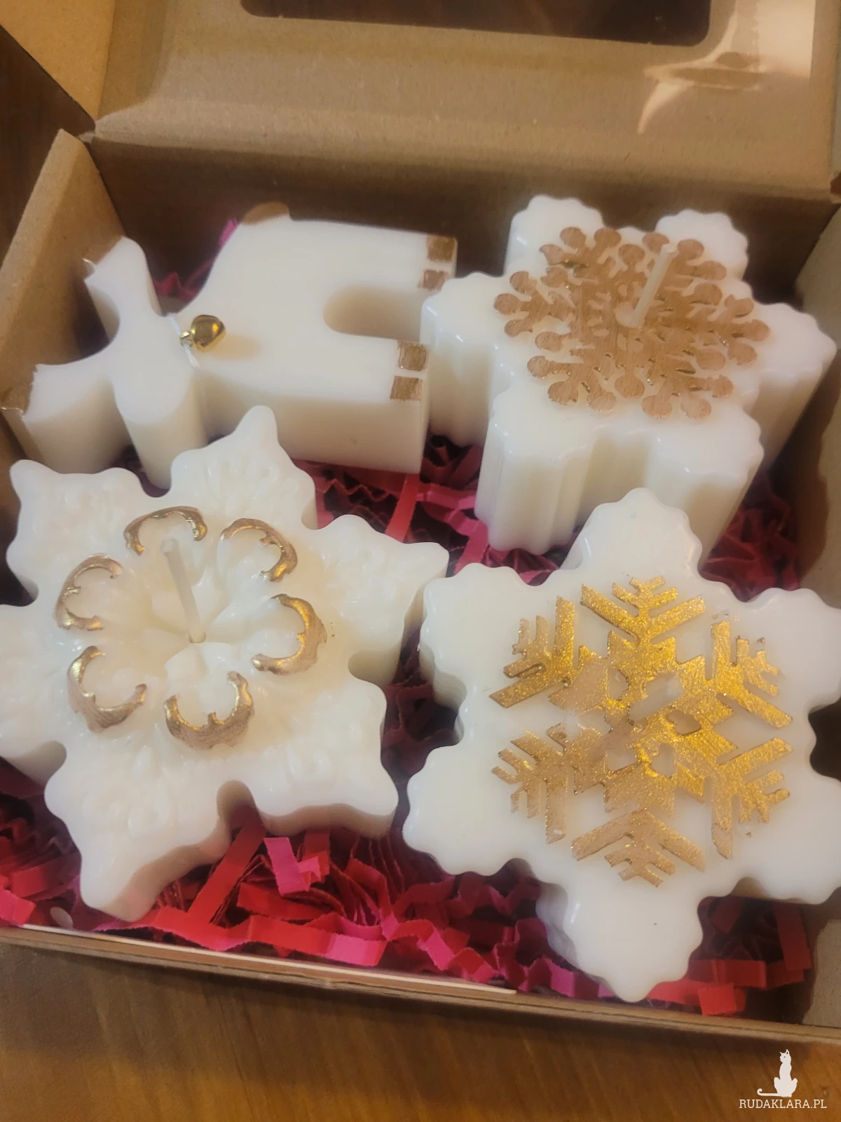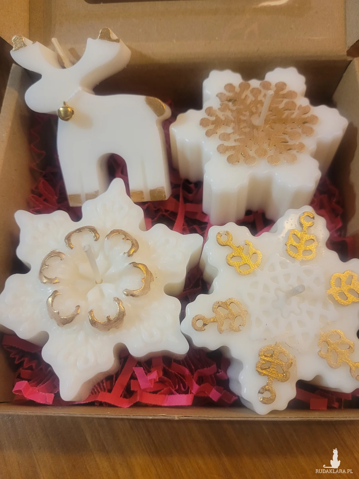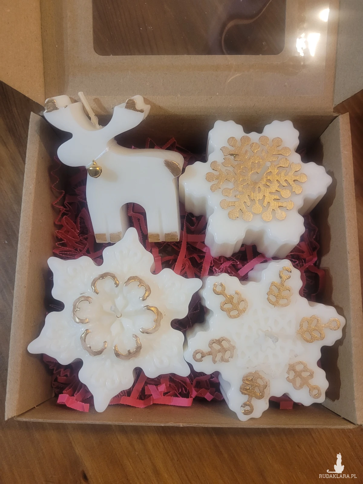 Piekny box upominkowy ze świecami sojowymi w pudełku z okienkiem. .