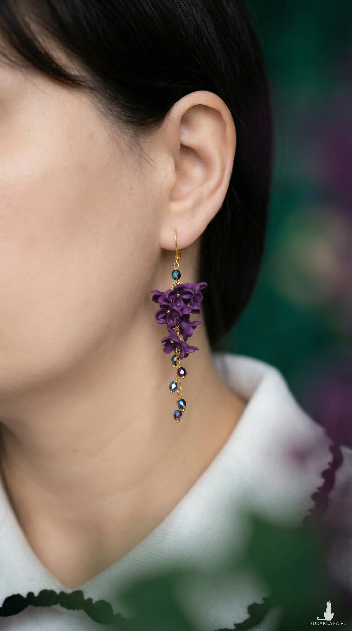 Eleganckie, ręcznie wykonane kolczyki z kwiatuszkami w kolorze oberżyny 🤗