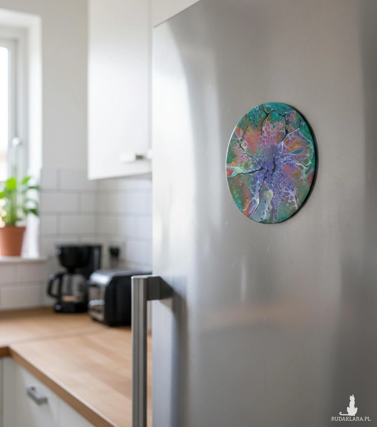 Ten magnes na lodówkę to mały obraz, który nosi w sobie całą moc koloru i emocji.