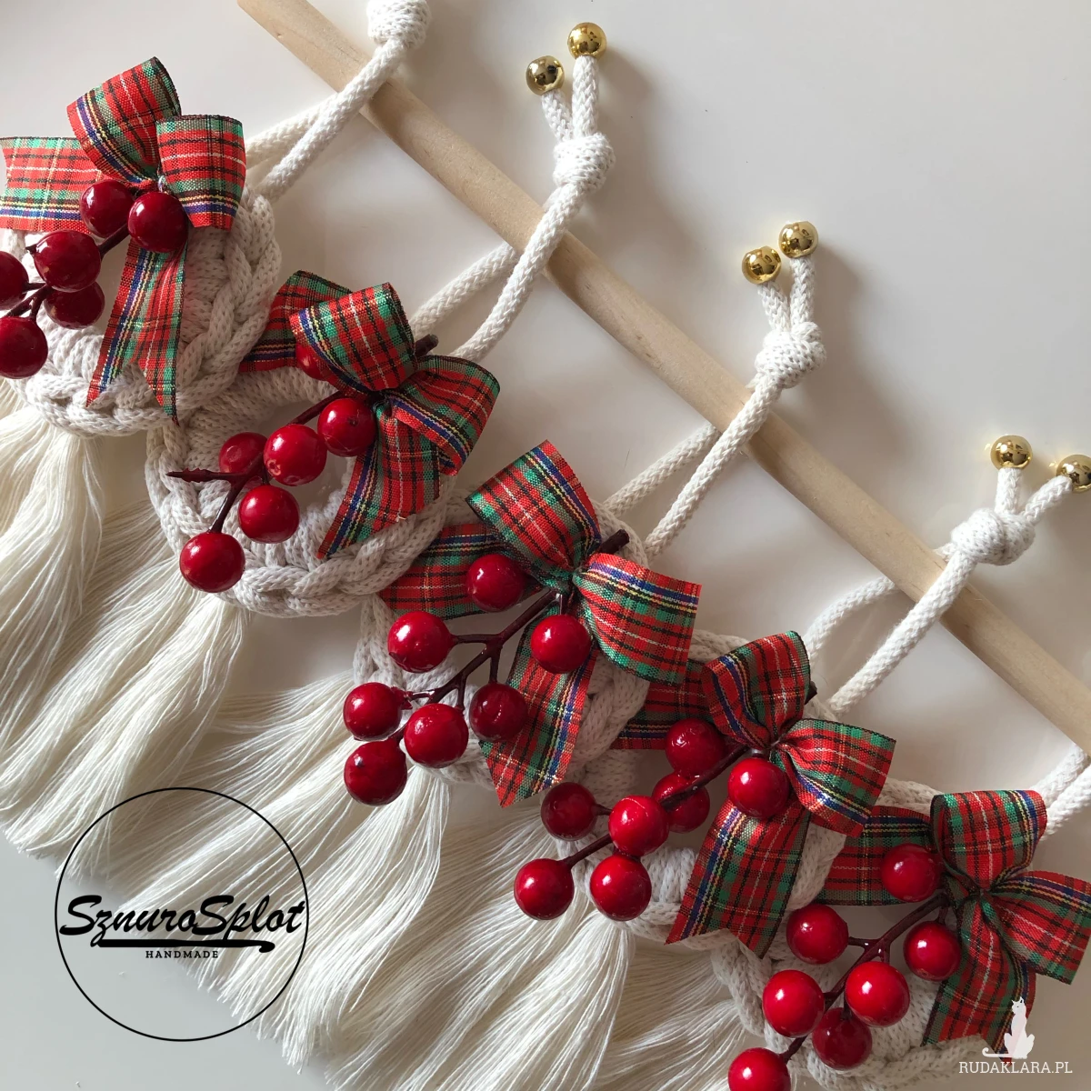 Prezentowany wzór ozdoby świątecznej ma długość 28 cm, kolor ecru.