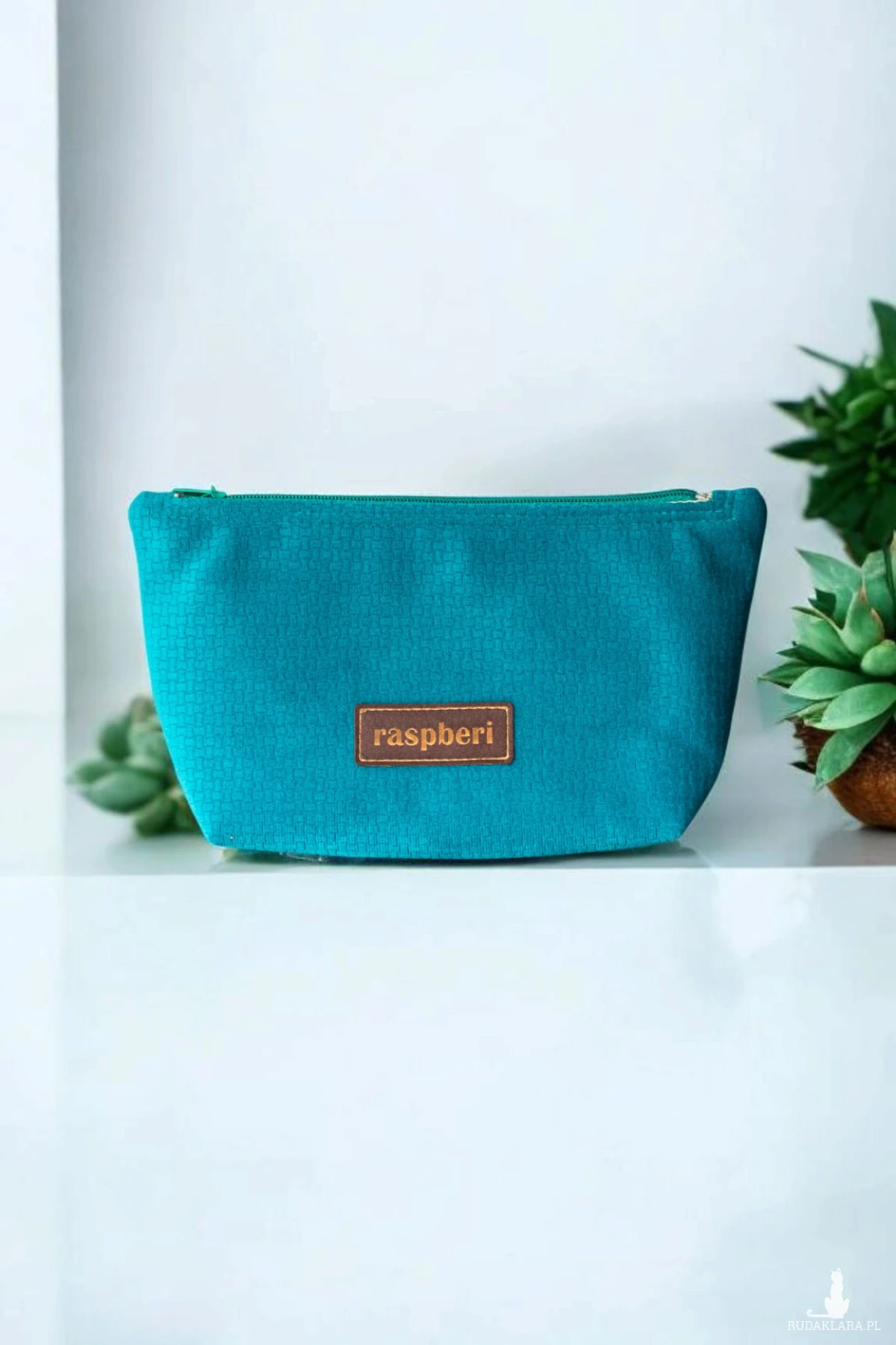 Średniej wielkości kosmetyczka w kolorze turkusowym.