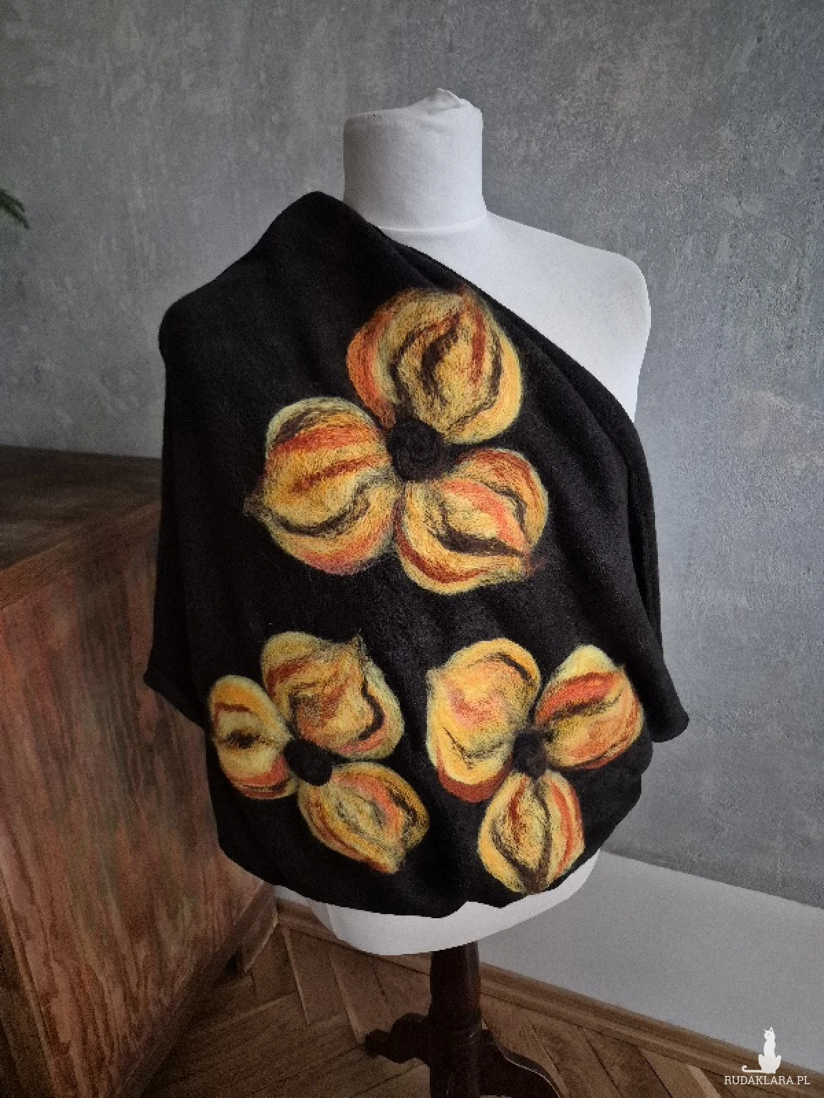 Super prezent na dzień mamy czarny filcowany wełniany miły i ciepły komin handmade, owijany dwa razy, filcowany wełną merynosów, bardzo ciepły i miły, doskonały na prezent, fantastyczny na codzienne noszenie, zwraca uwagę, dodaje koloru, nie zginiesz w tym kominie na ulicy, pojedyncze egzemplarze, polecam bestseller,box x1