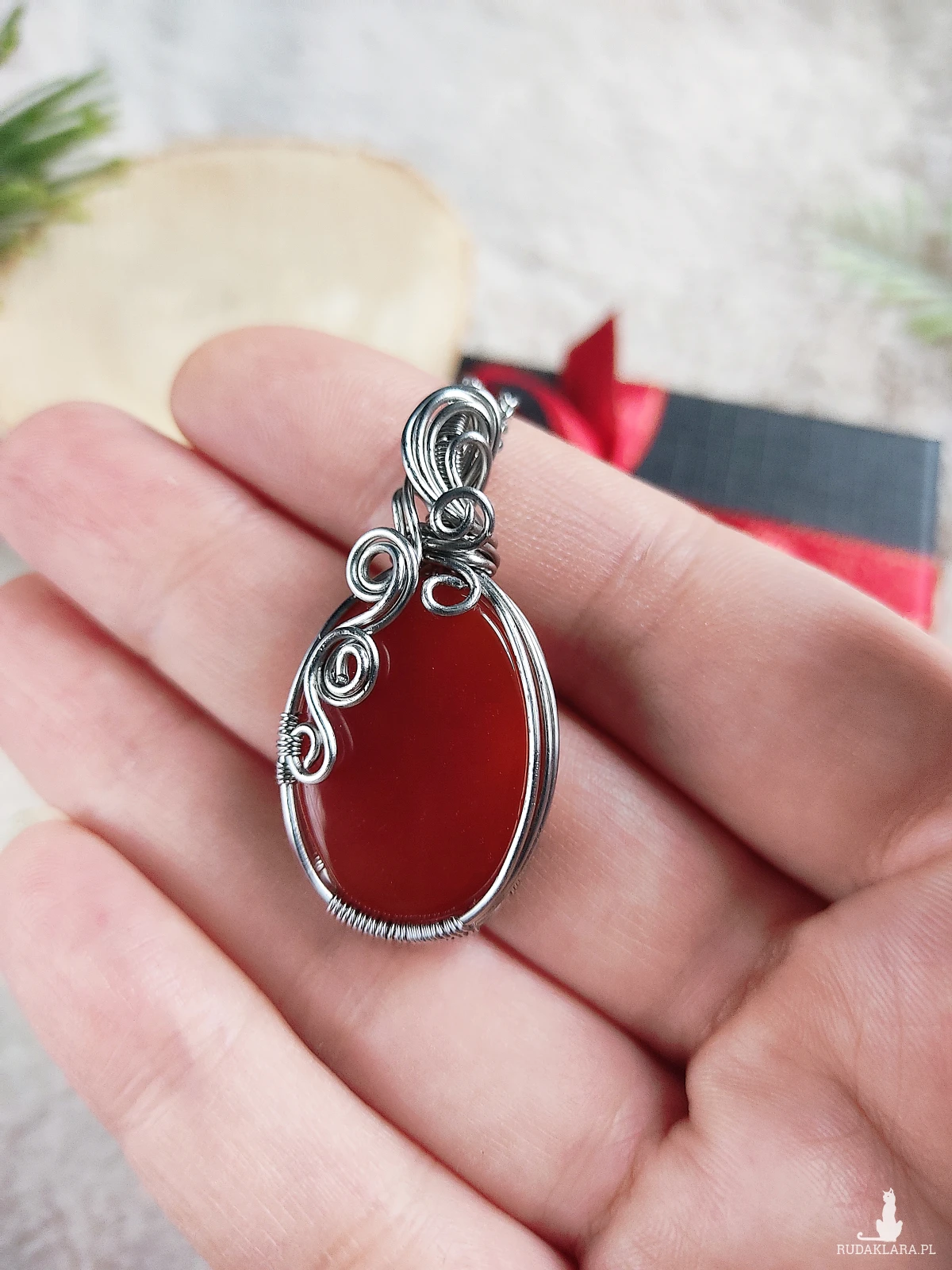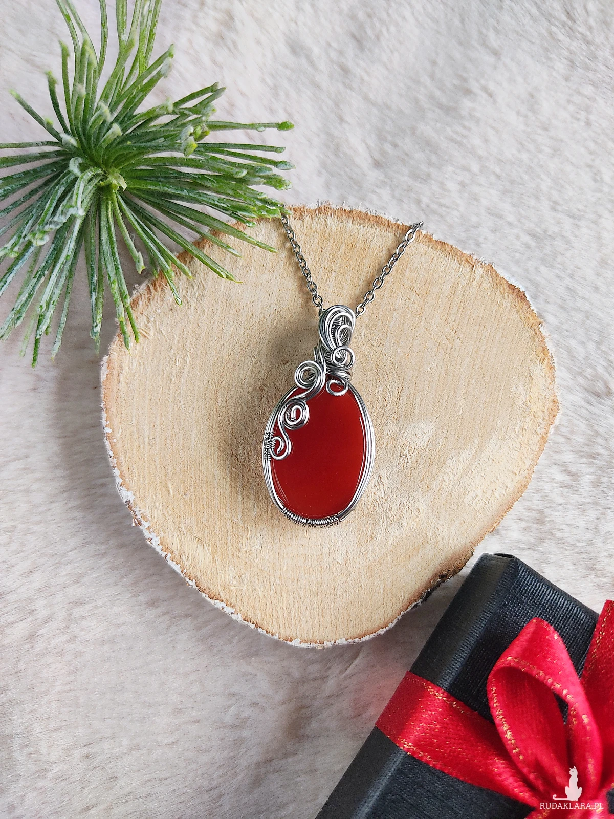 Podsumowując, naszyjnik "Świąteczne Ciepło" to ręcznie robiony naszyjnik z czerwonym agatem, który łączy naturalne piękno kamienia, precyzyjne wykonanie metodą wire wrapping i trwałość stali chirurgicznej. To idealna biżuteria zimowa oraz wyjątkowy prezent na święta, który doda elegancji i ciepła każdemu zimowemu lookowi.