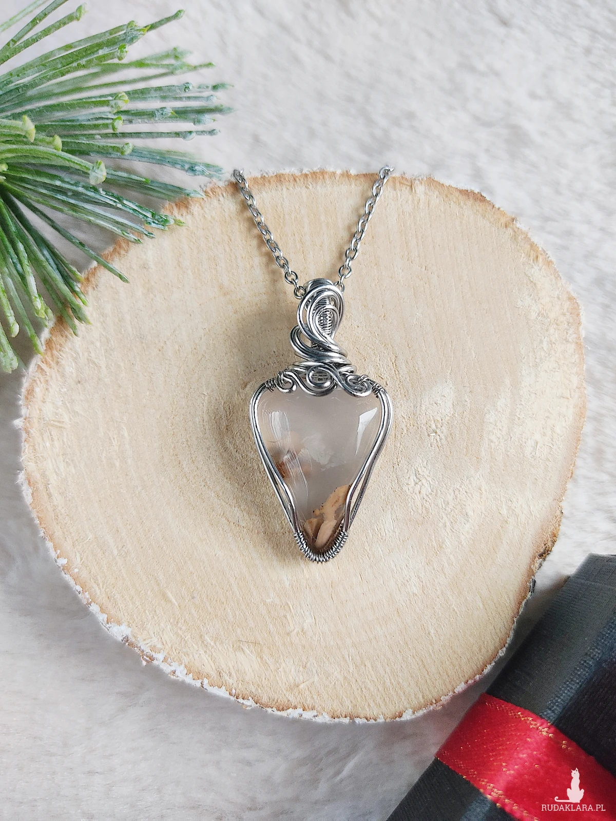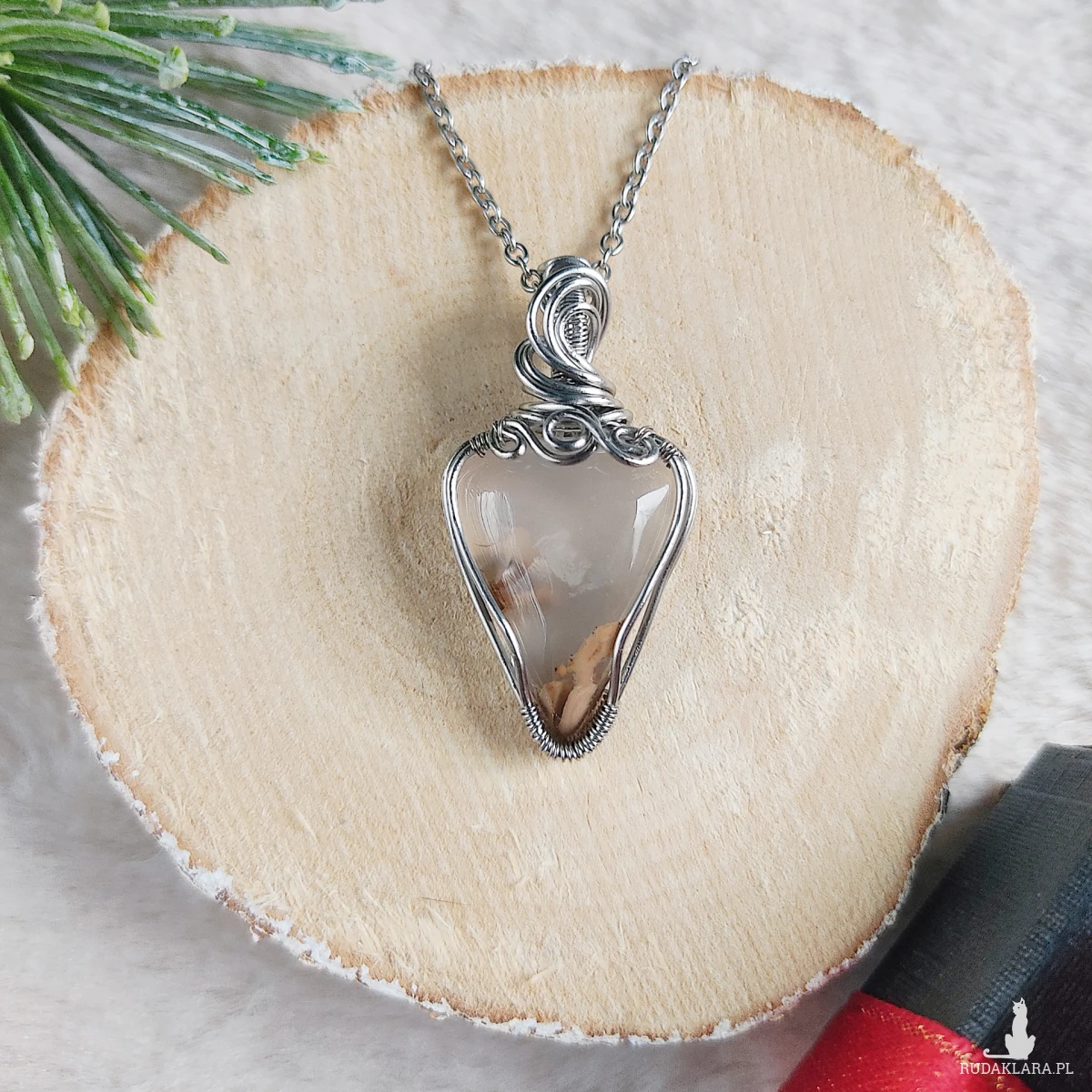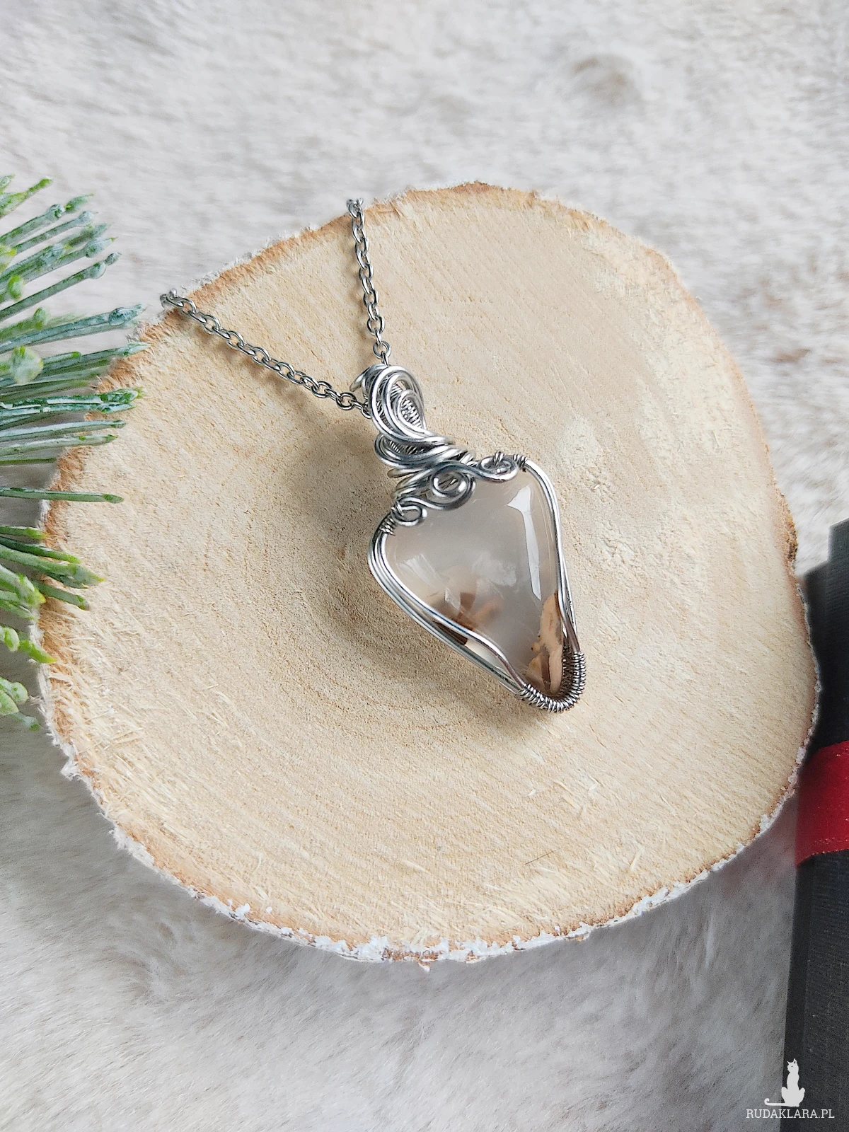 Naszyjnik Agat River Lace "Zimowy Brzeg" ręcznie wykonany z drutów ze stali chirurgicznej metodą wire wrapping.