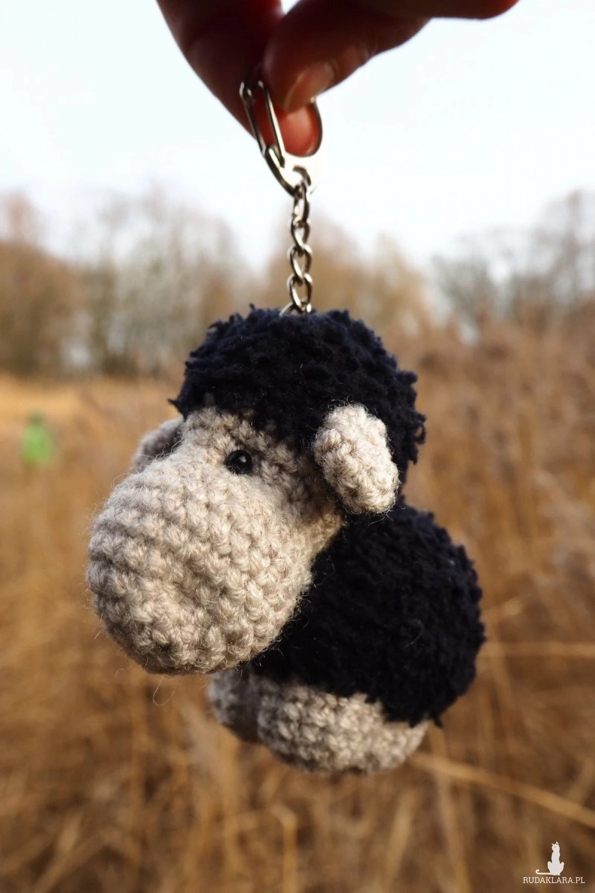 Sympatyczny brelok owieczka wykonany ręcznie z fantazyjnej włóczki na szydełku.