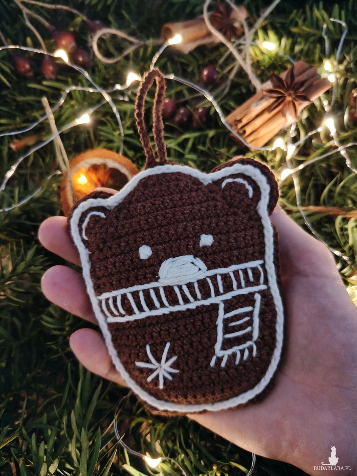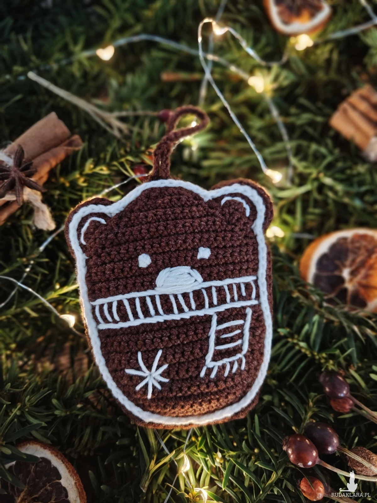 Szydełkowy pierniczek w kształcie Misia to oryginalna zawieszka na Twoją choinkę lub niepowtarzalny świąteczny prezent dla blikiej osoby i pamiątka na lata.