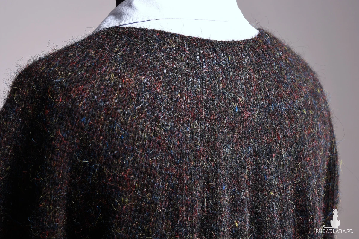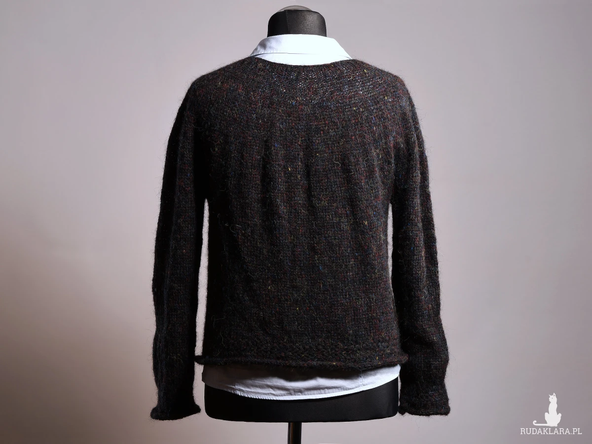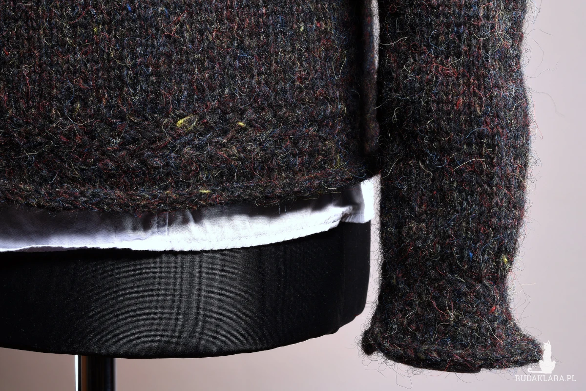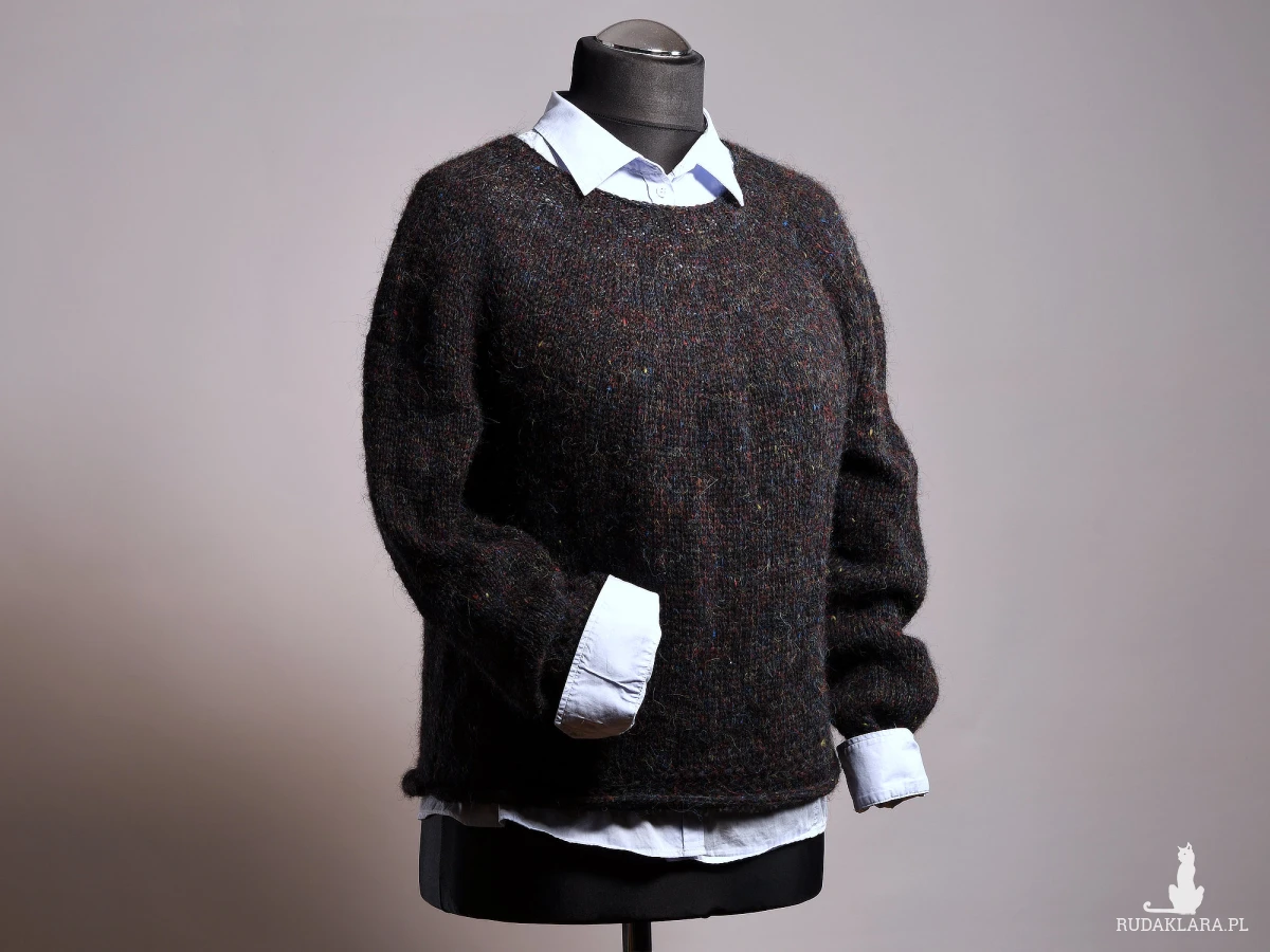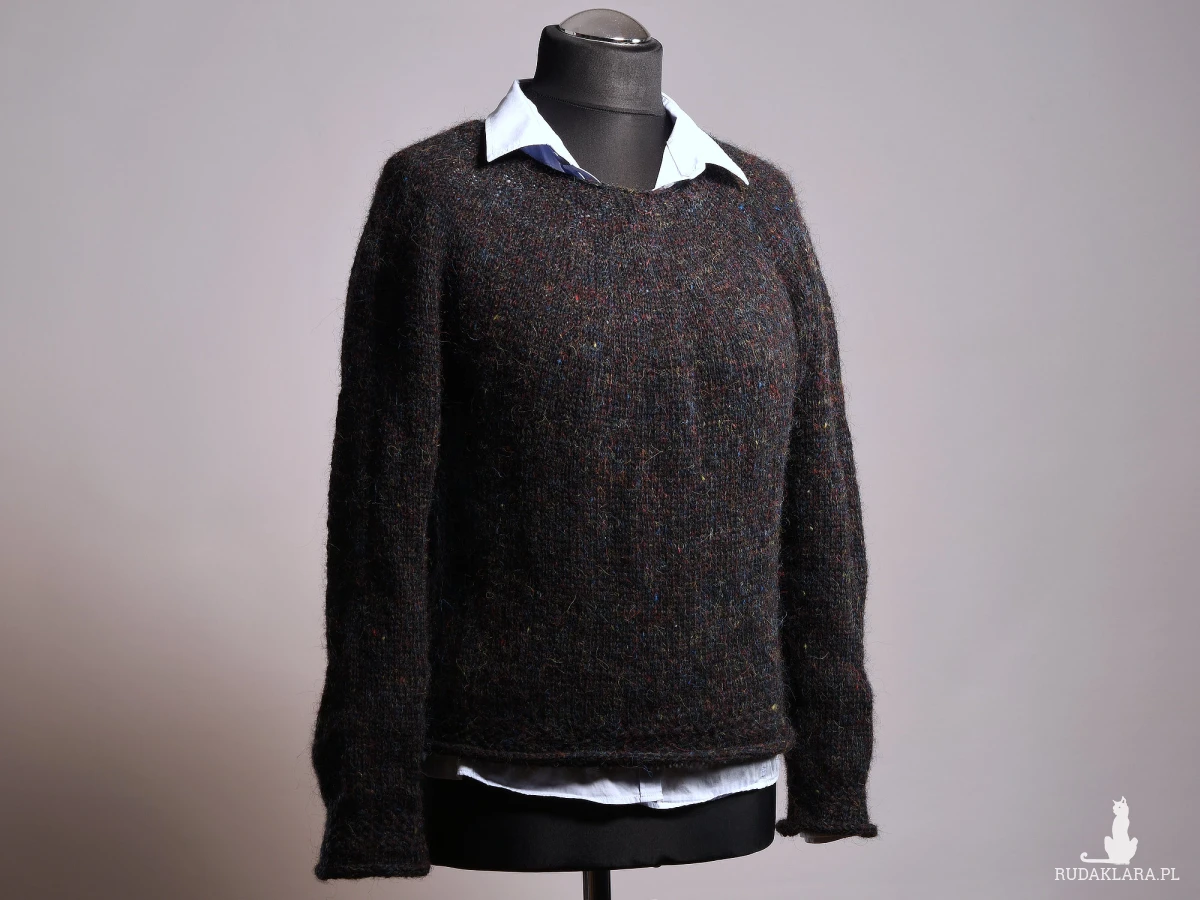 Elegancki damski sweter wykonany ze znakomitej jakościowo owczej wełny Plotulopi z Islandii. Sweter zrobiony ręcznie, zrobiony na drutach. Dzianina w rozmiarze L. Reglan z półokrągłym dekoltem. By sweter nie wydawał się zbyt obszerny, boki zaznaczyłam plisą z motywem plecionki. Dół swetra i rękawów wykończyłam tym samym motywem oraz delikatnie podwijającą się tasiemką I cord. Sweter znakomicie się sprawdzi zarówno w biurze jak i na nartach.