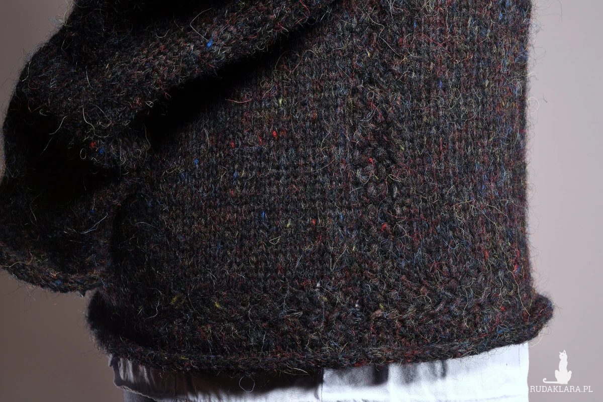 Rozmiar: L Długość: 58 cm (22,8'') Szerokość: 96 cm (37,8") Długość rękawów: 62cm (24") Materiał: Wełna Plotulopi ISTX Pielęgnacja: Prać ręcznie. Nie wyżymać. Suszyć rozłożone na płasko