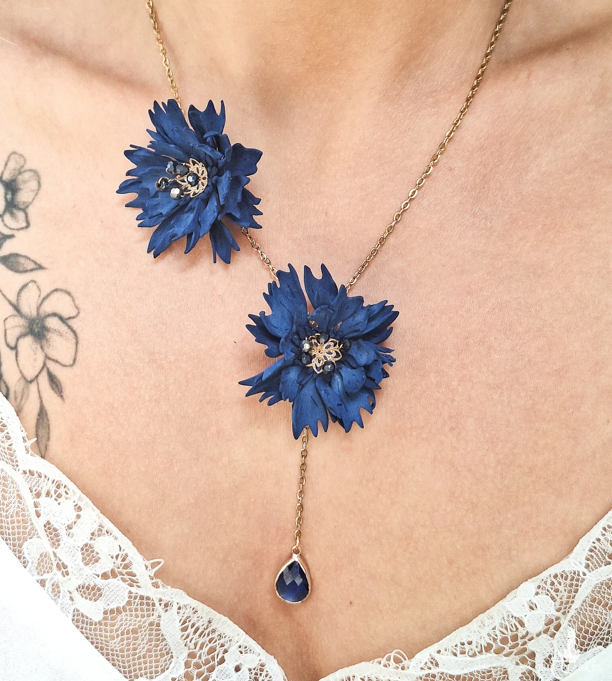Bo ja mam coś, co skradnie Wasze serducha- naszyjnik inspirowany właśnie tymi cudnymi kwiatami. Intensywny chabrowy kolor, czarne połyskujące koraliki na końcówkach pręcików i kropla w odcieniu głębokiego błękitu, no po prostu magia! Idealny na wyjątkowe okazje, ale też żeby dodać charakteru codziennym stylizacjom.