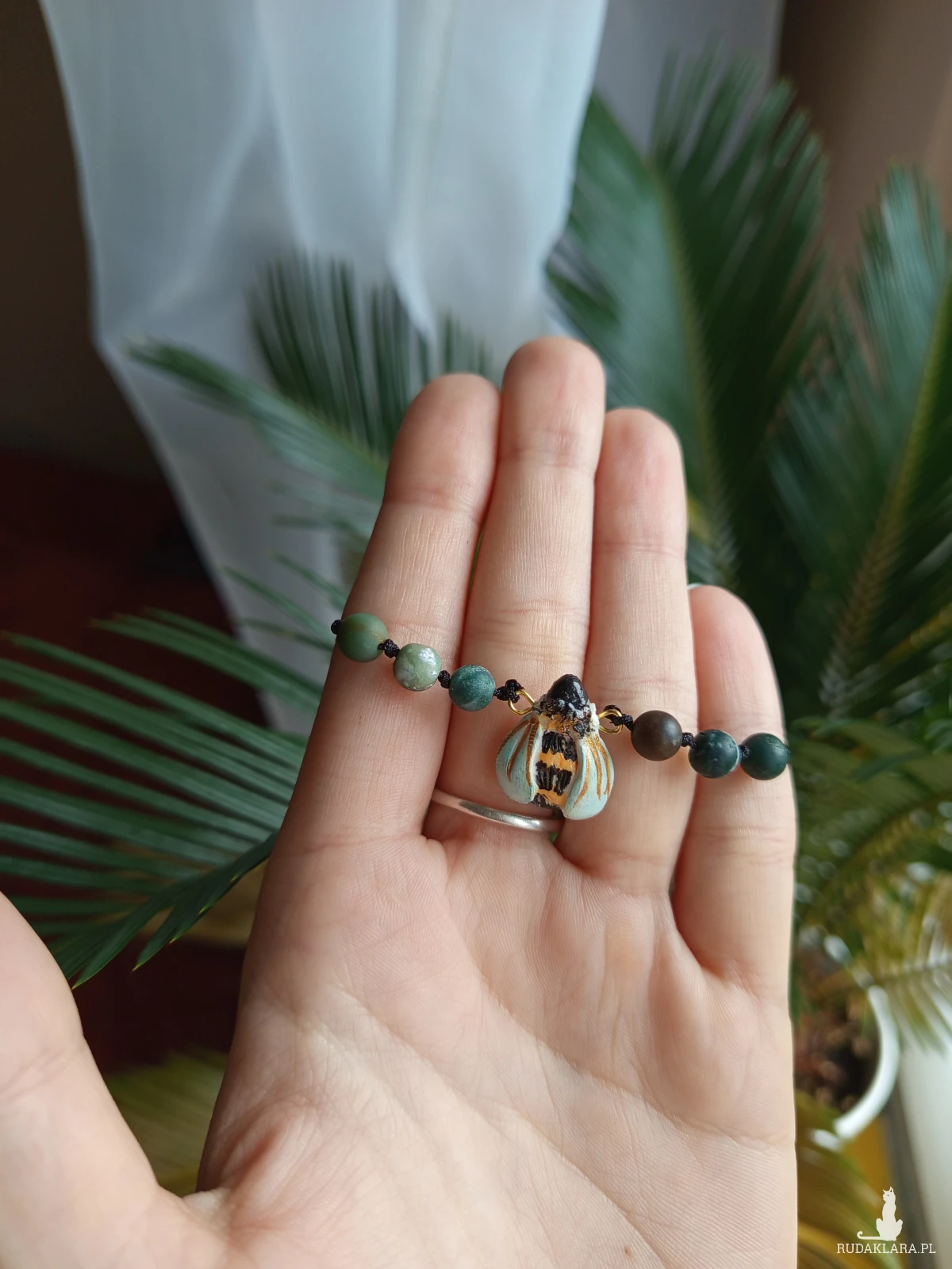 🐝💎 Bransoletka z pszczółką i agatem – regulowana 💎🐝