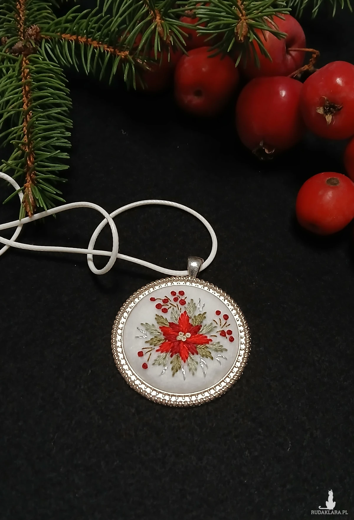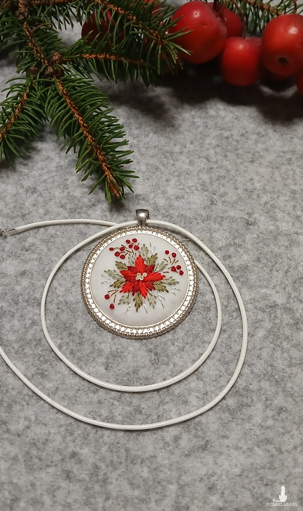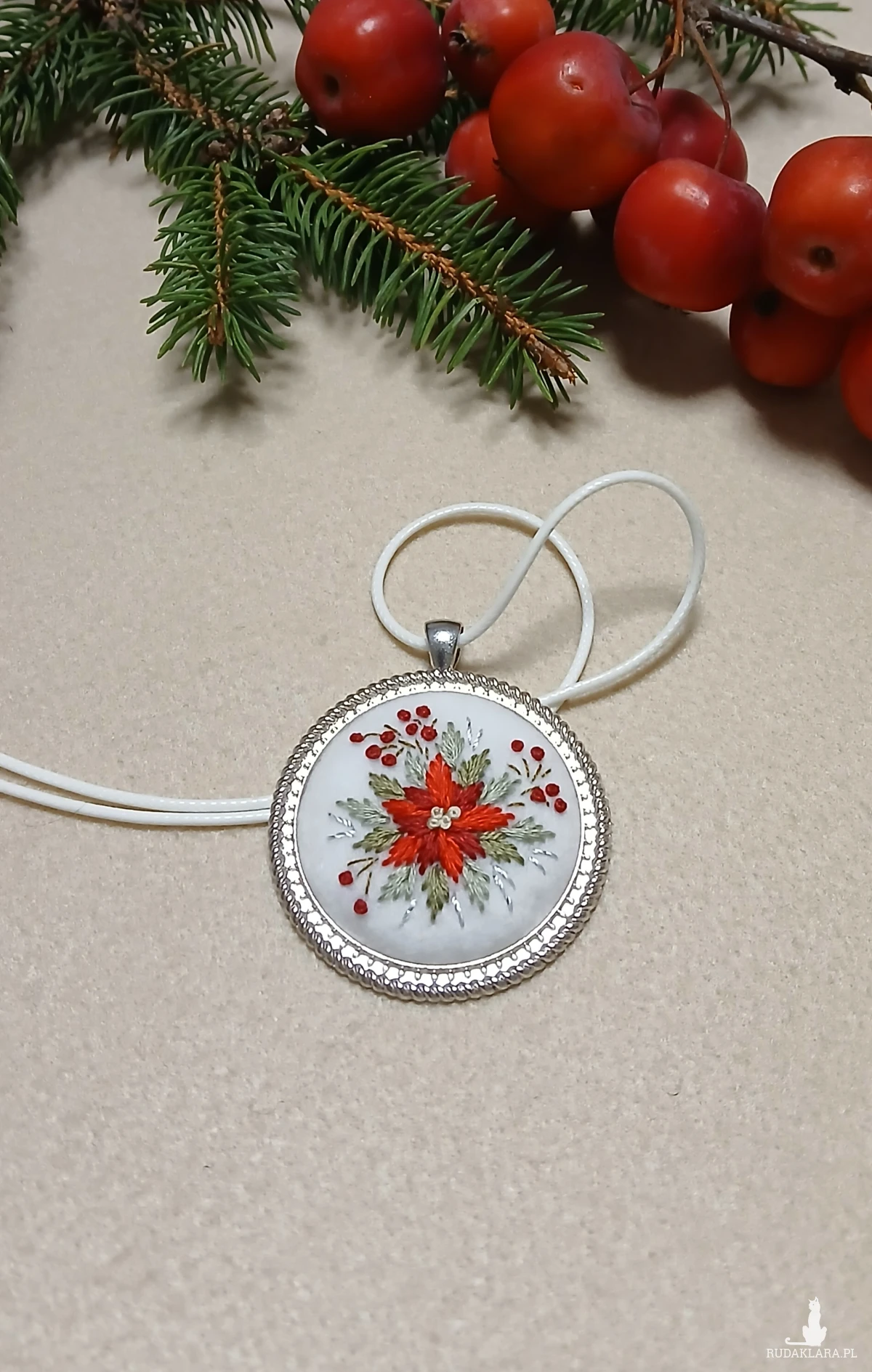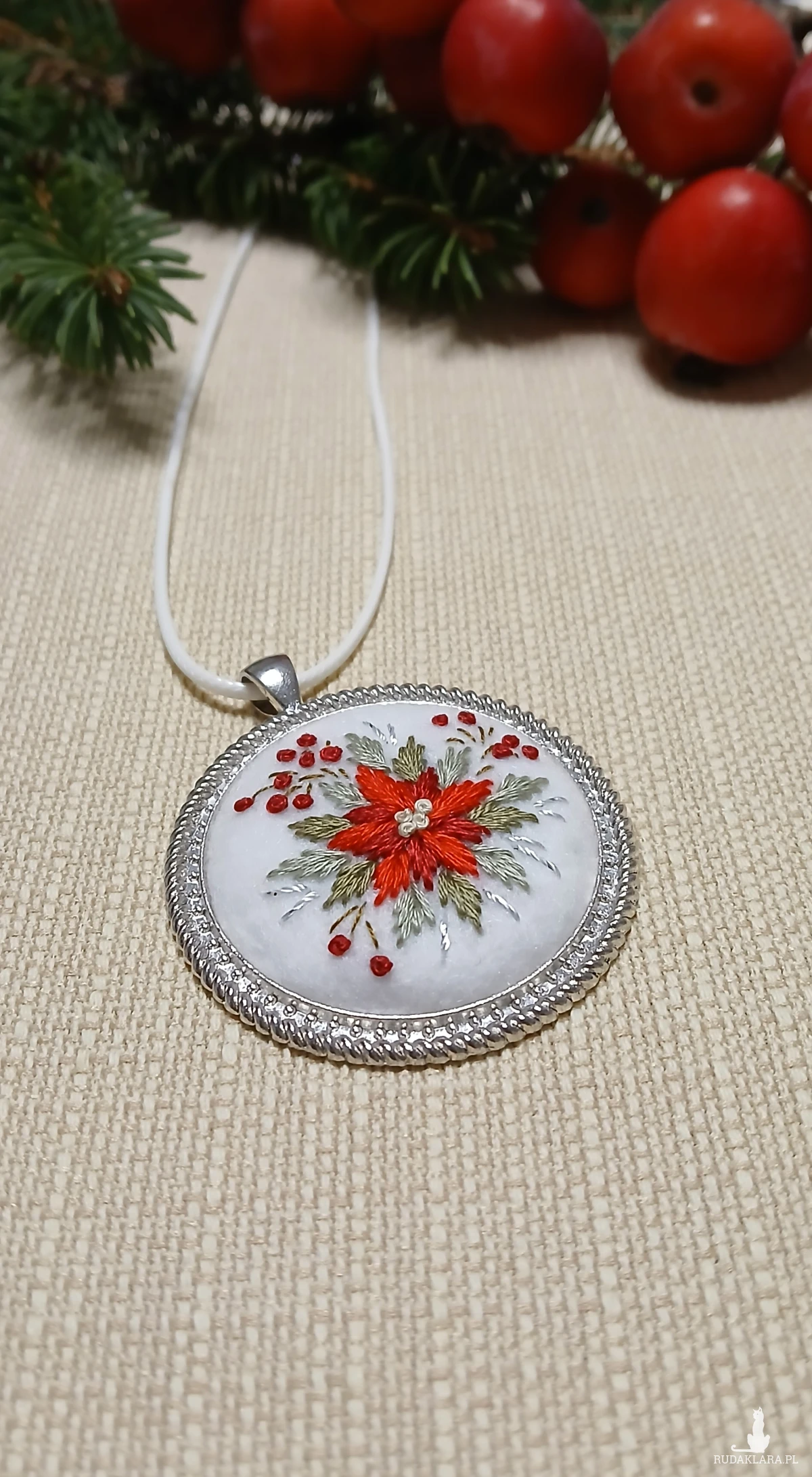 Perfekcyjnie dopracowany haft na filcu wykonałam polską bawełnianą muliną za pomocą igły. Jest on zabezpieczony impregnatem do tkanin ale po dłuższym użytkowaniu można go odświeżyć przy pomocy delikatnego mydła i letniej wody.