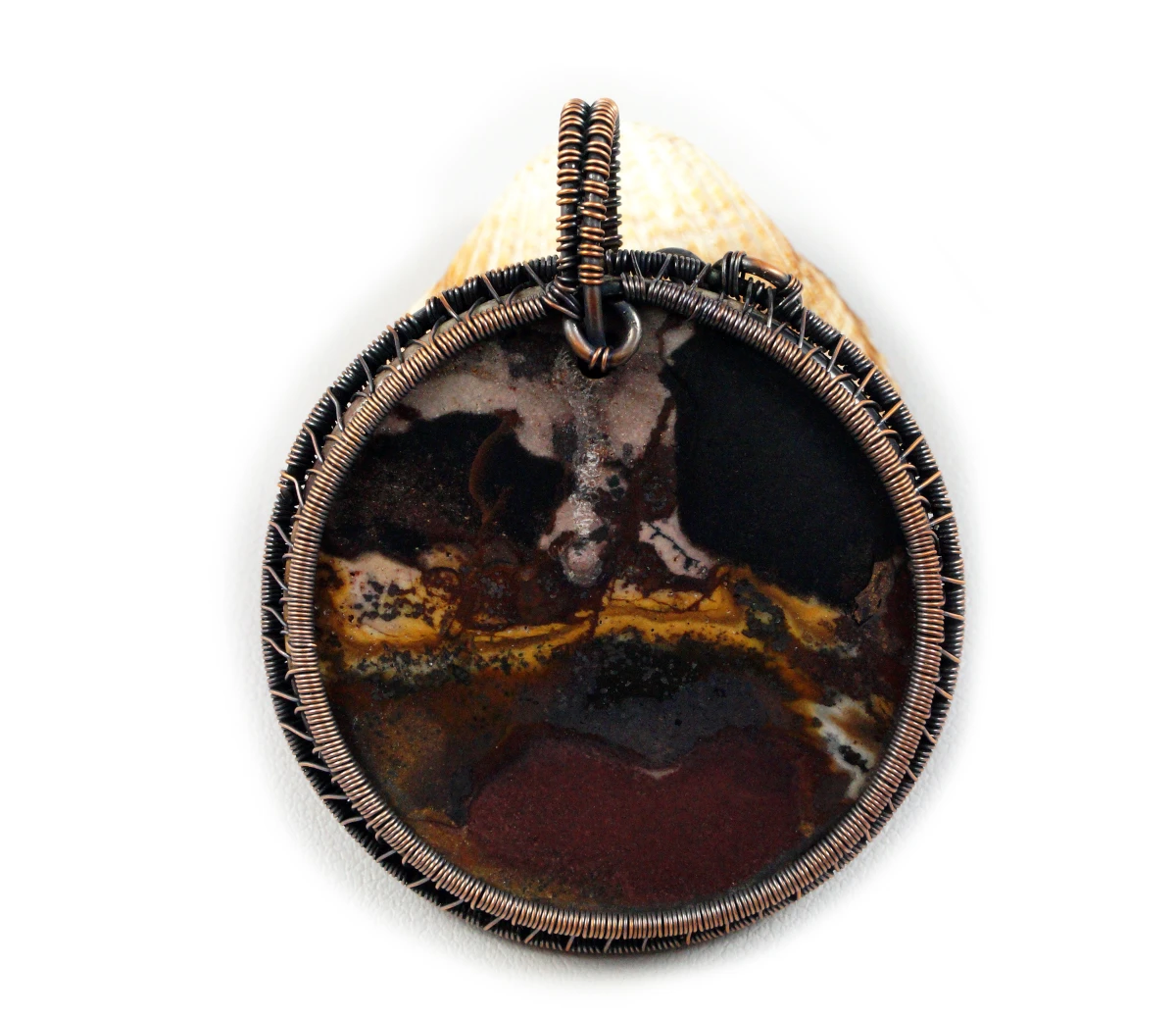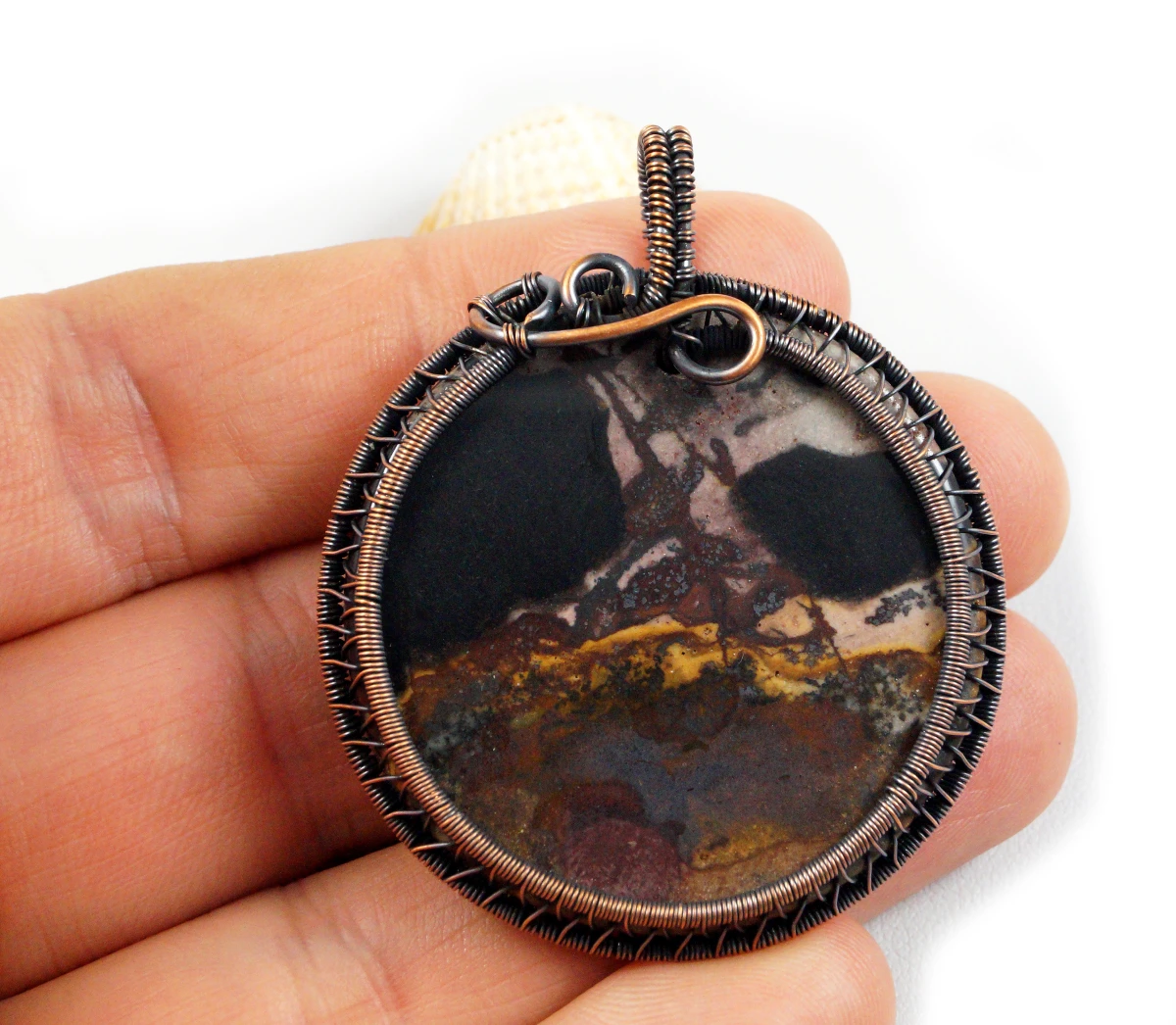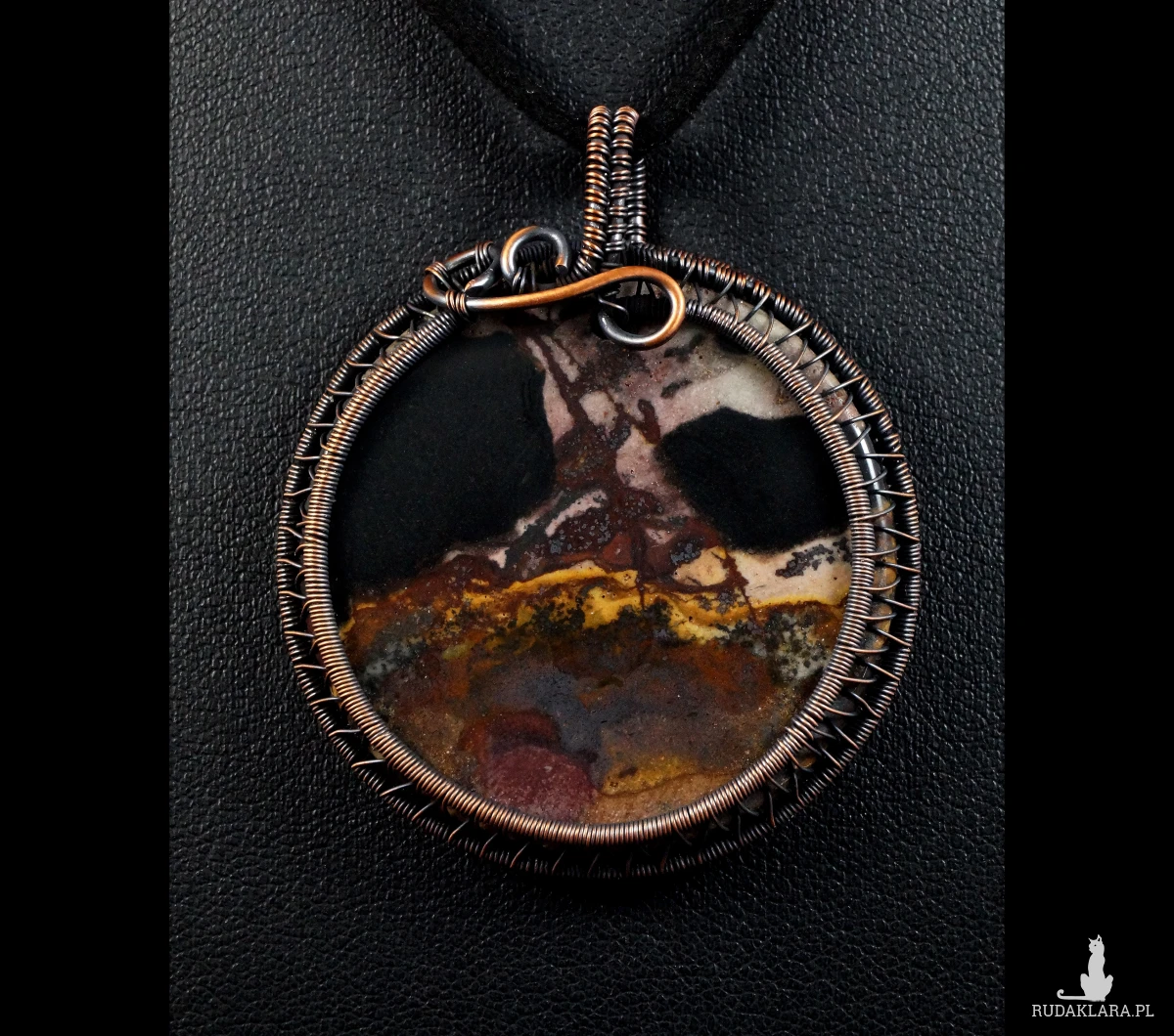 Jaspis krajobrazowy, Miedziany wisior z jaspisem, ręcznie wykonany, prezent dla niej, prezent dla mamy, prezent urodzinowy, biżuteria autorska