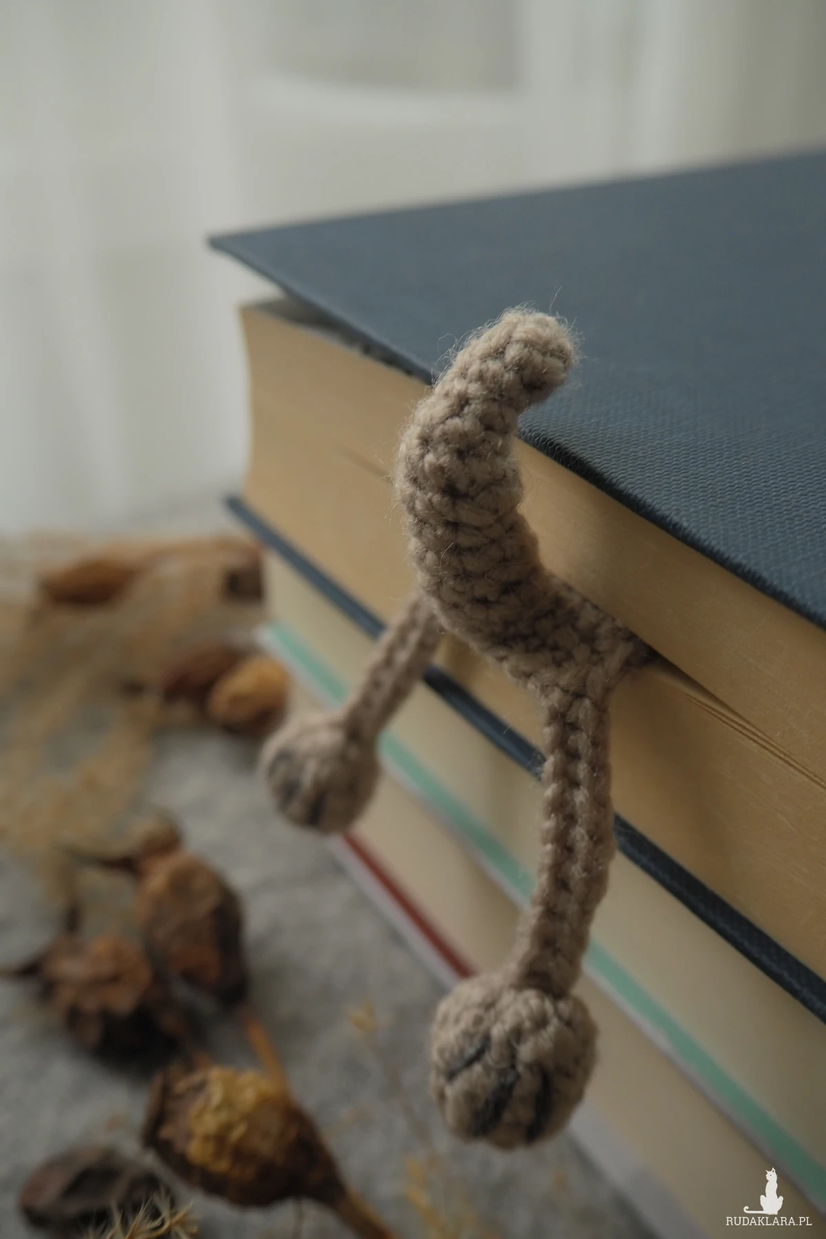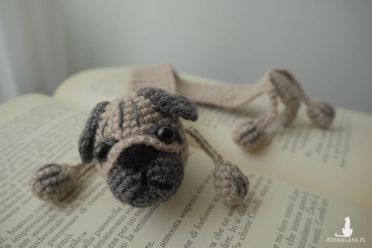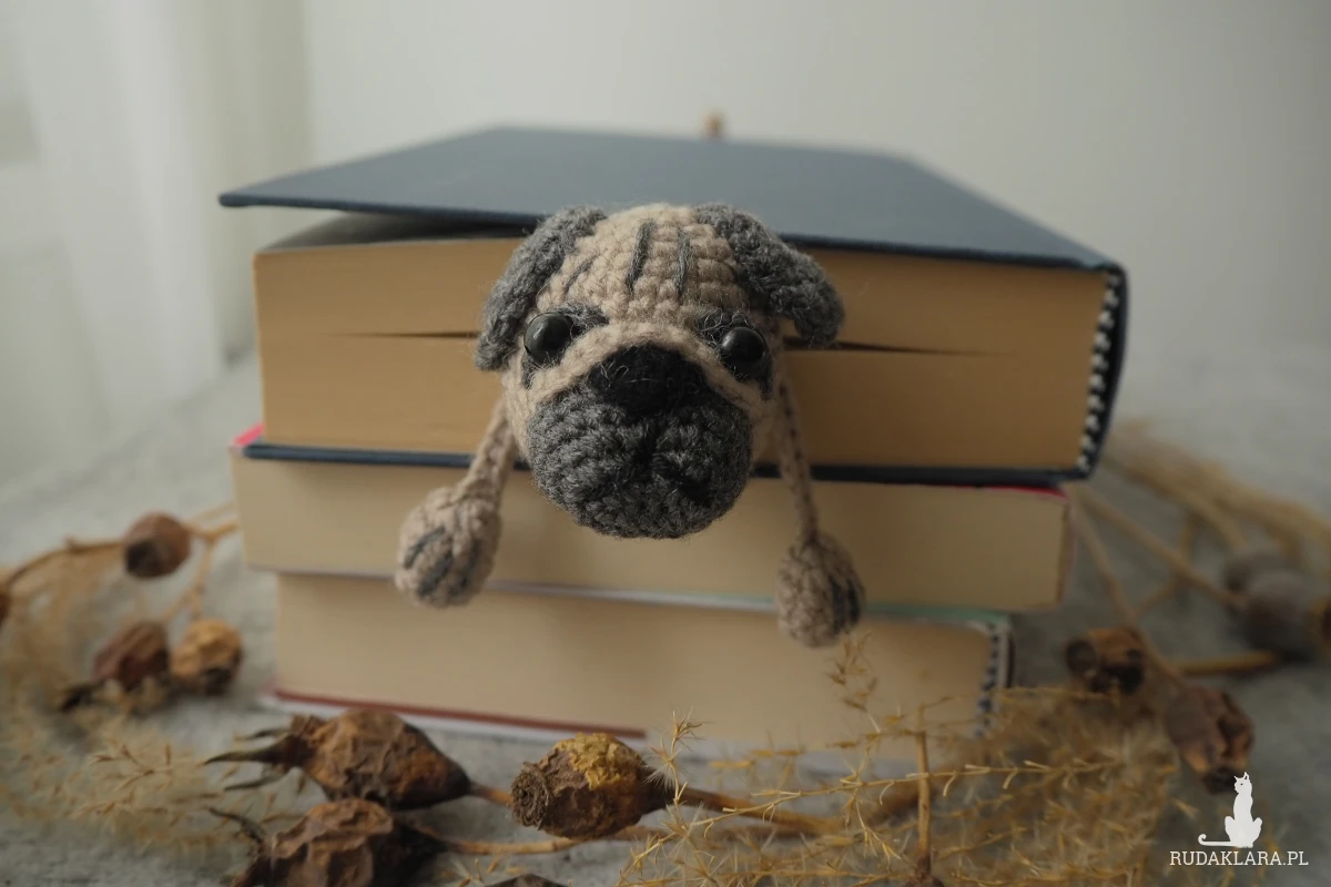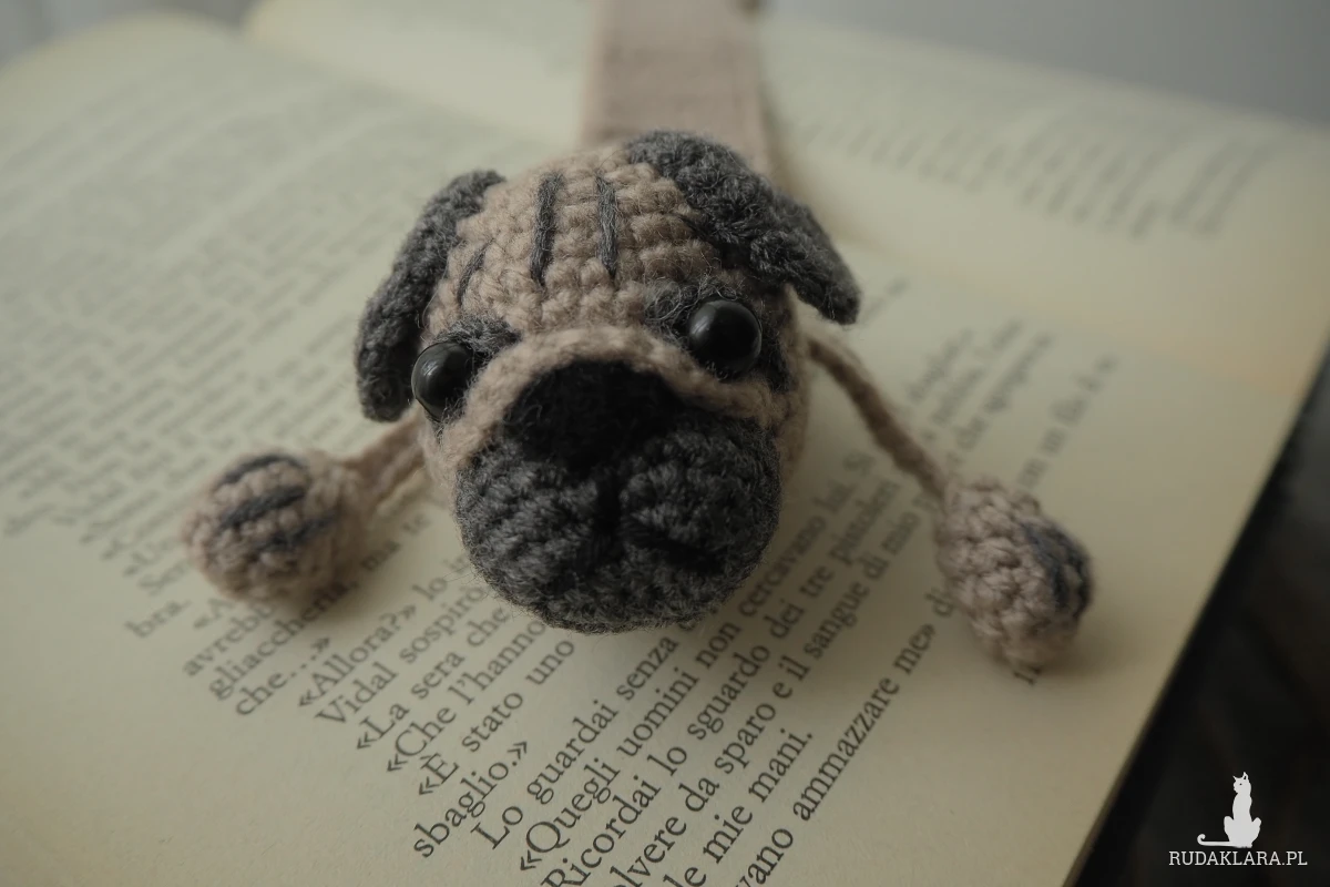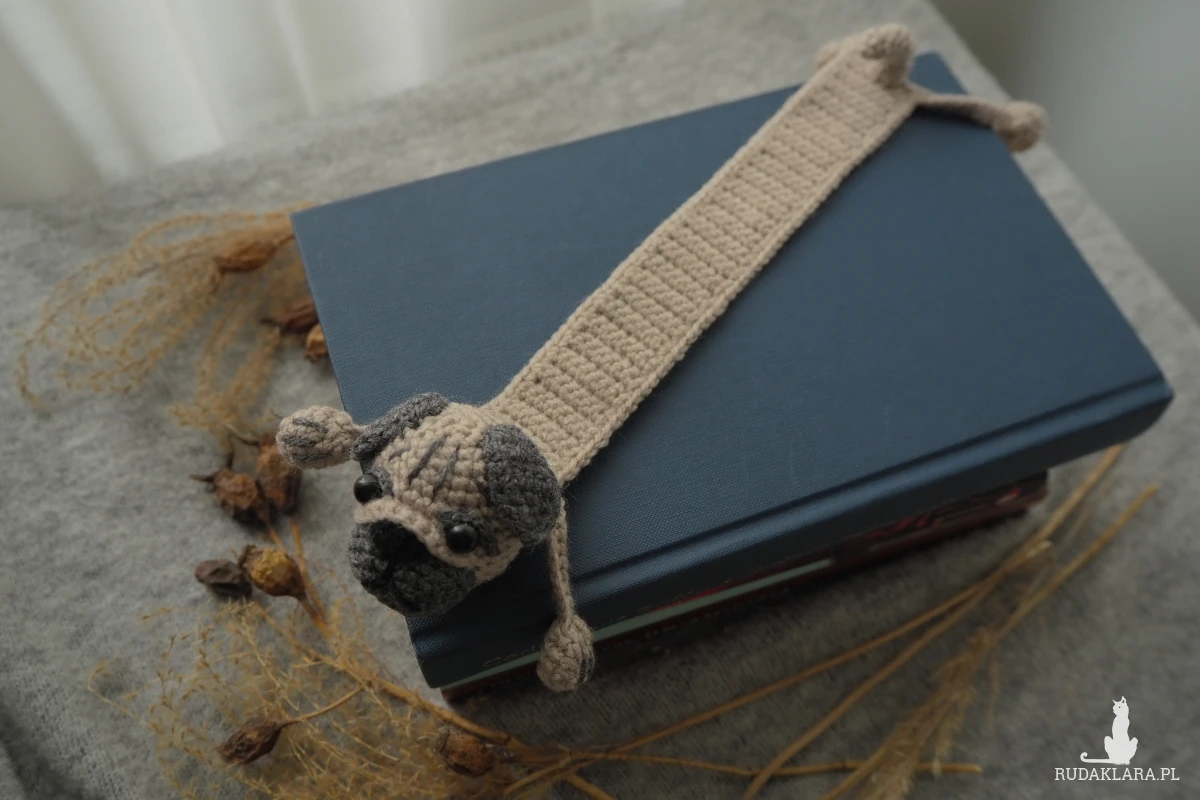 Zakładka do książki z sympatycznym pieskiem wykonana z włóczki na szydełku.