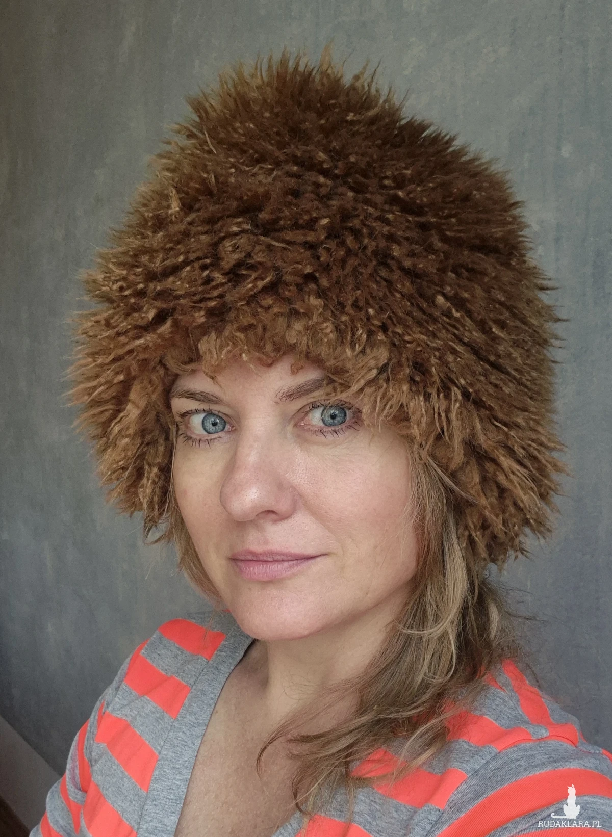 Czapka futrzana sztuczne futro kolor brązowy na podszewce, szyta ręcznie, rękodzieło obwód głowy 55- 56 cm bardzo ciepła na głowę rozmiaru M,polecam box Y1