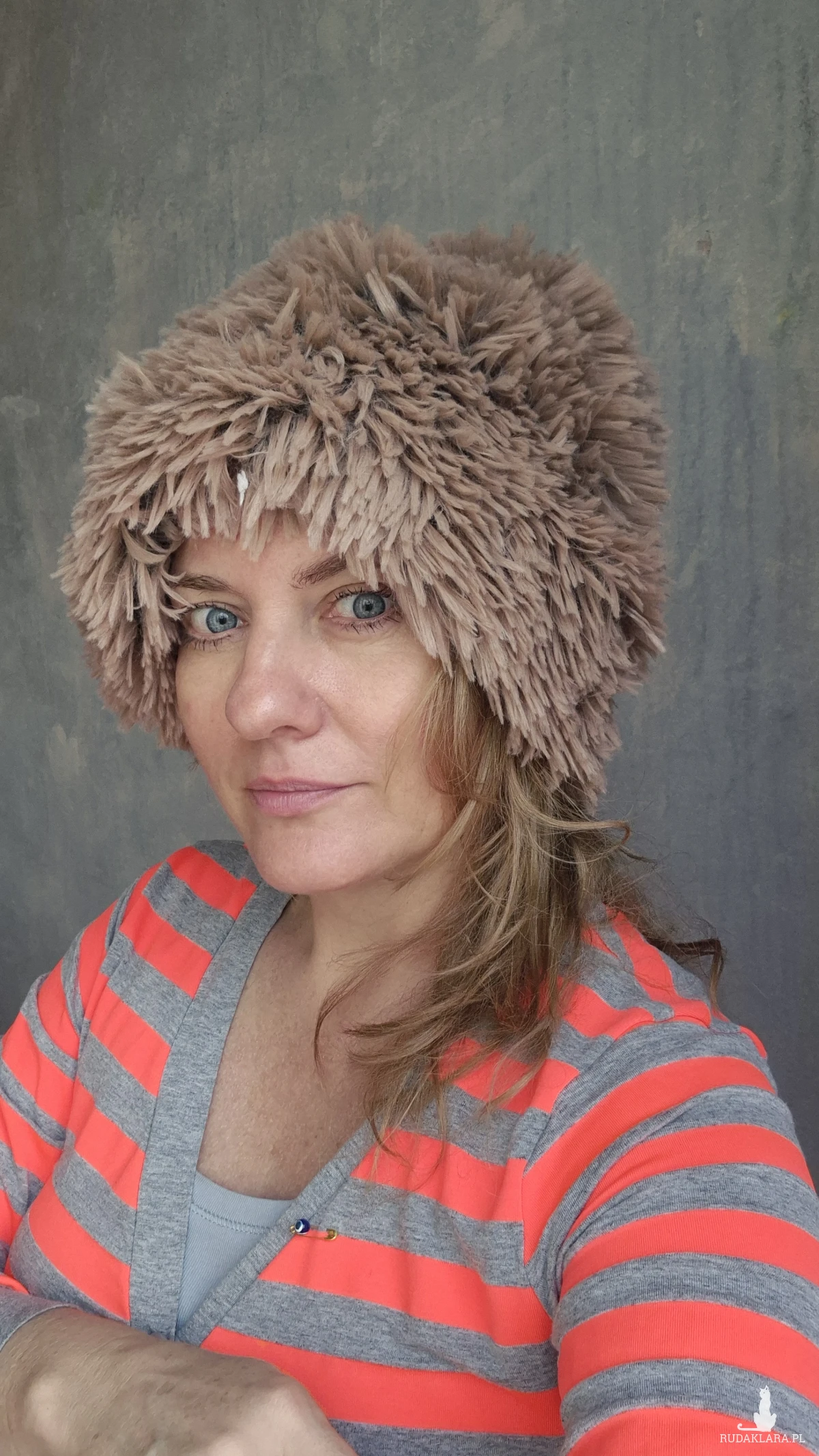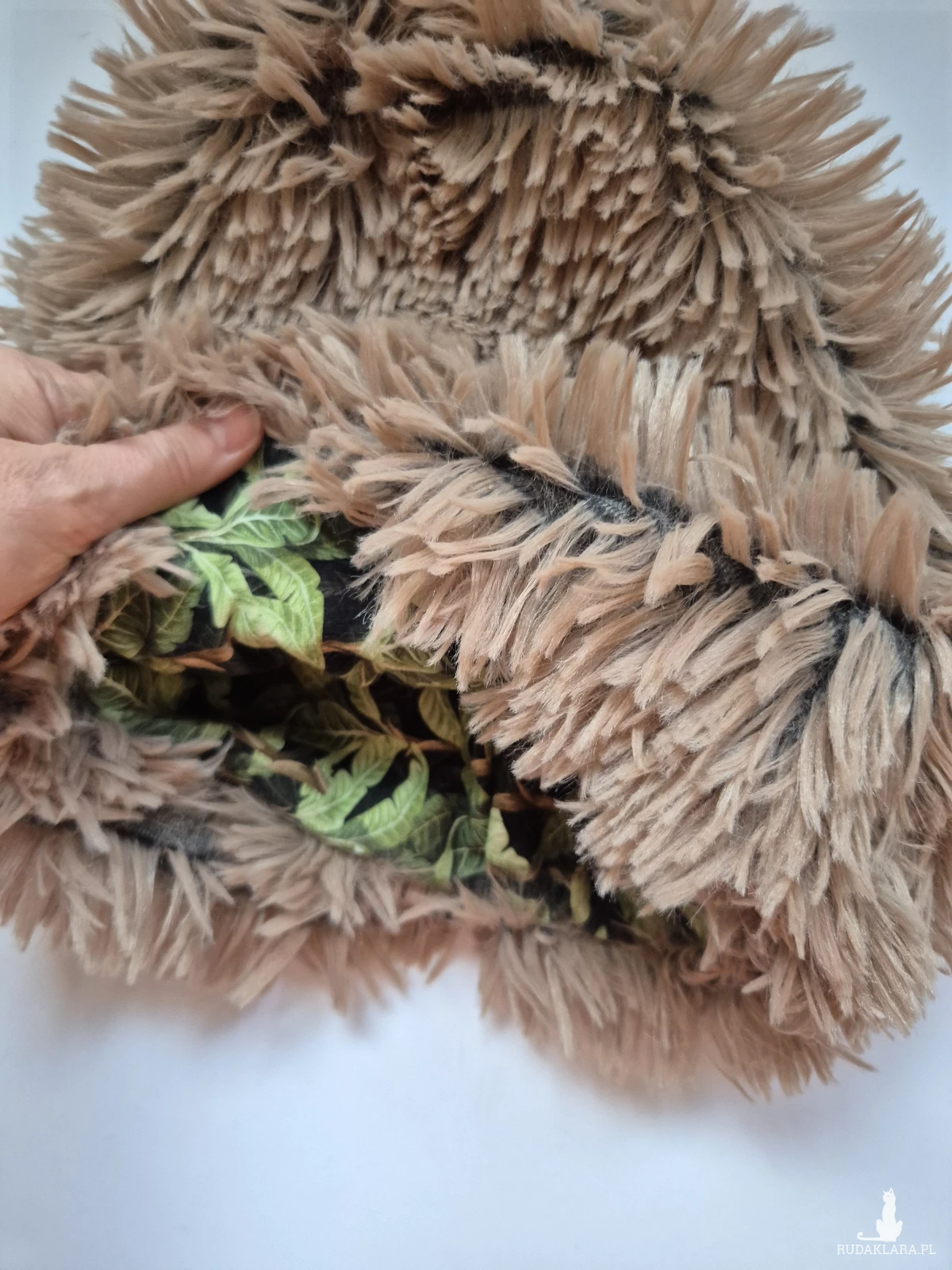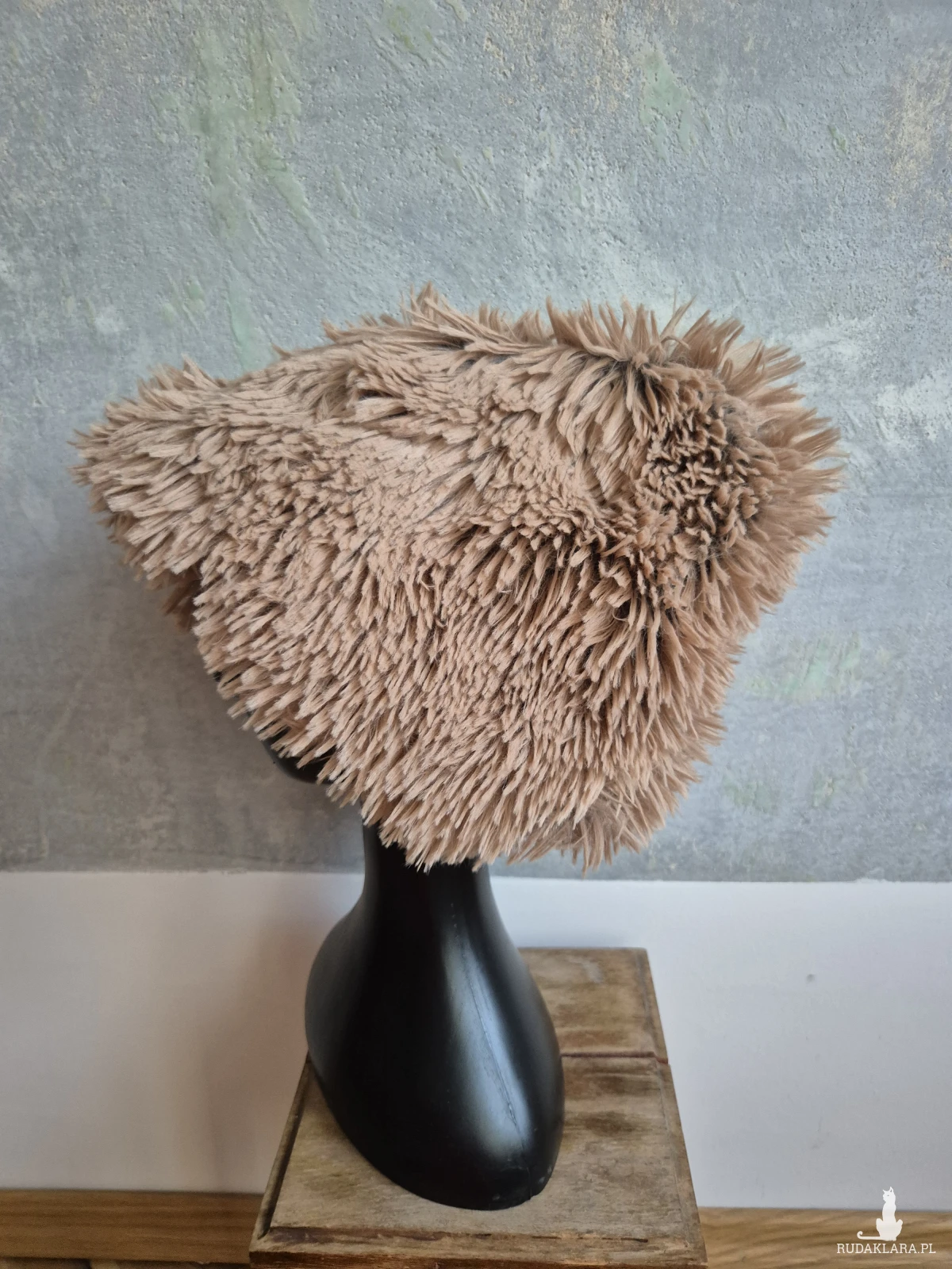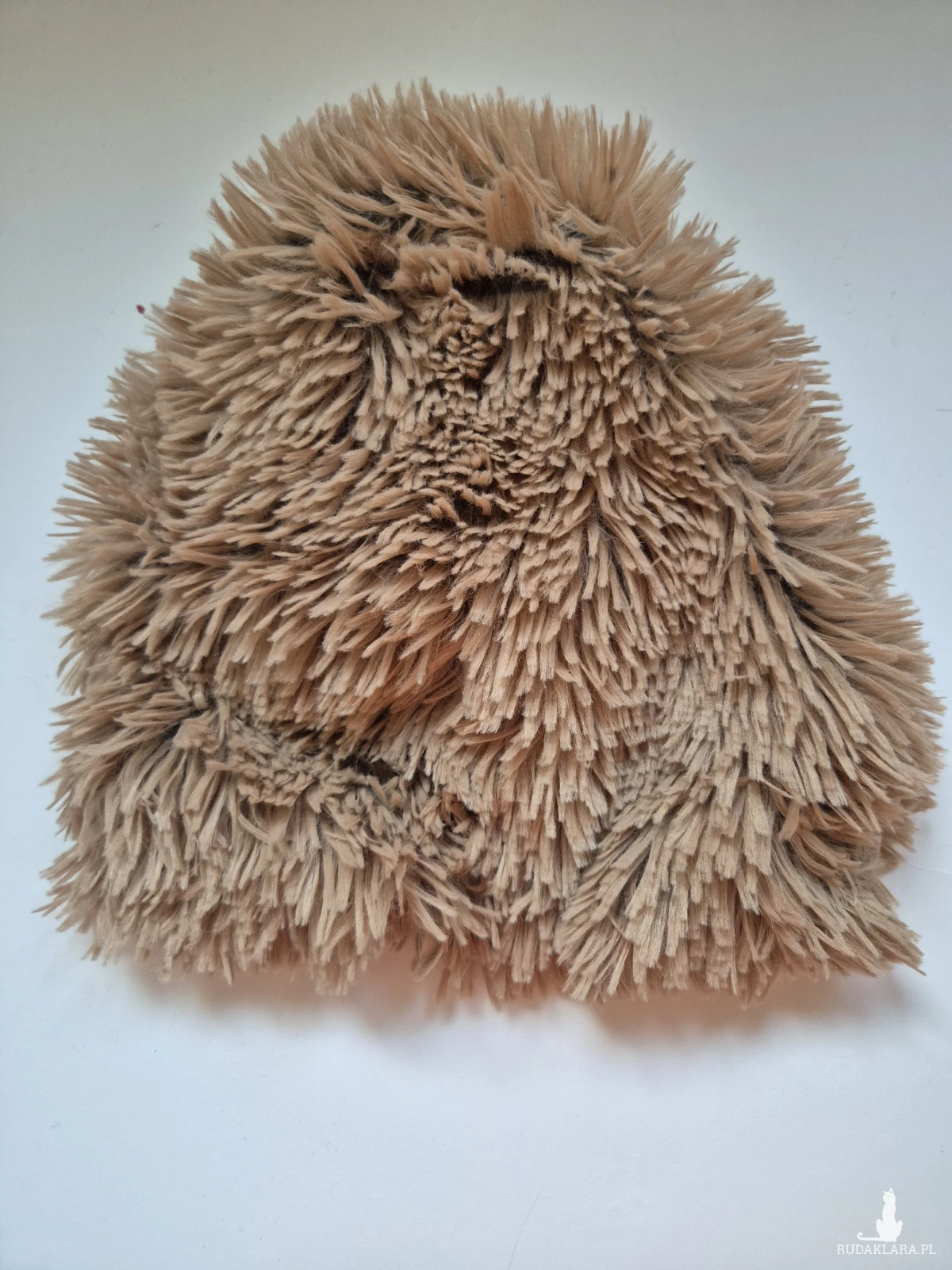 Czapka sztuczne futro kolor jasny brąz rękodzieło na podszewce pojedynczy egzemplarz miękka miła nie jest aż taka bardzo gorąca jest ciepła ale bez przesady można ją nosić późną jesienią polecam box Y1