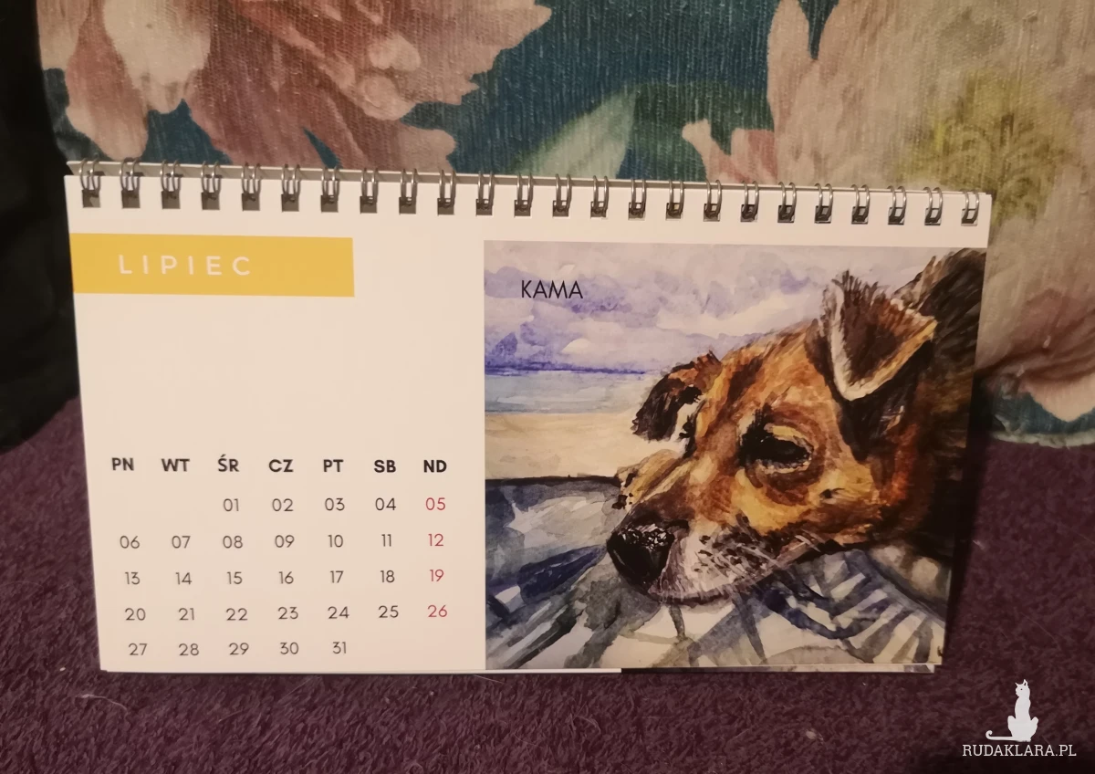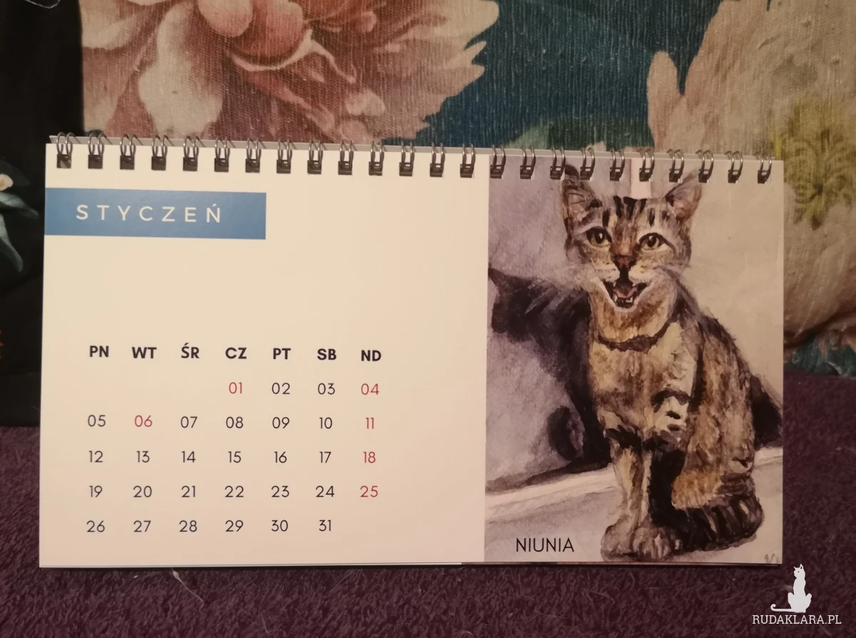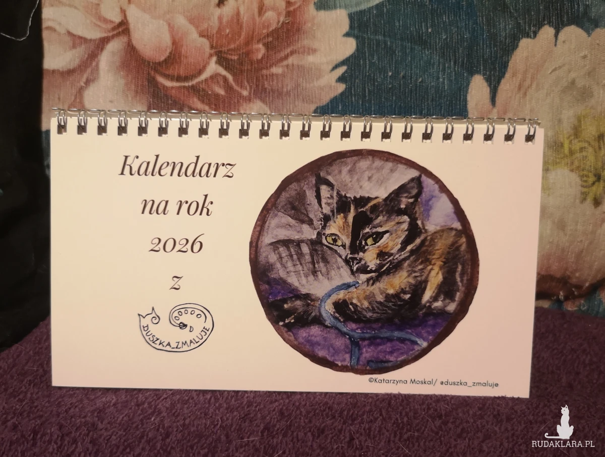 Autorski kalendarz biurkowy z reprodukcjami portretów kotów i psów (moich, moich znajomych oraz z kocich fundacji).