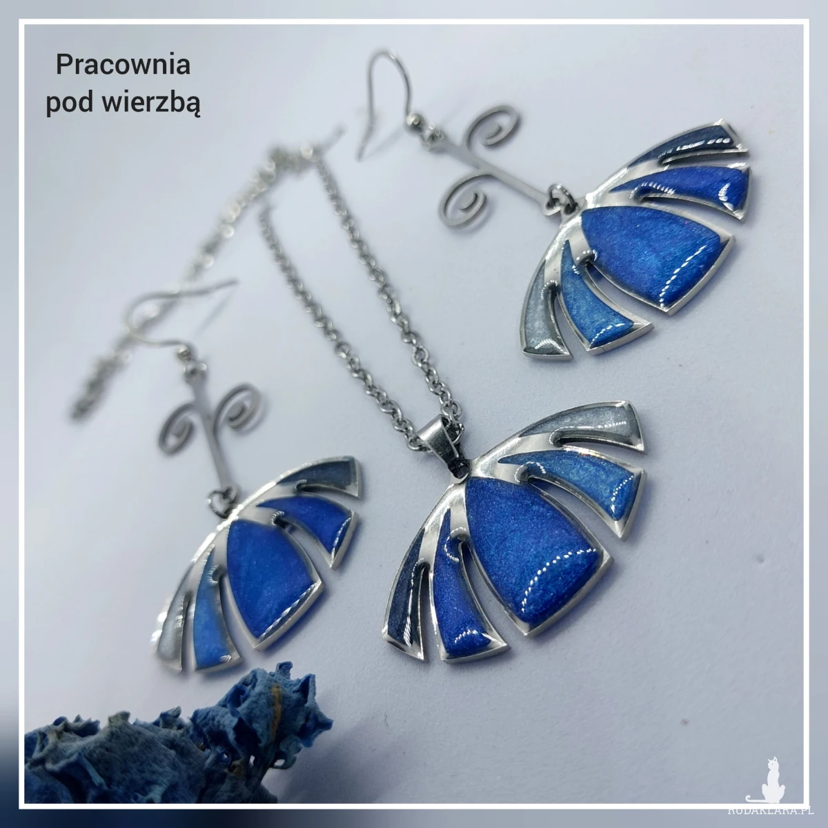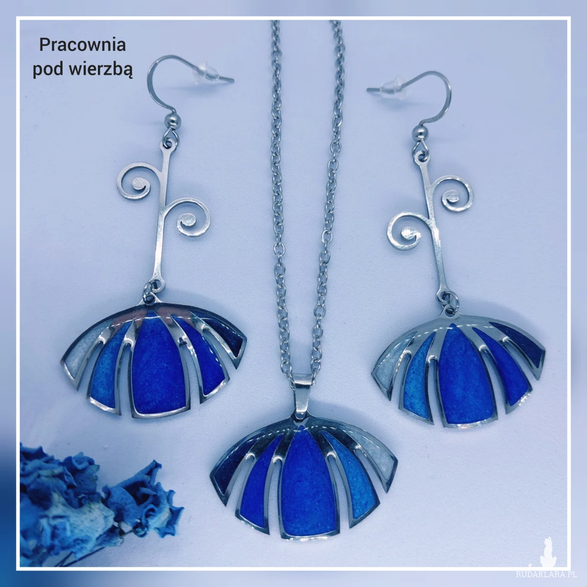 Uroczy zestaw biżuterii ręcznie malowanej żywicą jubilerską. Elementy metalowe to stal szlachetna.