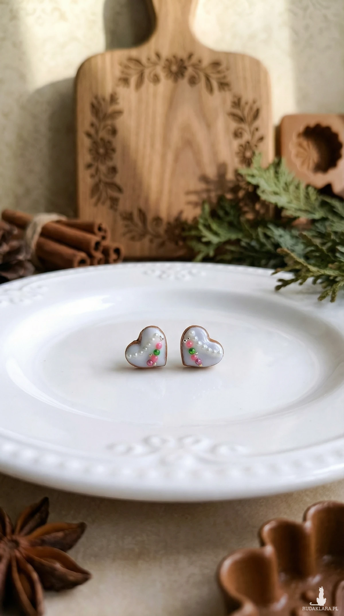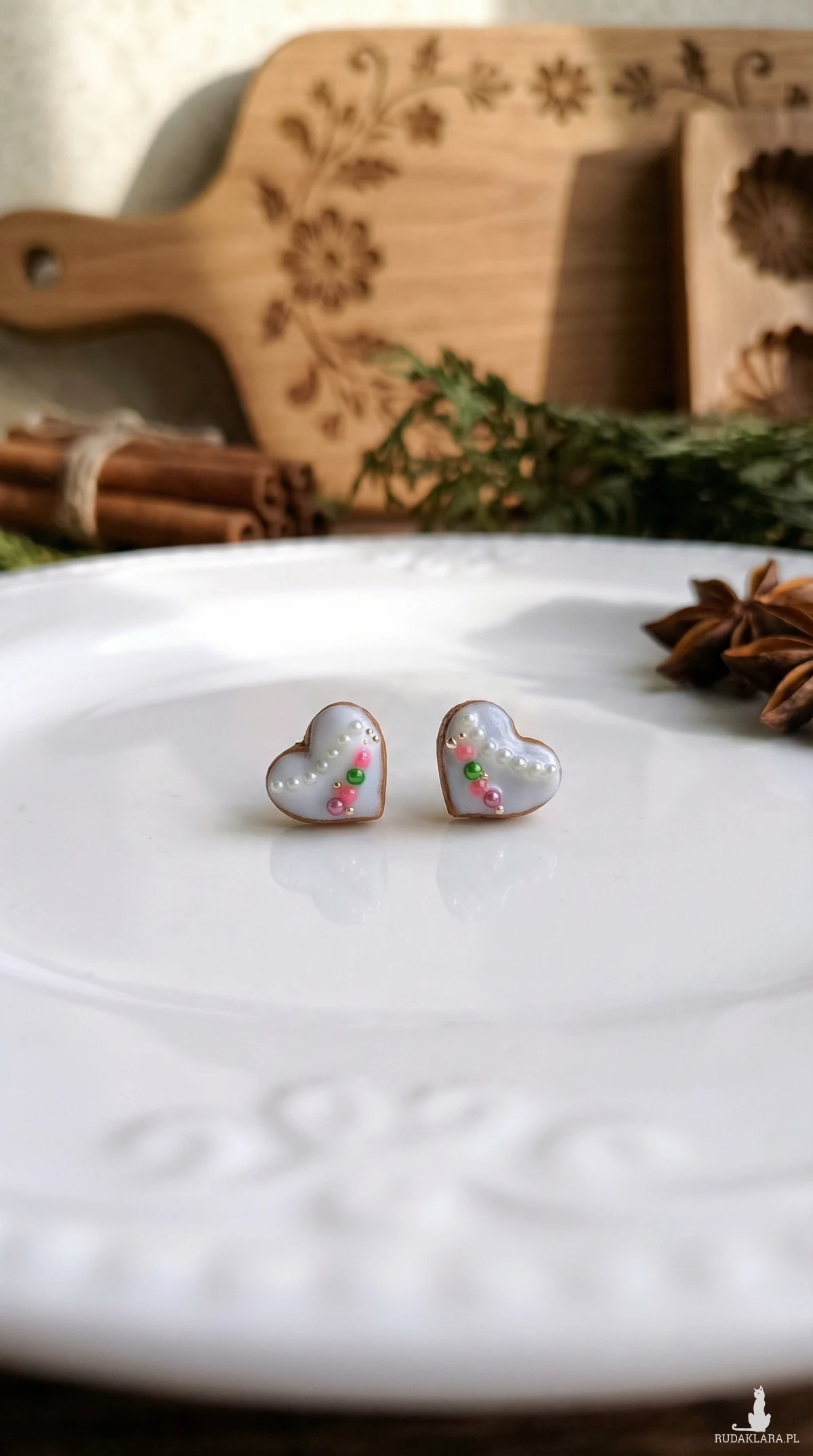 Świąteczne kolczyki serduszka