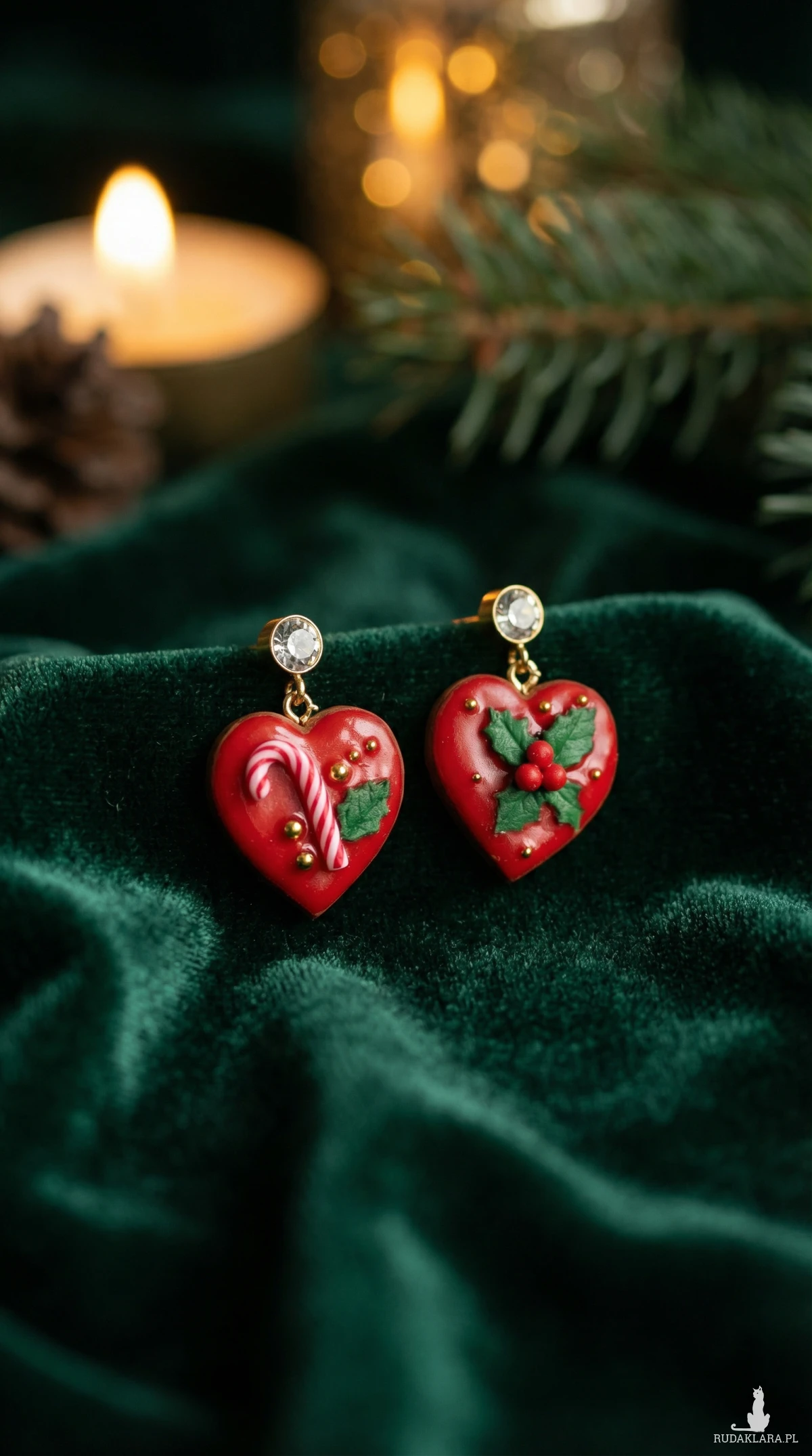 Świąteczne, pierniczkowe kolczyki z serduszkami.