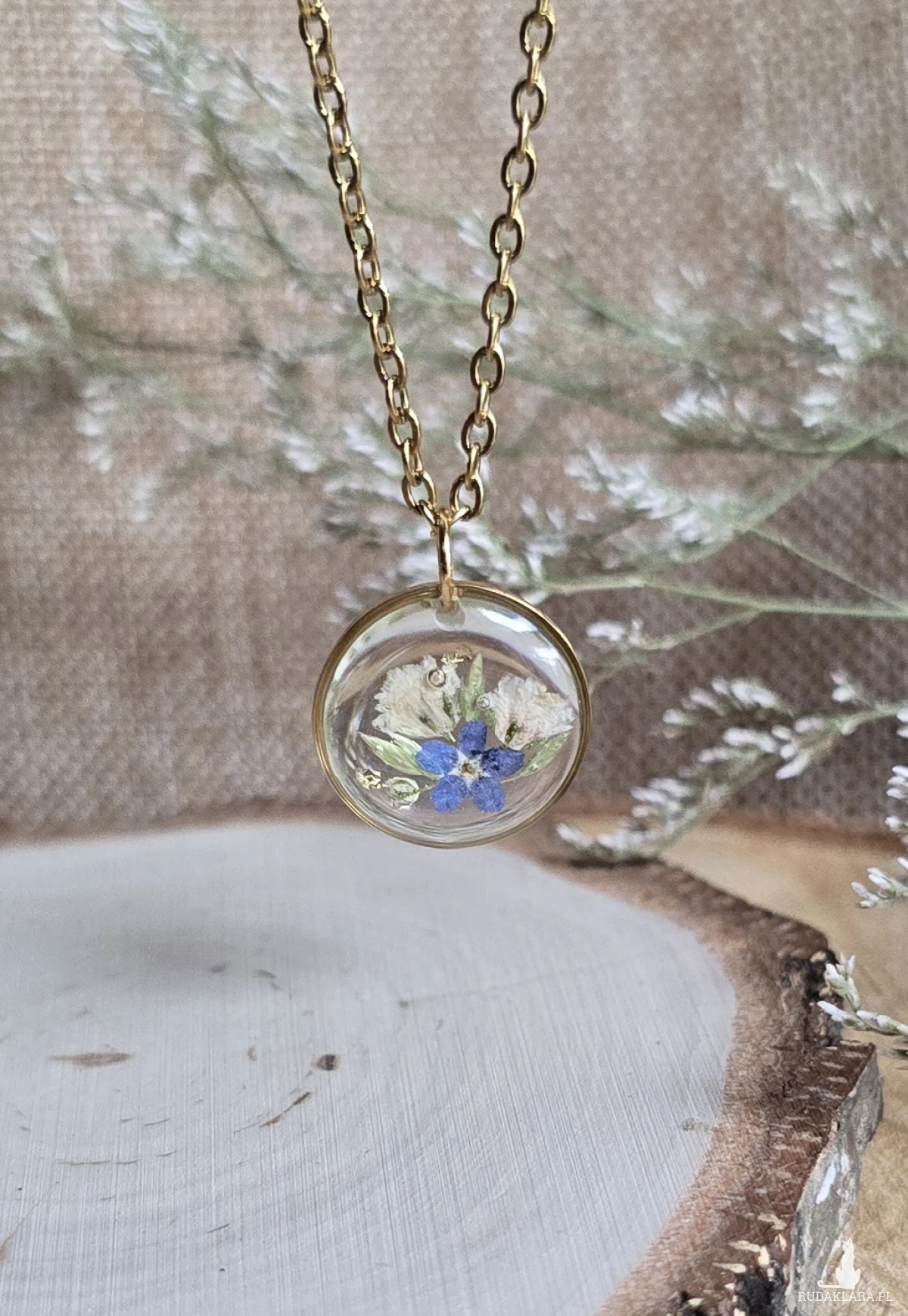 Oferuję Państwu unikalną biżuterię. Zawieszka jest wykonana z suszonych kwiatów i żywicy epoksydowej. Biżuteria jest wspaniałym i oryginalnym prezentem na lata.