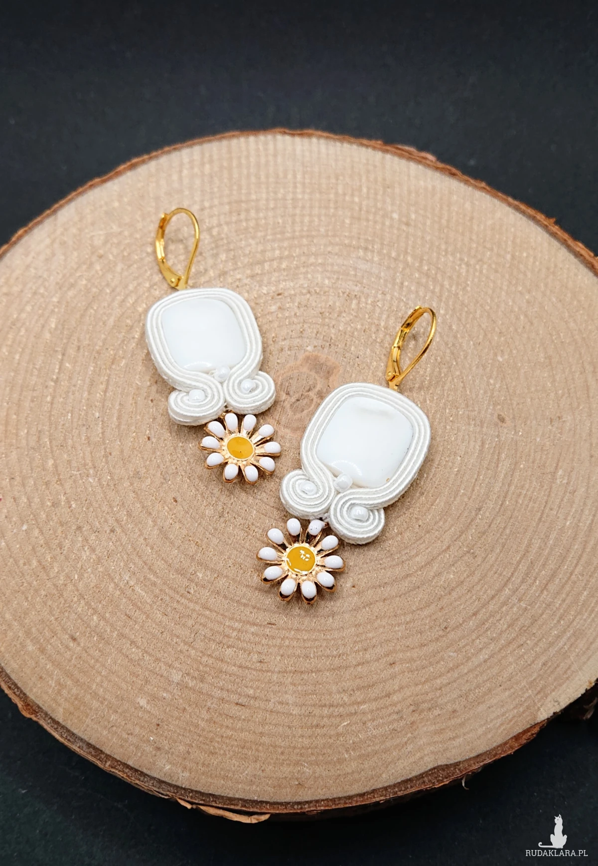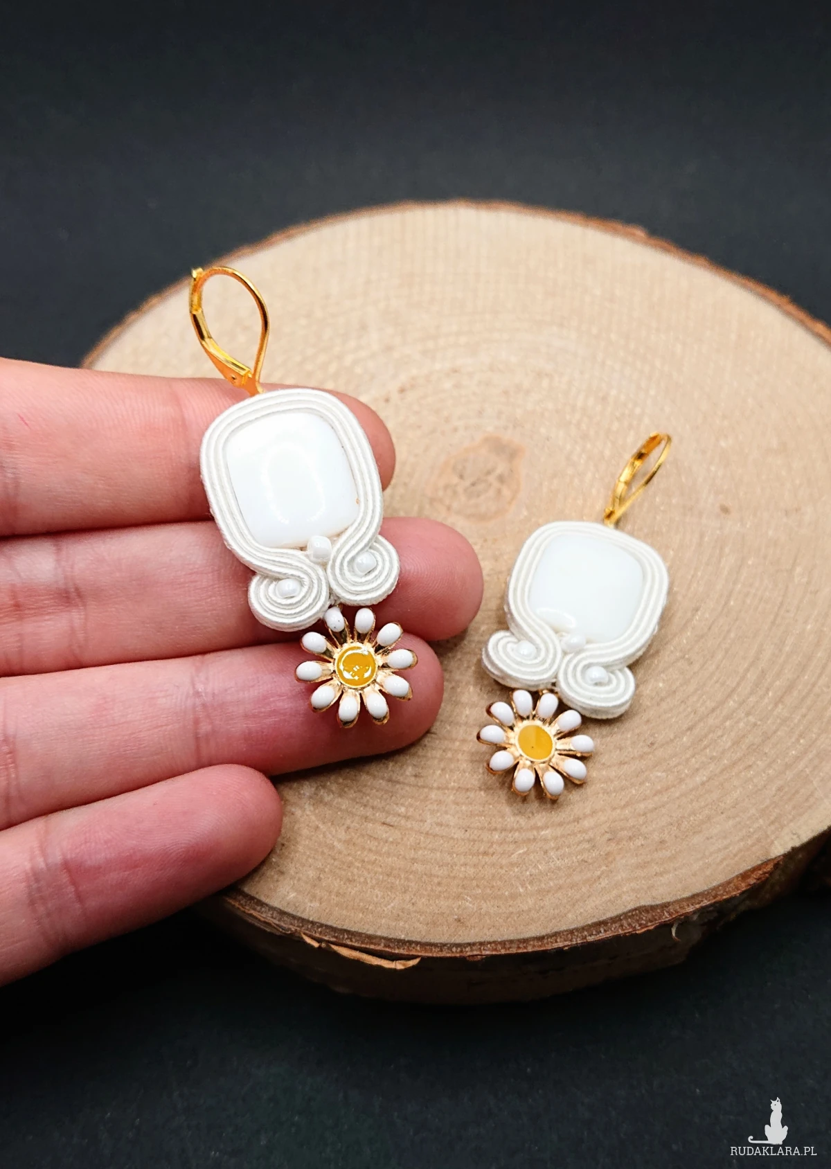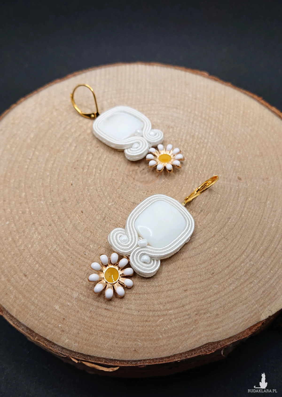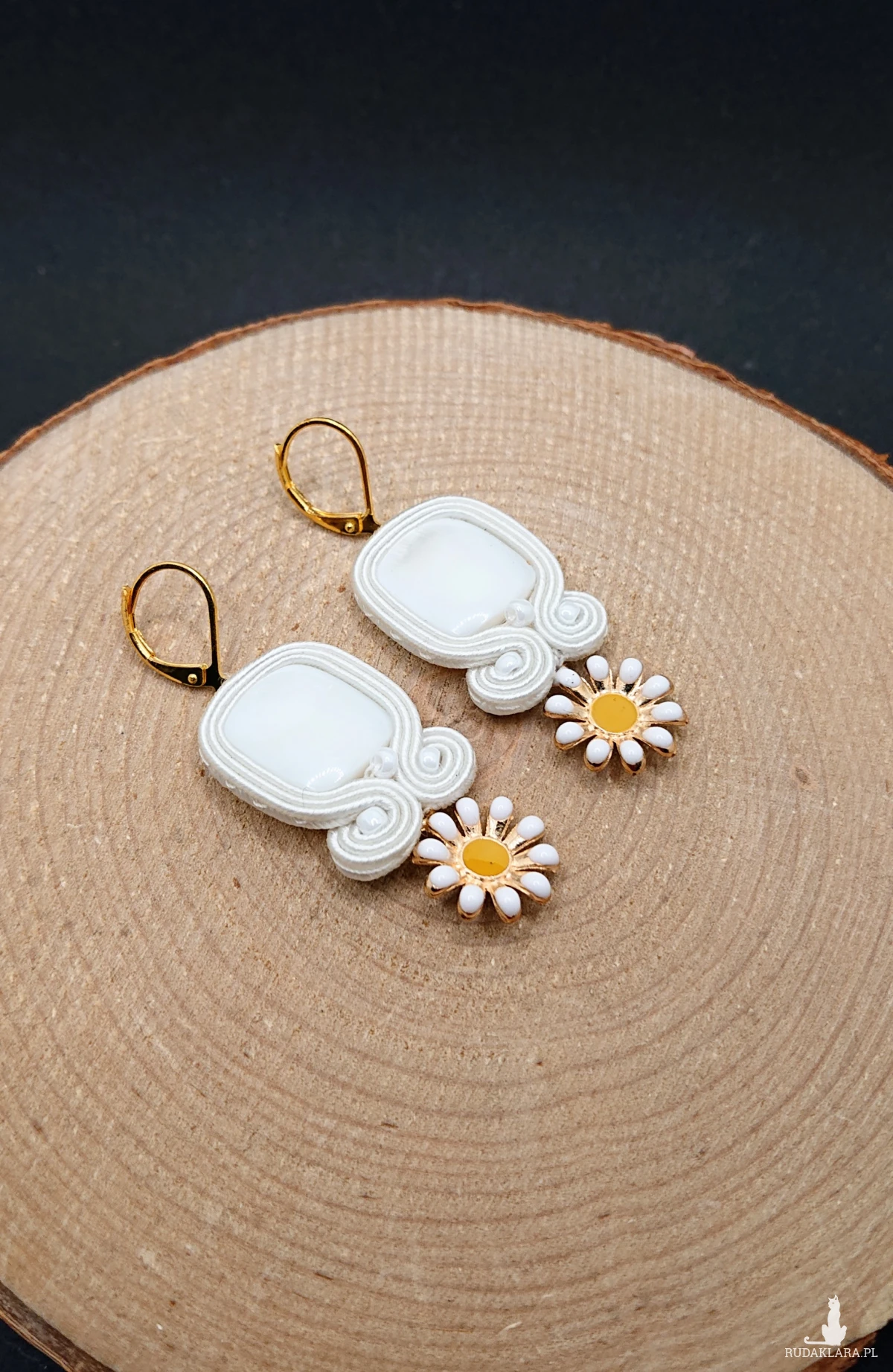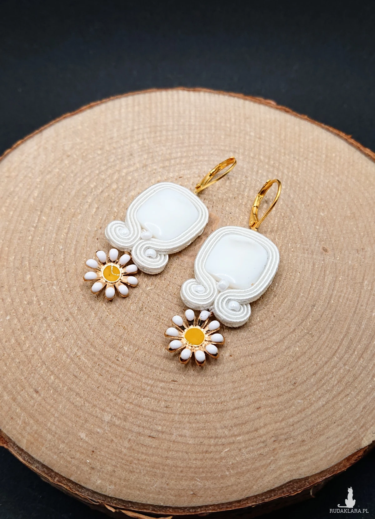 Małe białe kolczyki sutasz ze stokrotkami