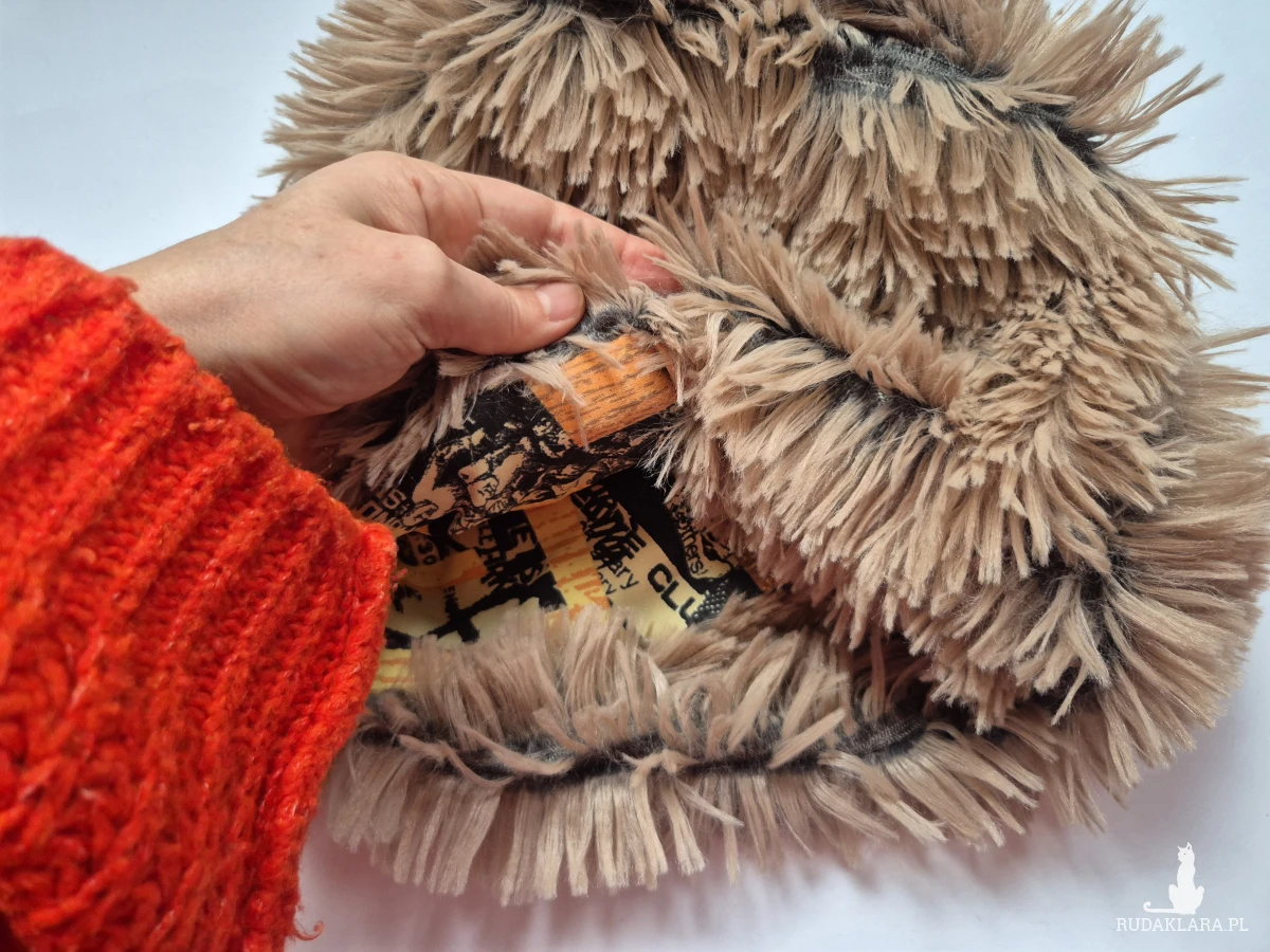 Czapka sztuczne futro kolor jasny brąz rękodzieło na podszewce pojedynczy egzemplarz miękka miła nie jest aż taka bardzo gorąca jest ciepła ale bez przesady można ją nosić późną jesienią polecam box a1