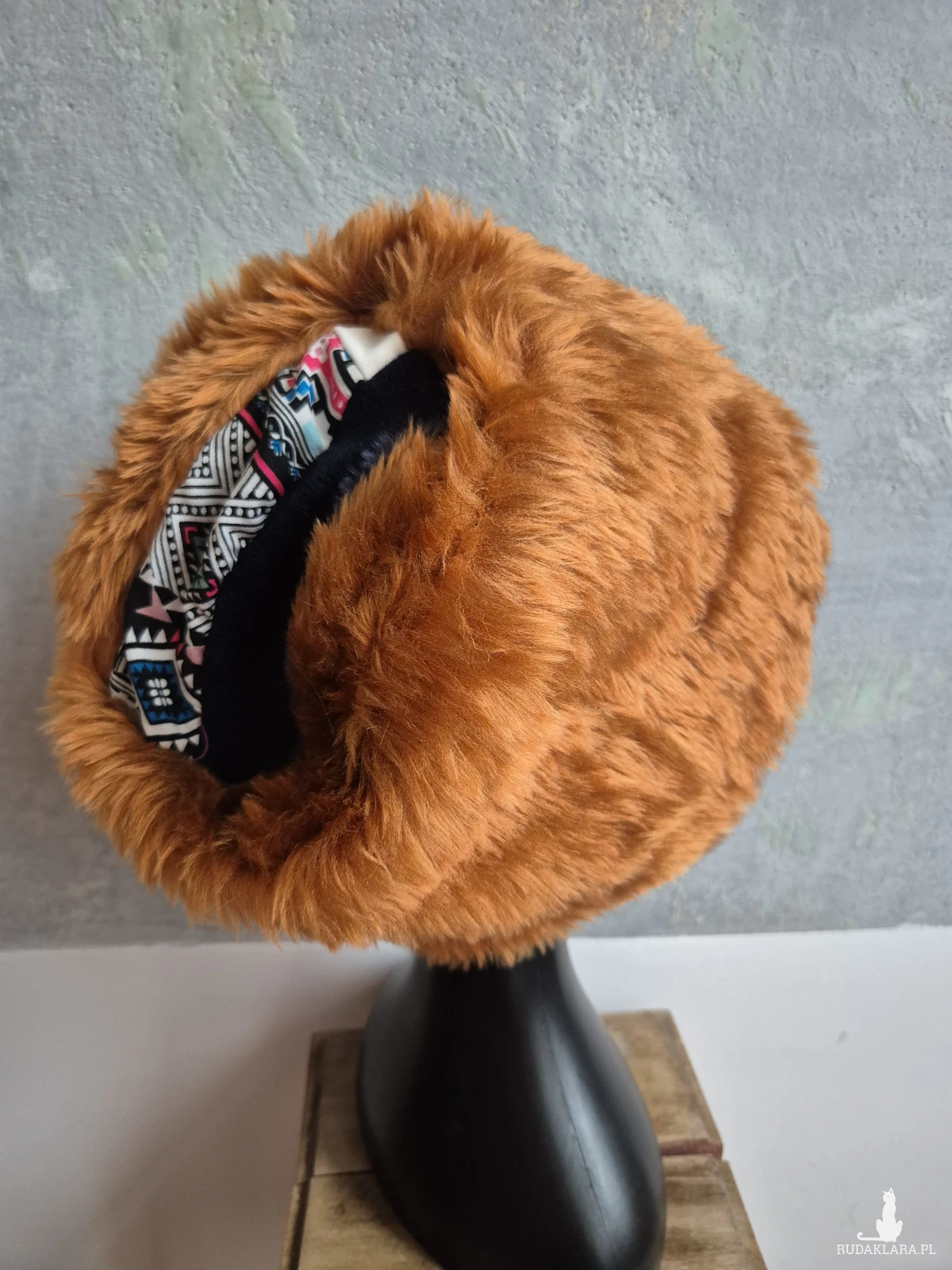 Futrzana czapka ruda   gora folkowa na podszewce rozmiar uniwersalny Box a1
