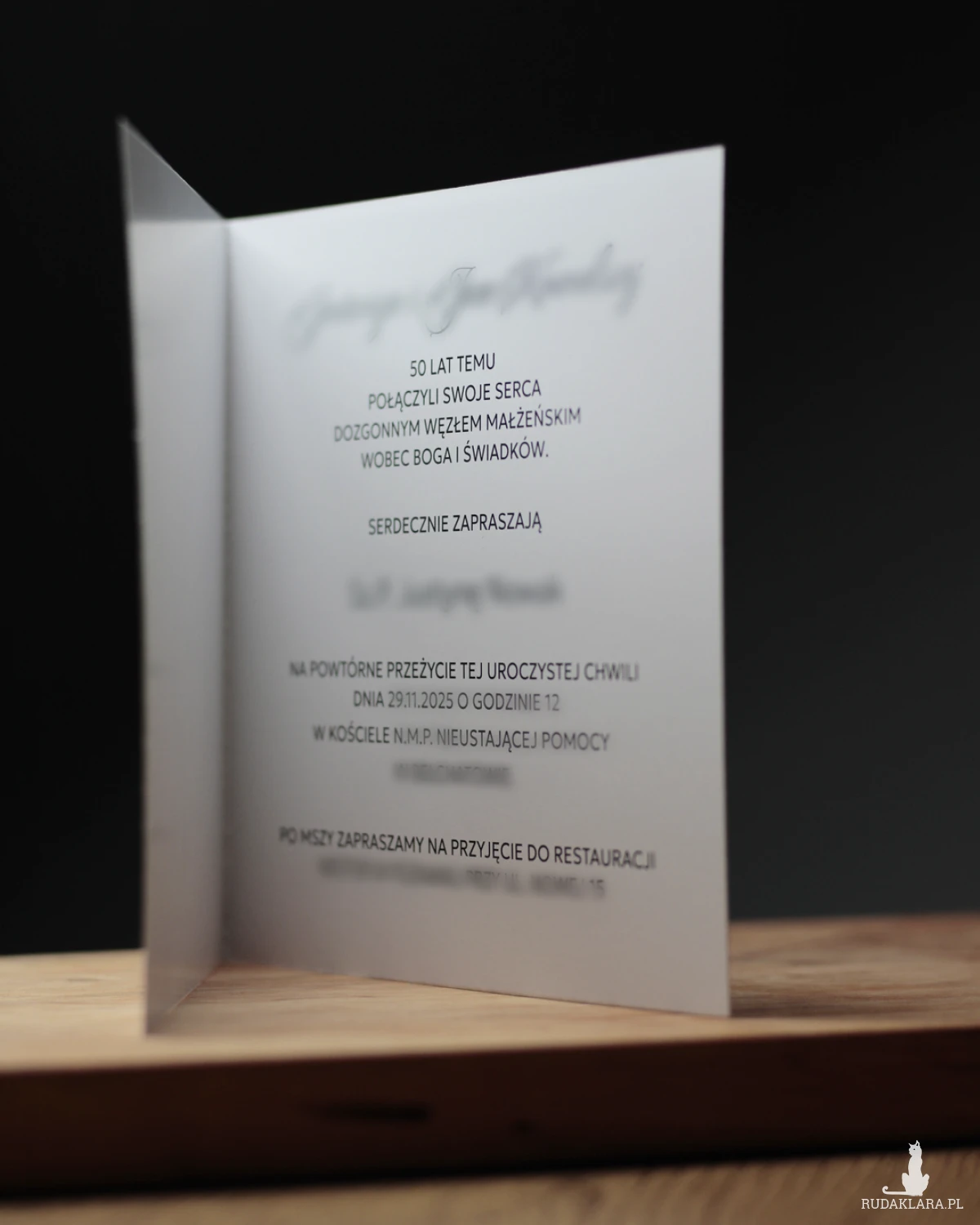 Nazwiska zostaną umieszczone w zaproszeniu w takiej formie w jakiej zostaną przesłane. Jeśli mają być w formie odmienionej, powinny być przesłane w takiej formie.