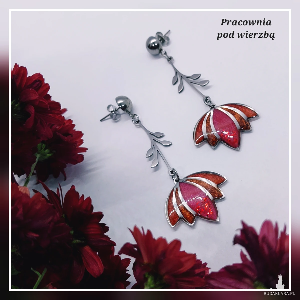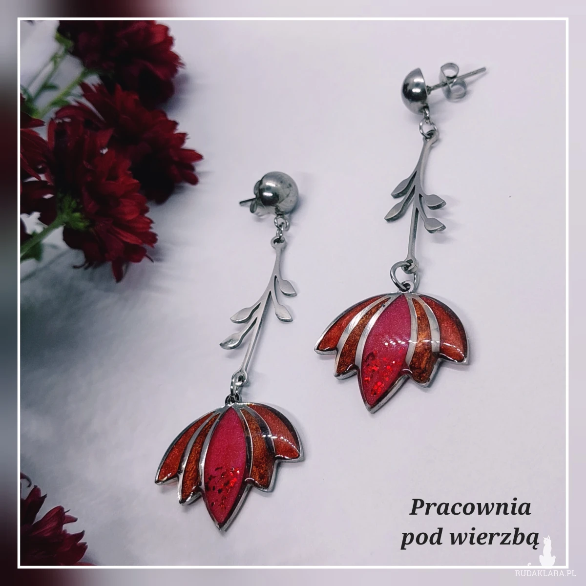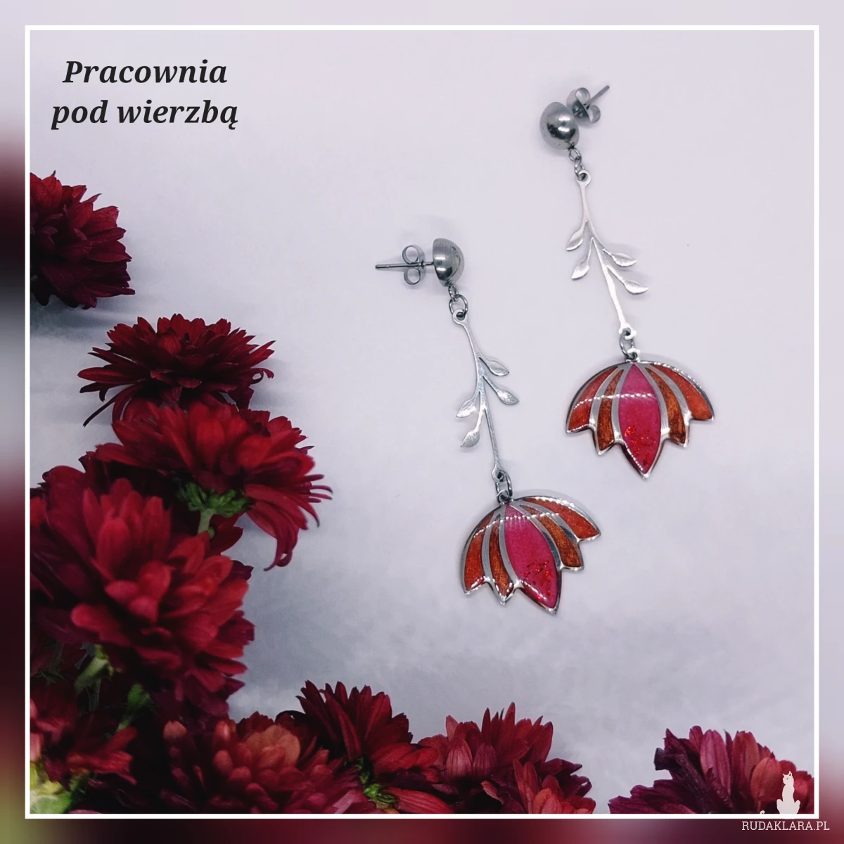 Długie kolczyki wiszące stal ręcznie malowane kwiaty kwiat lotosu