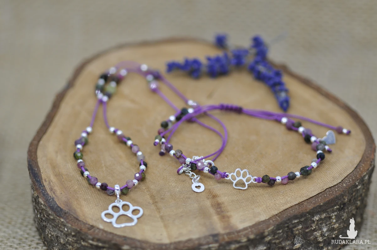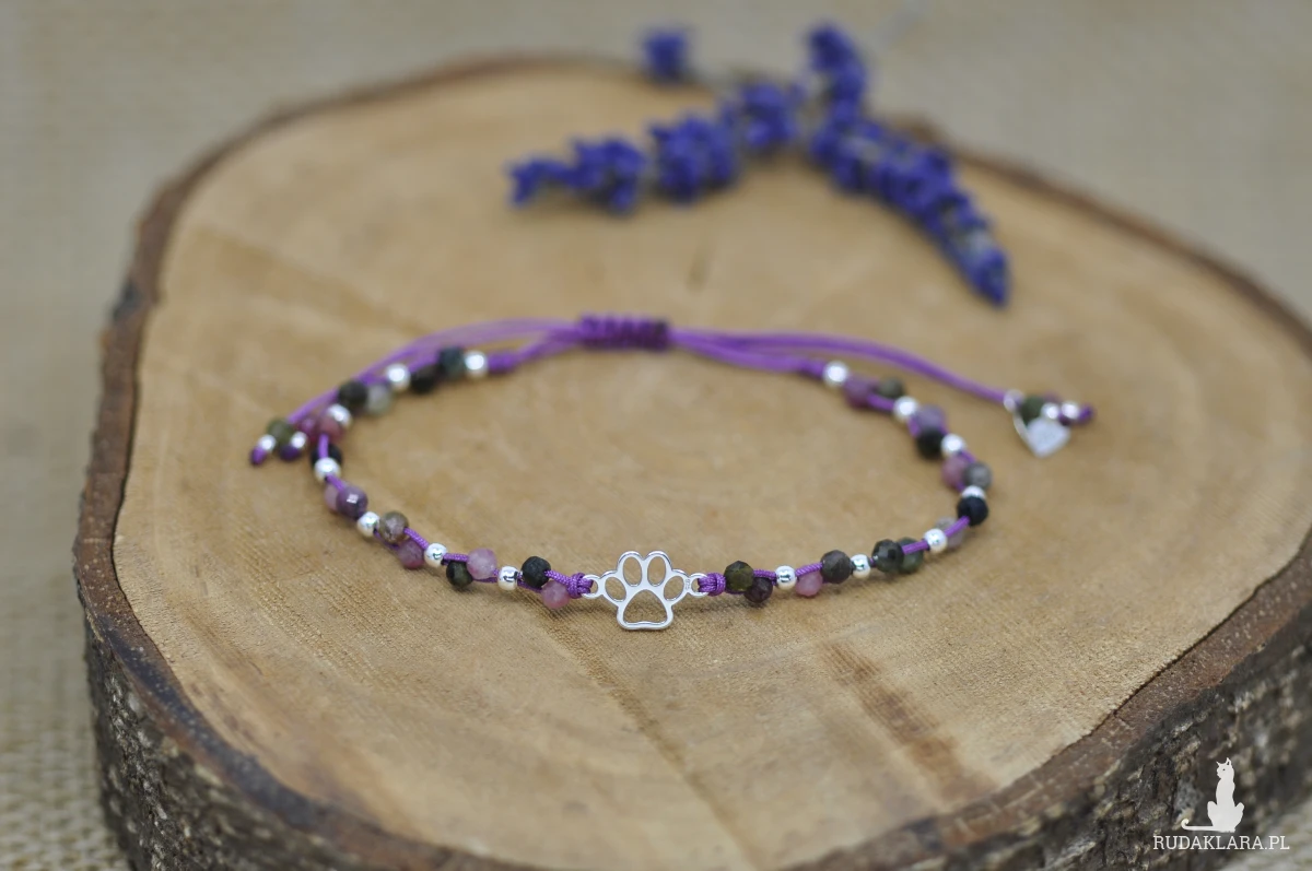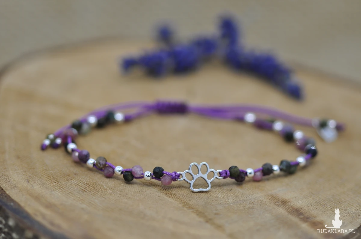 Łapa / Łapka psia / kocia - bransoletka, srebro 925, turmalin