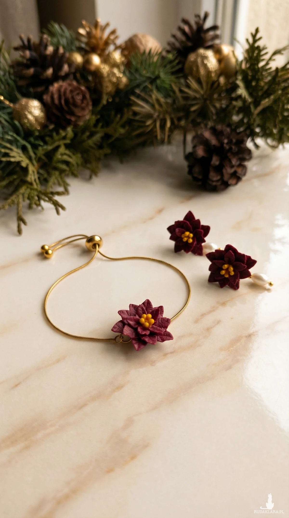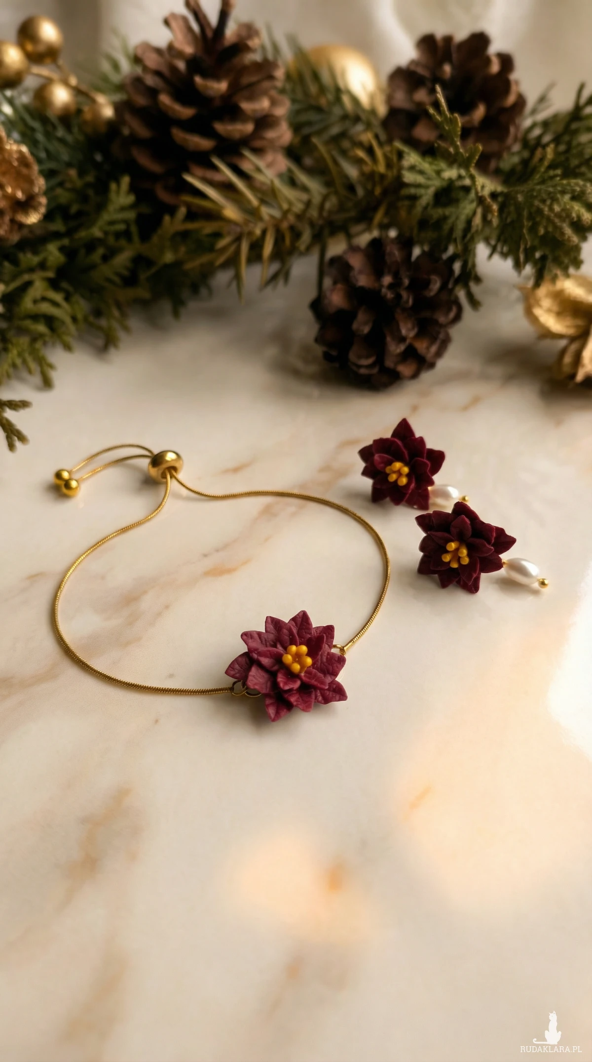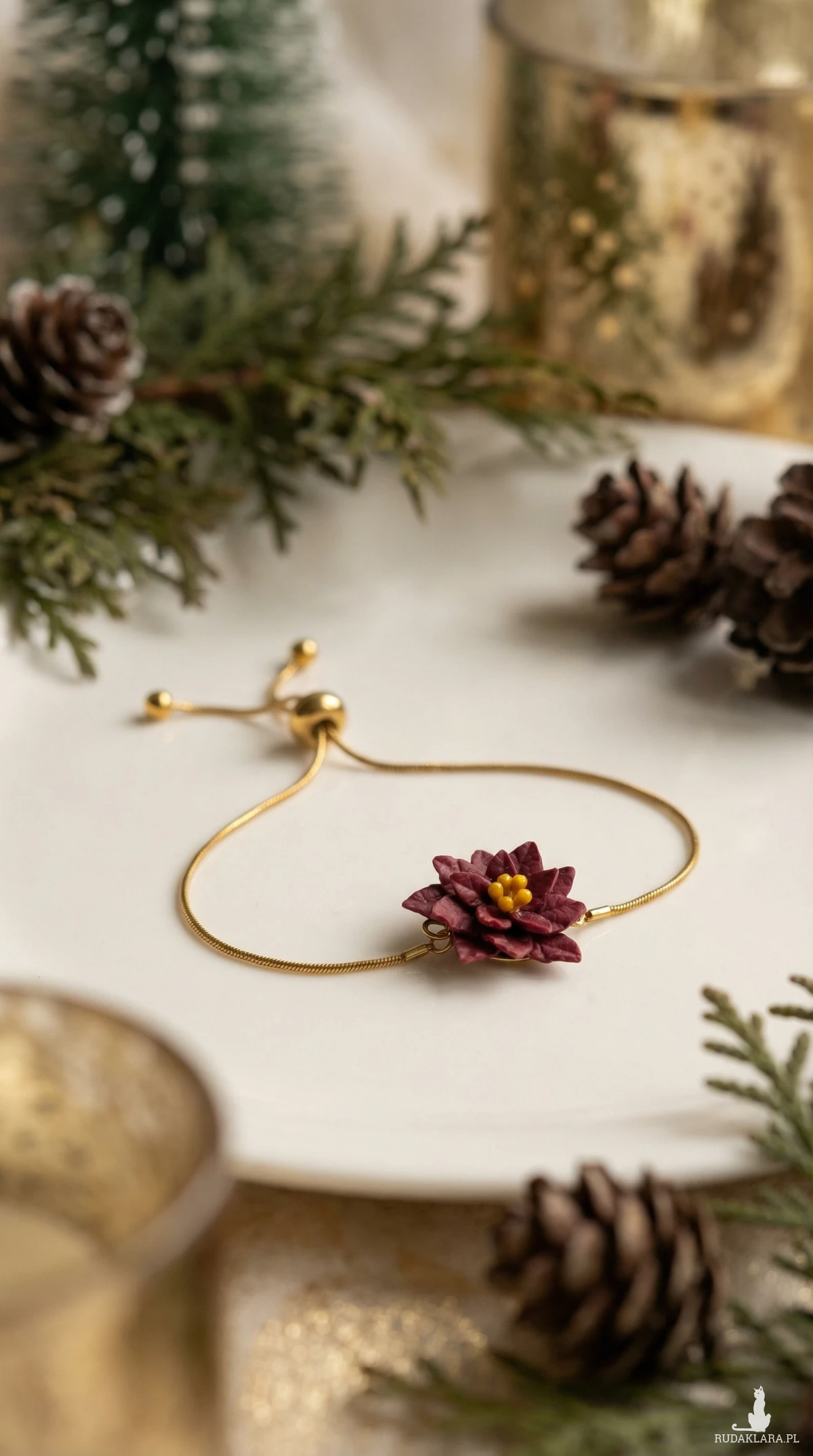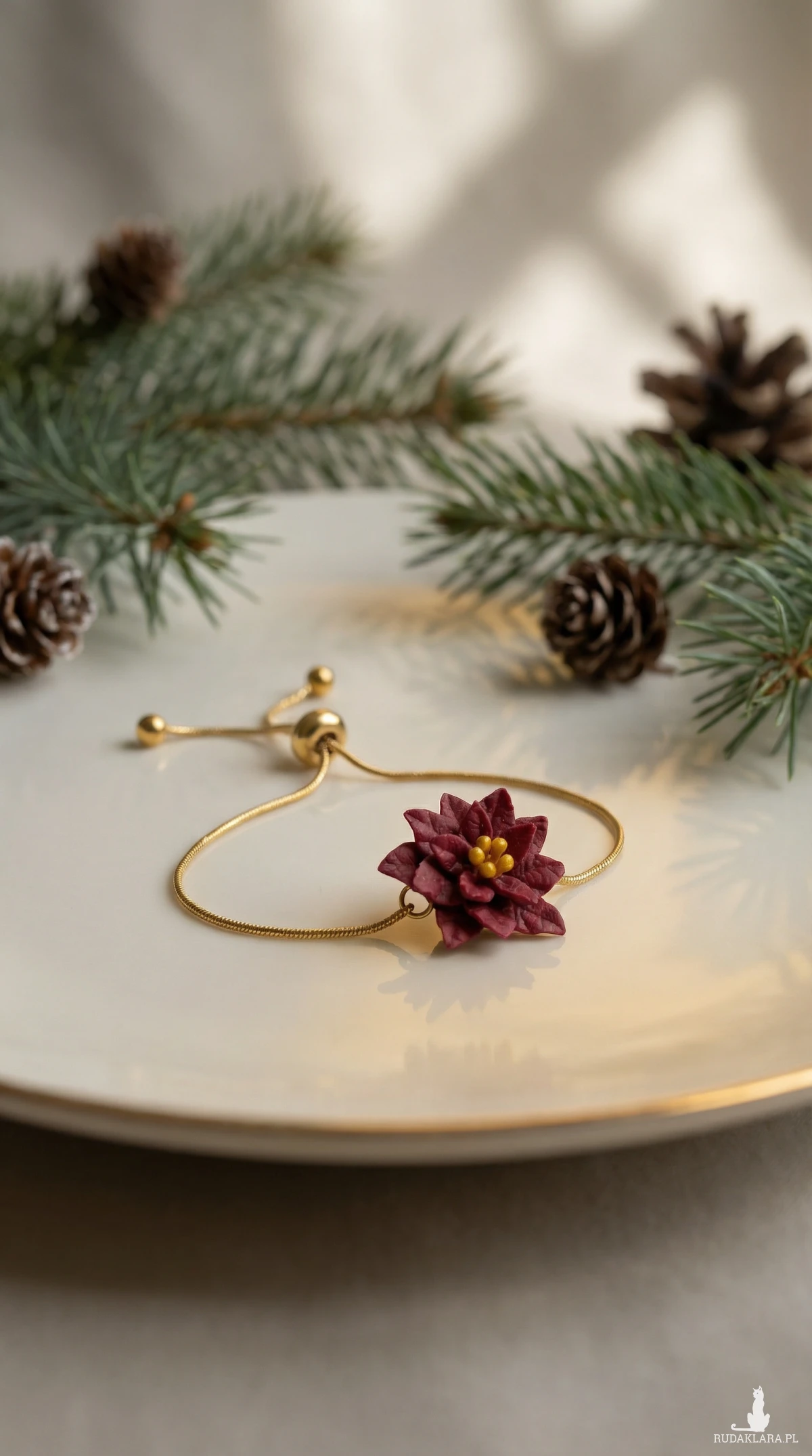 Elegancka, świąteczna bransoletka z bordową poisencją.