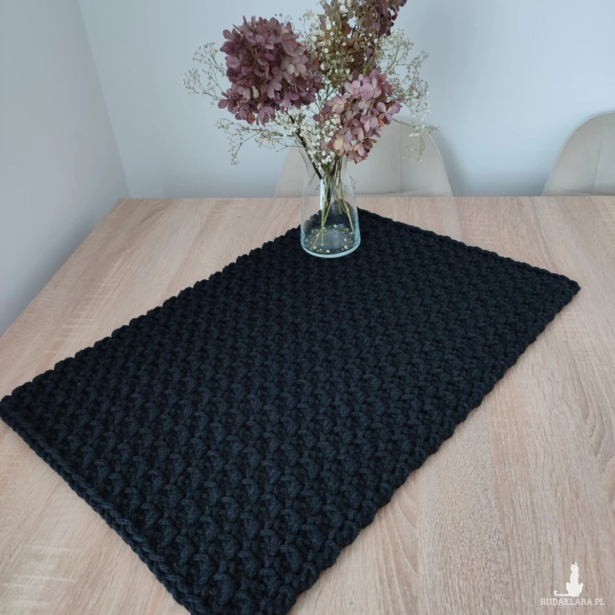 Bieżnik o wymiarach 40cmx60cm, wykonany metodą szydełkowania z polskiego sznurka bawełnianego 5mm.