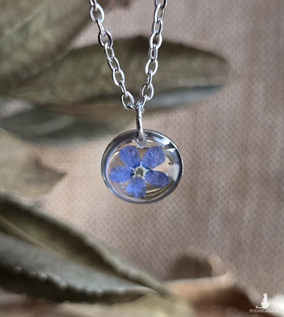 Oferuję Państwu unikalną biżuterię. Zawieszka jest wykonana z suszonych kwiatów i żywicy epoksydowej. Biżuteria jest wspaniałym i oryginalnym prezentem na lata.