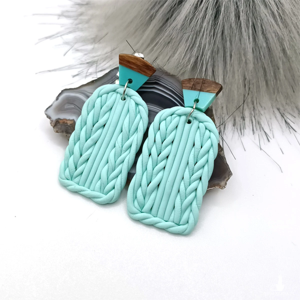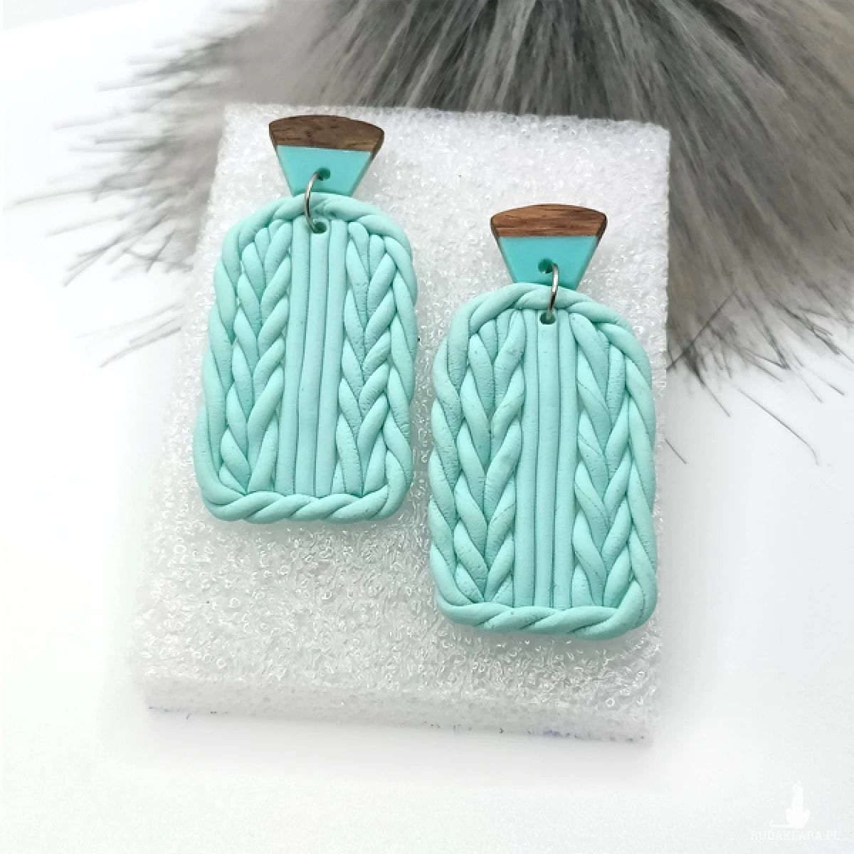 Kolczyki zostały wykonane w całości ręcznie z wysokiej jakości glinki polimerowej. Jest to materiał bardzo trwały, lekki i odporny na wszelkiego rodzaju czynniki zewnętrzne. Kolczyki są w kolorze miętowym, zawieszone na biglach ozdobnych z drewna orzechowego i żywicy, sztyfty ze stali chirurgicznej. Długość kolczyka z biglem 5,5 cm, szerokość 2,8 cm. Są bardzo lekkie i pasują do każdej stylizacji na każdą porę dnia. Biżuteria pakowana jest w ozdobne pudełko.