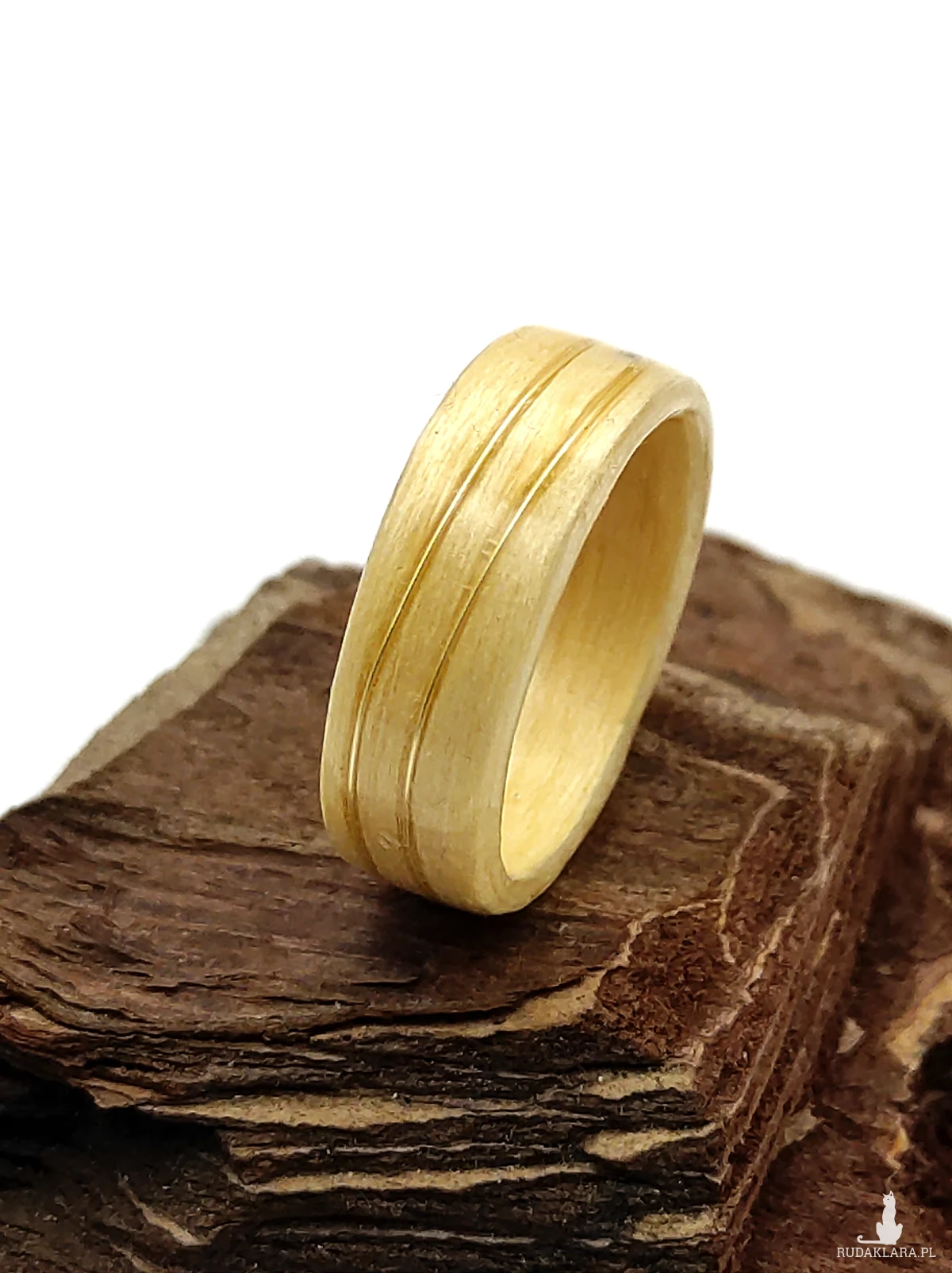 Klonowa Złota Fala – ręcznie wykonany drewniany pierścionek