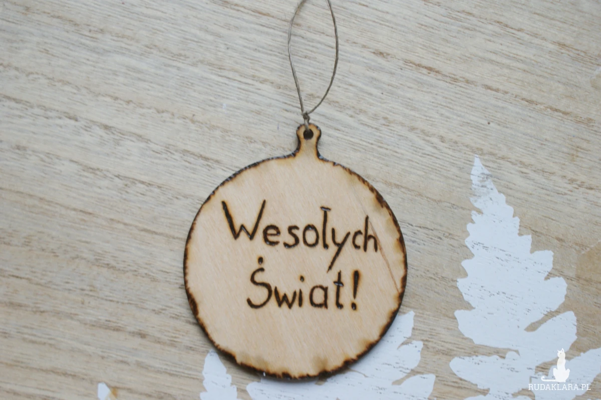 Drewniana zawieszka na choinkę.