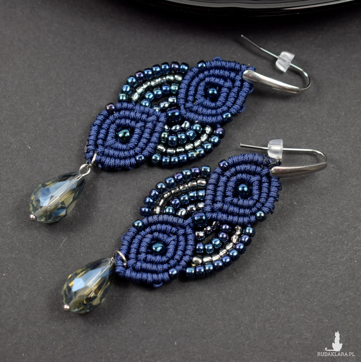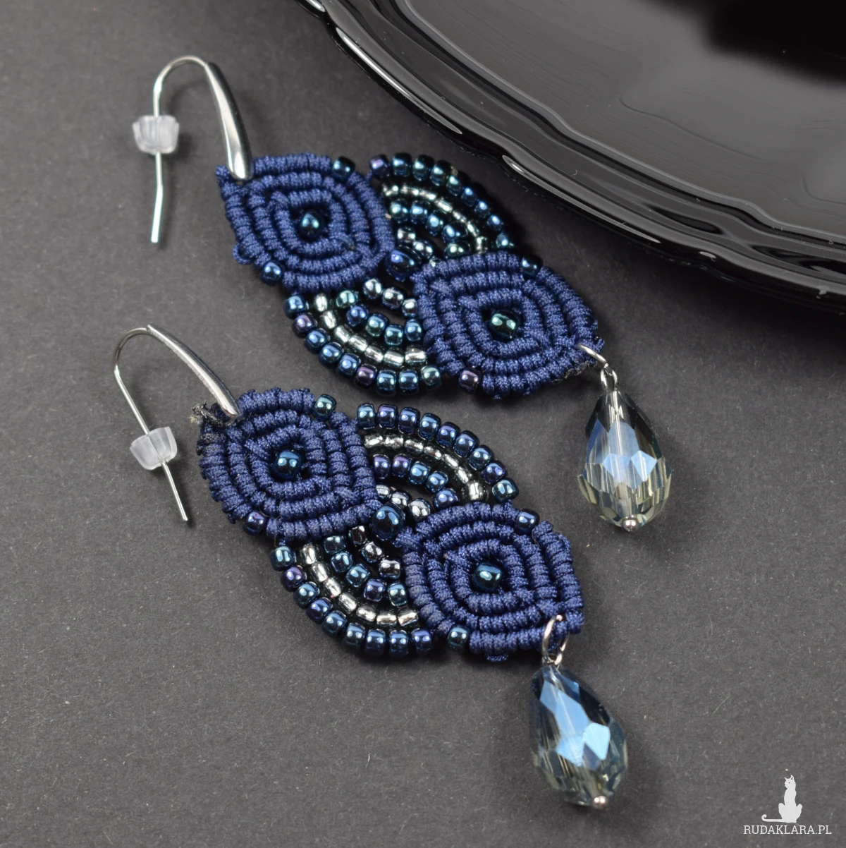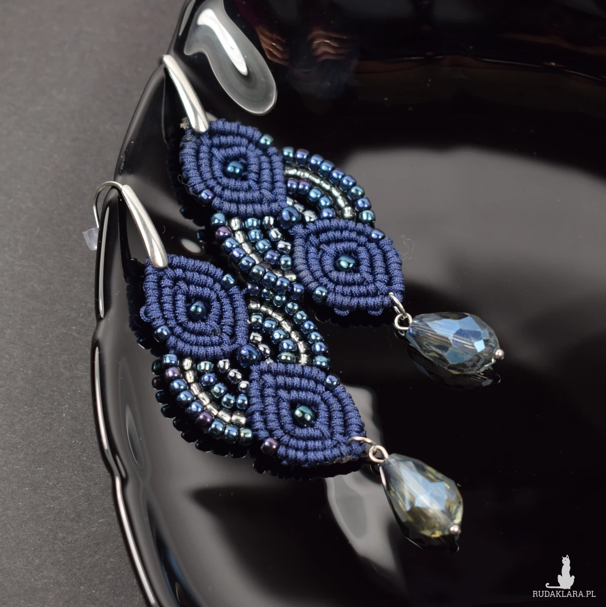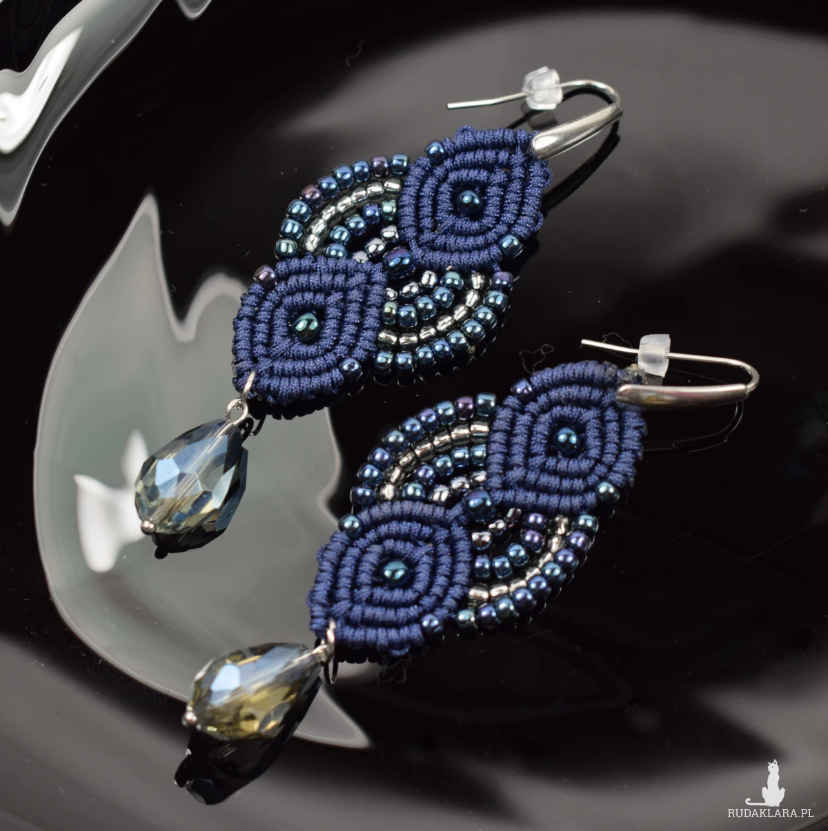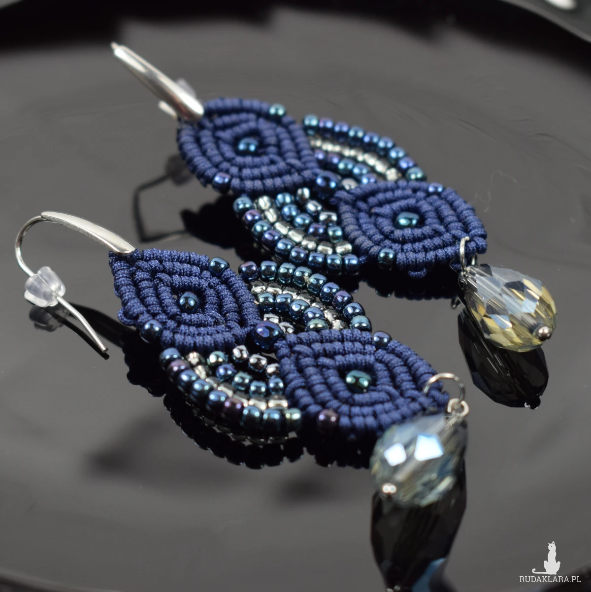 Długie kolczyki z koralików w odcieniach granatu i srebra - eleganckie, wieczorowe, stworzone na wyjątkowe okazje. Lekkie i wygodne w noszeniu, subtelnie poruszają się przy każdym ruchu.