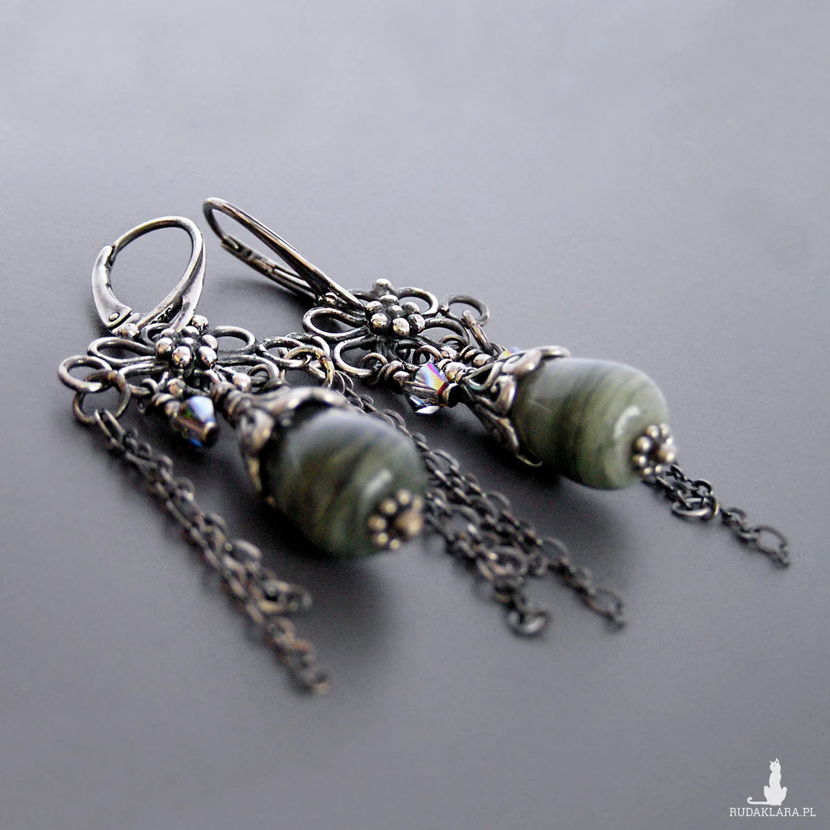 Kolczyki Scarlett, krople jaspisu, kryształki, srebro 925, kolekcja Przeminęło z Wiatrem
