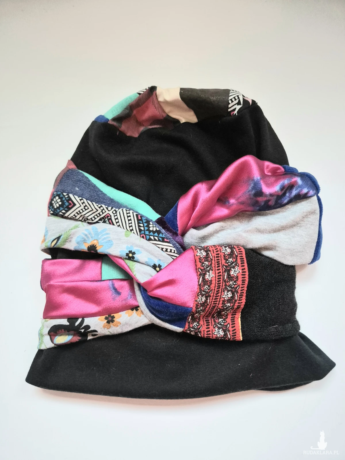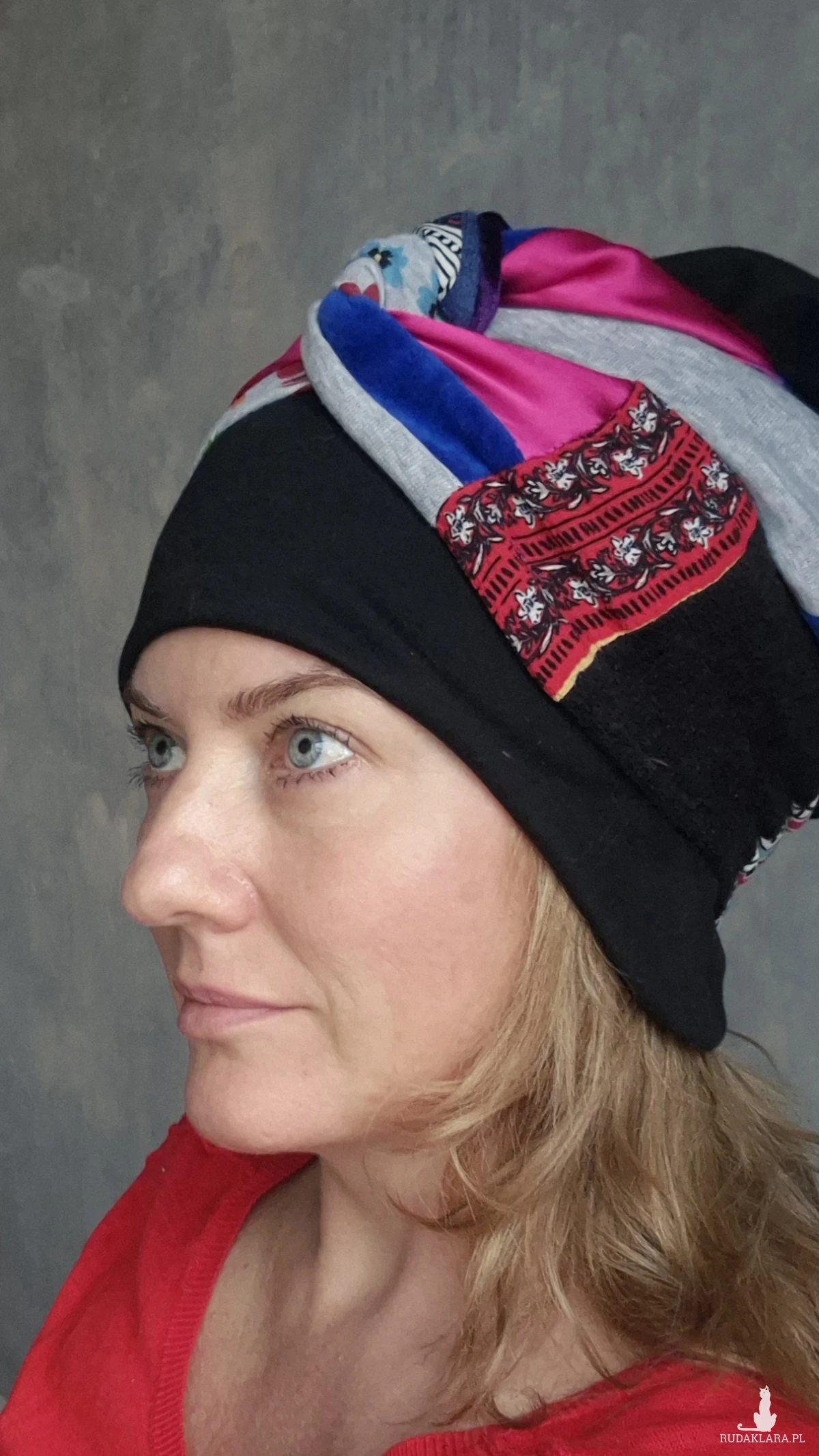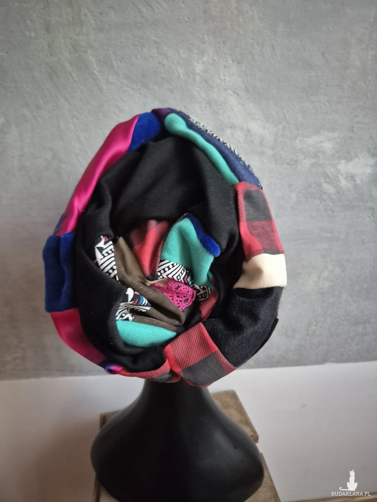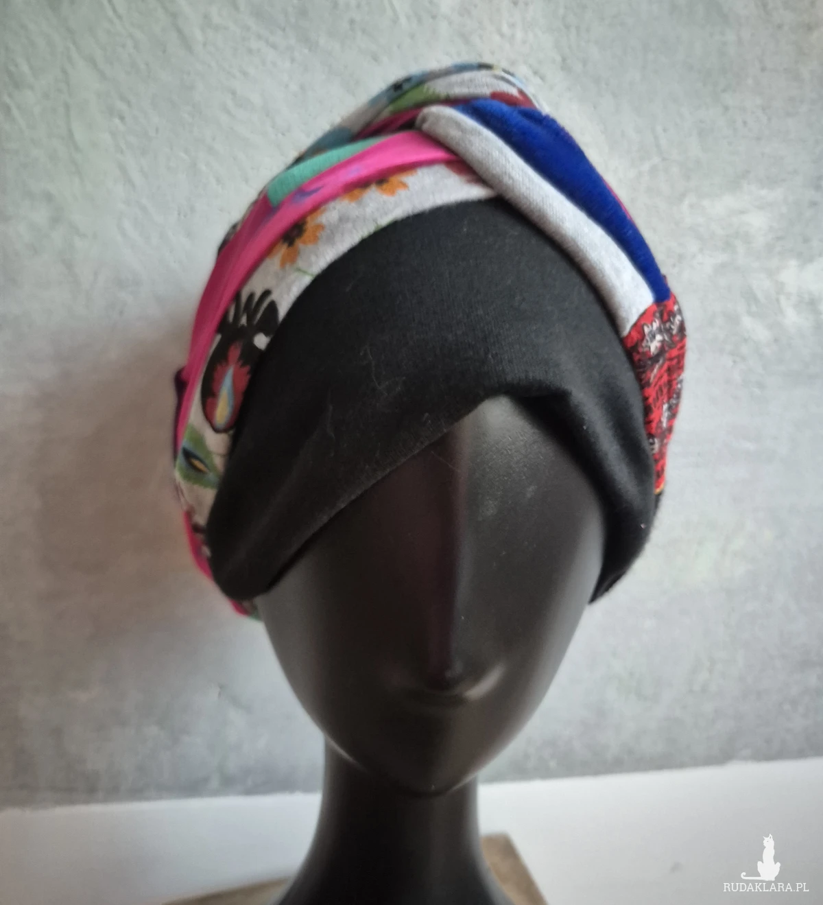 Czapka turbanowa w uniwersalnym rozmiarze ,na podszewce ,ciepła ,miękka wygląda fantastycznie ,ale nie dla szarych myszek, nie dla osób które chcą przemknąć niewidoczne,czapka dla kobiet z pazurem, takich które się cieszą jak ktoś na nie patrzy polecam uszyta w pojedynczym egzemplarzu Box A1
