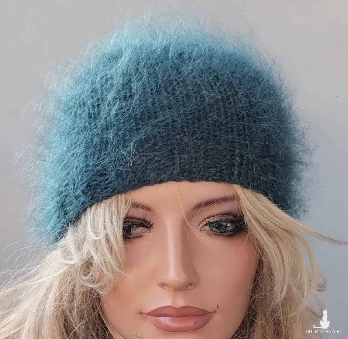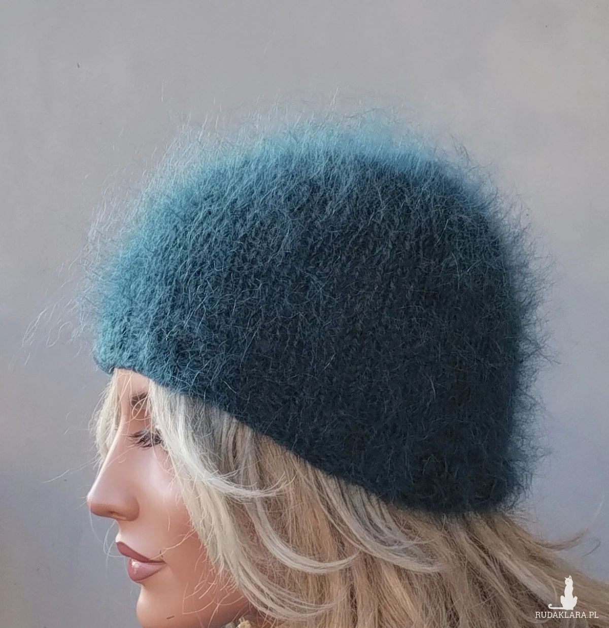 Moherowa czapka zrobiona ręcznie na drutach z mieszanki 26% moheru, 24% wełny, 50% akrylu w kolorze ciemnej zieleni. Włóczka puszysta, miękka, nie gryzie, ma śliczny włos. Rozmiar uniwersalny. Producent włóczki zaleca pranie ręczne w temperaturze 30 stopni, suszyć na leżąco. Płukać w płynie zmiękczającym.