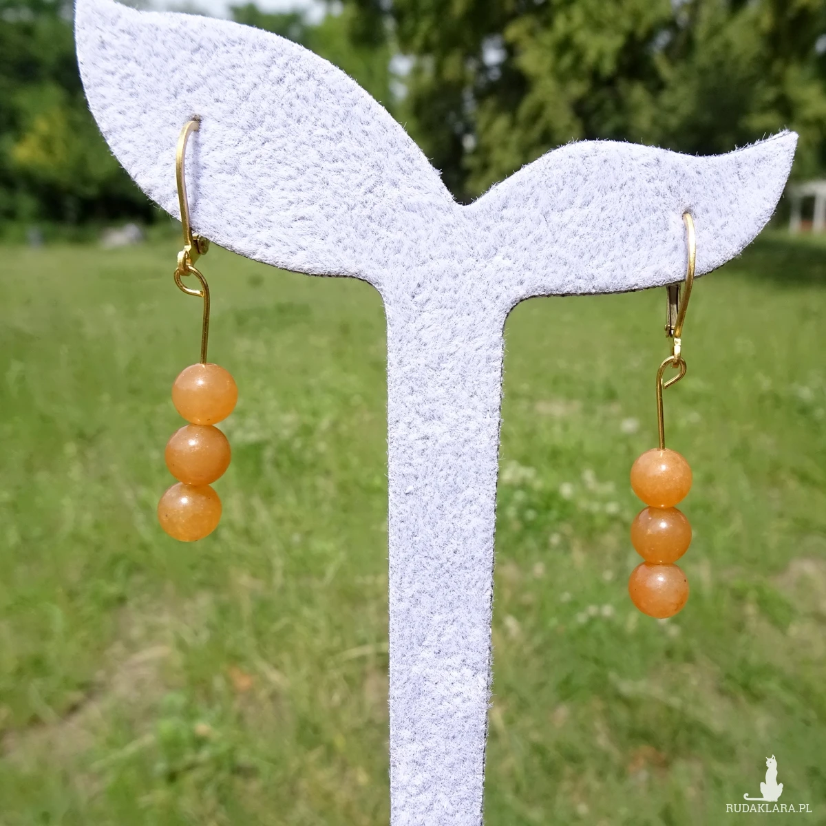 Kolczyki z czerwonego awenturynu, 6 mm, stalowe bigle angielskie