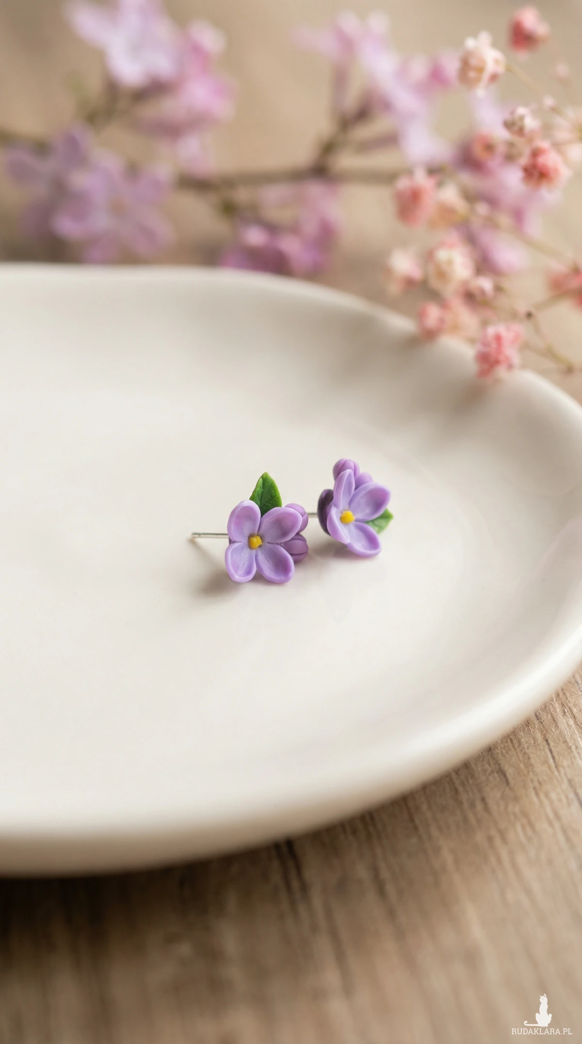 Piękne, wiosenne kolczyki z kwiatami bzu.