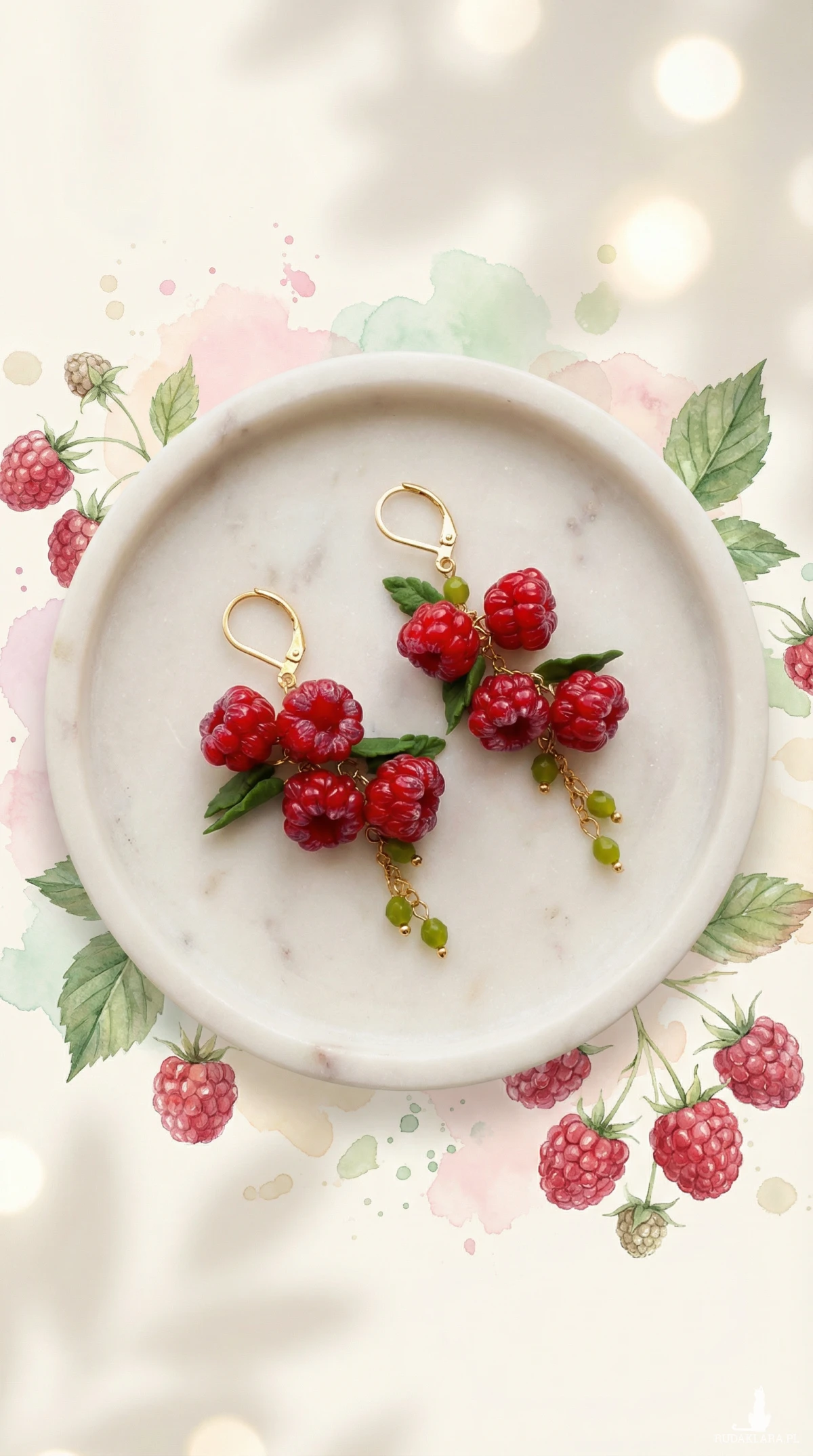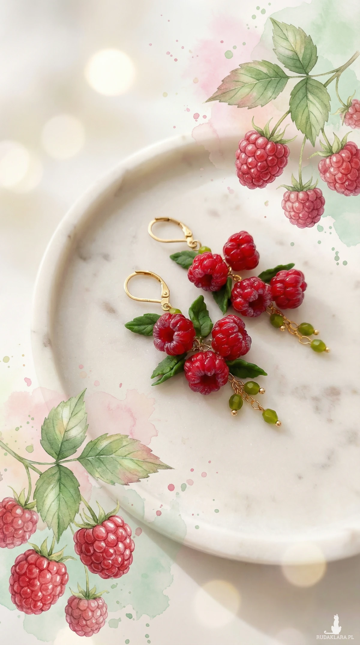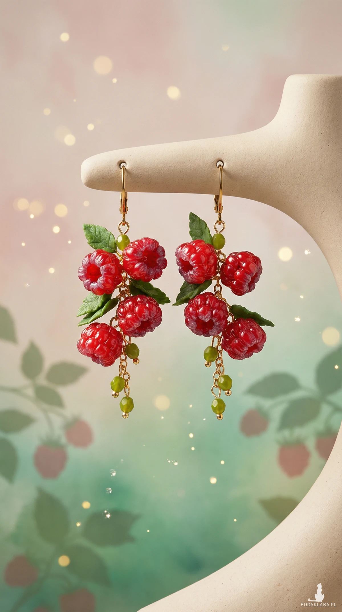 Kolczyki z malinkami ręcznie wykonane z glinki polimerowej.