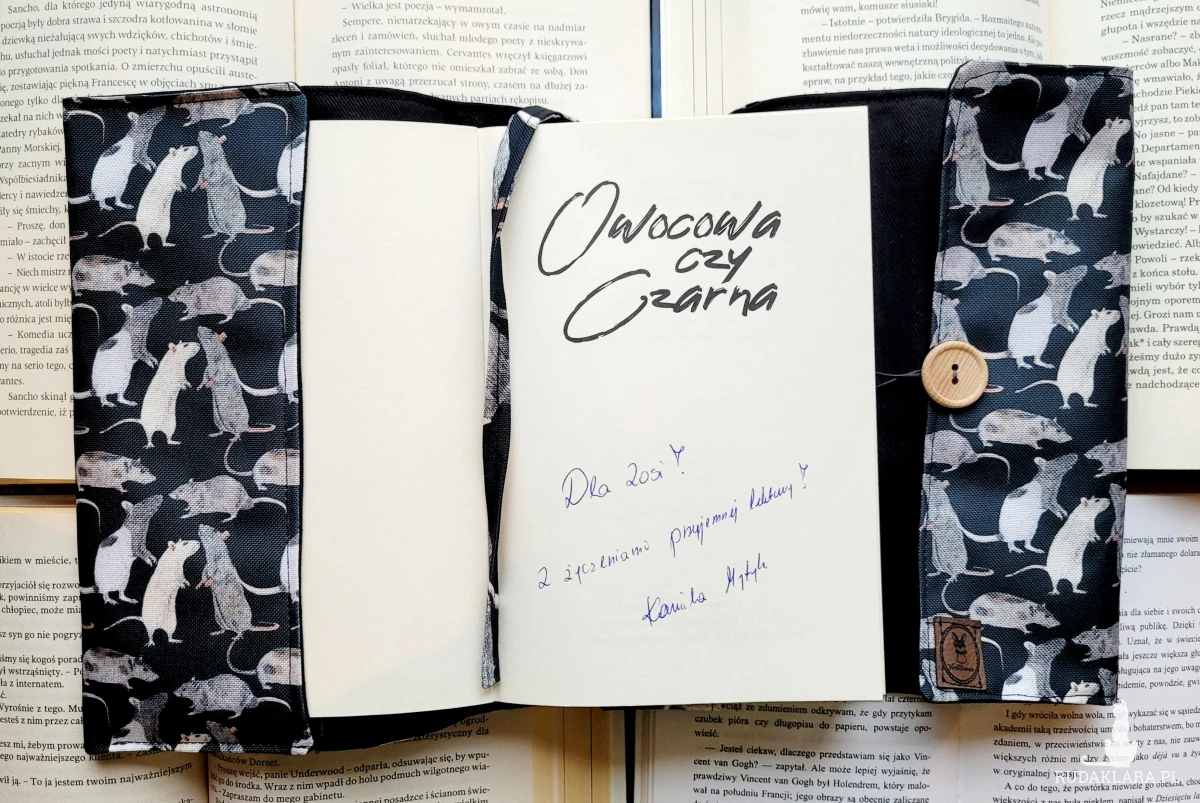 - zapięcie na gumkę, dzięki czemu książka się nie otwiera, a okładka dostosowuje się do grubości tomu;