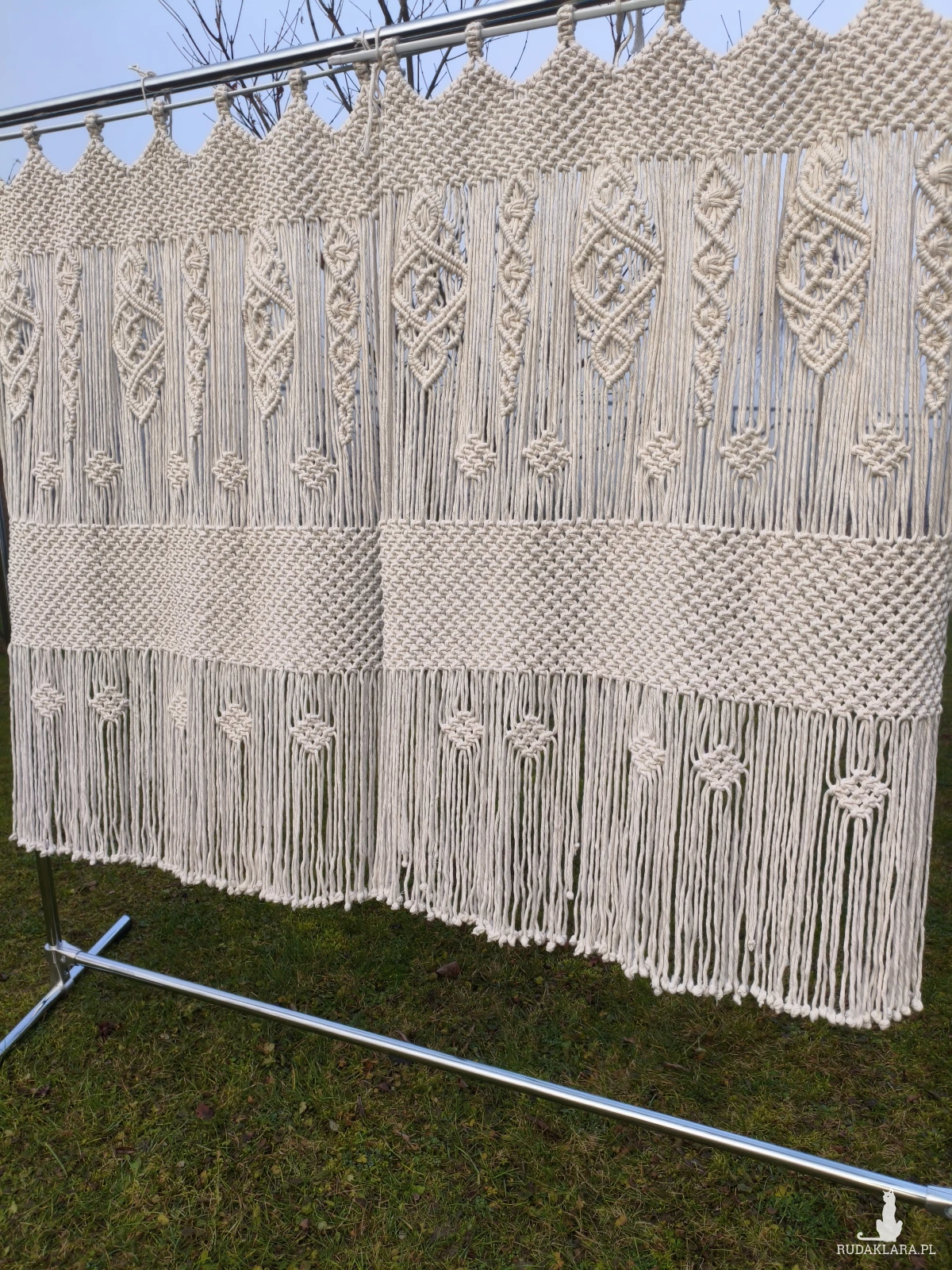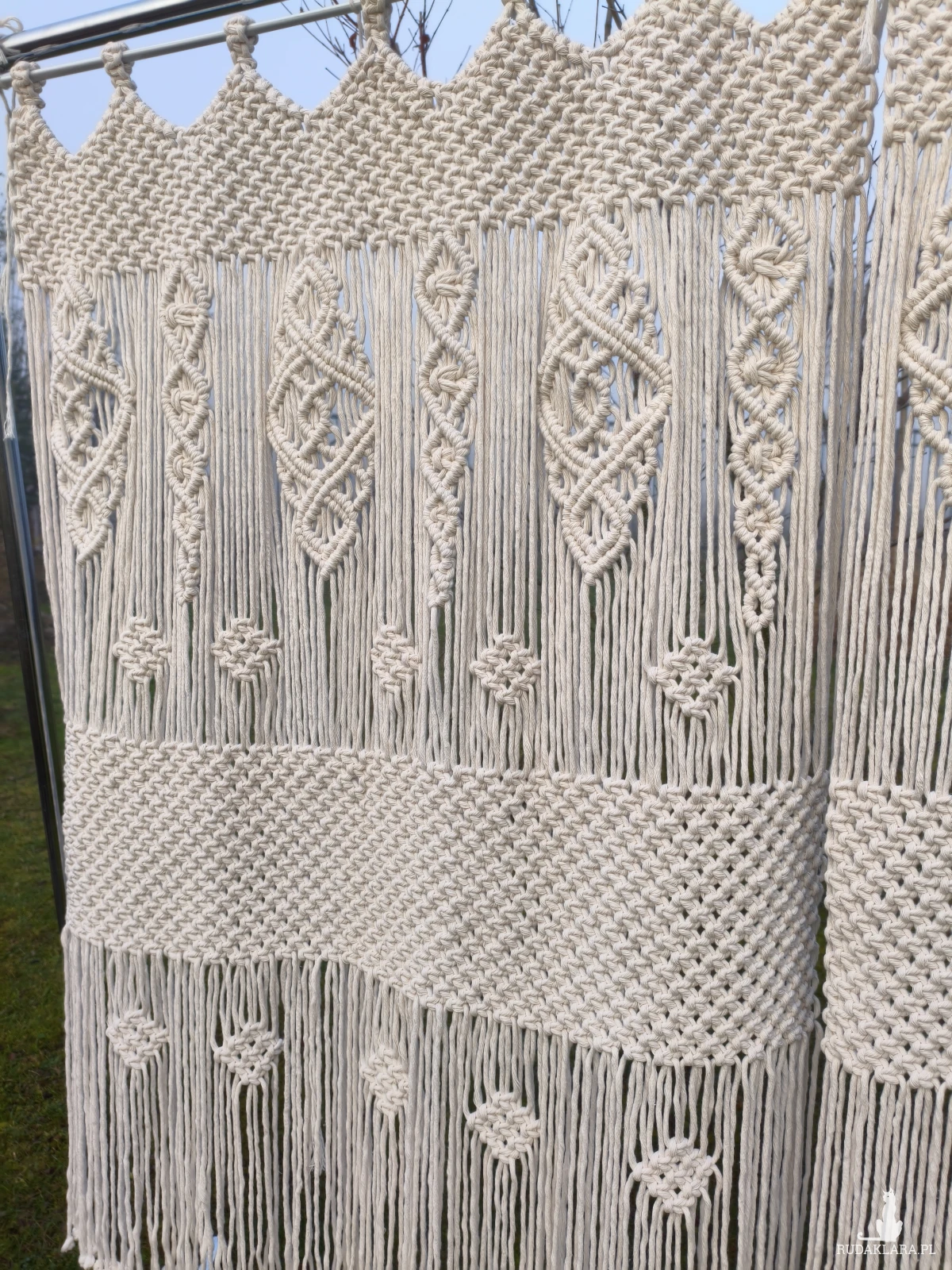 Ta ręcznie wypleciona firanka makramowa to idealne połączenie natury, rzemiosła i stylu boho.