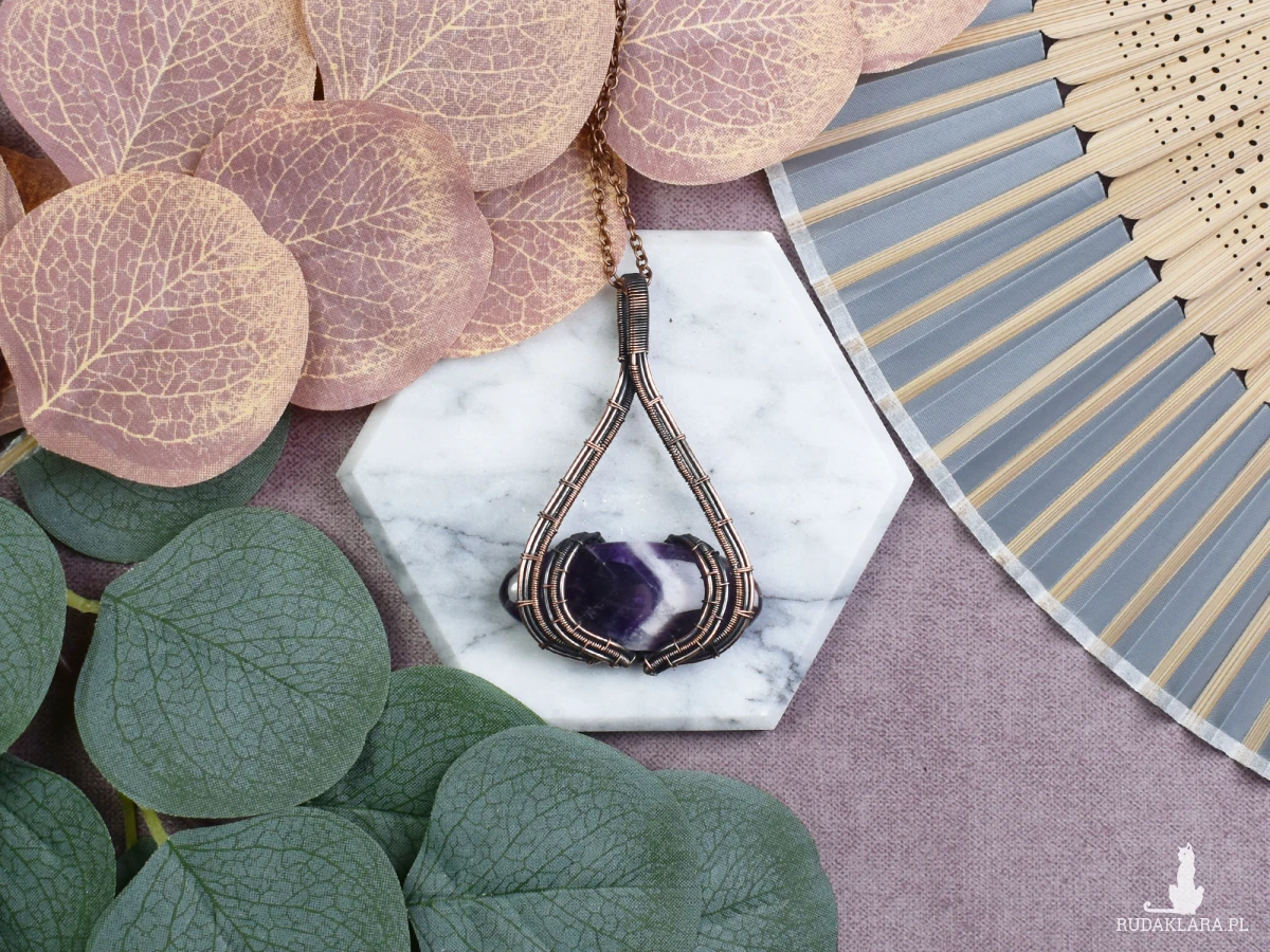 Wisiorek wykonany w technice wire wrapping z ametystem to nie tylko piękna ozdoba, ale także amulet o wyjątkowych właściwościach. Ametyst, znany jako kamień spokoju, pomaga w zrelaksowaniu umysłu i łagodzi napięcia. Jego fioletowy kolor symbolizuje harmonię i duchową równowagę. Dodatkowo, ametyst jest uznawany za kamień ochronny przed negatywnymi energiami, wzmacniający intuicję i umożliwiający głębszą medytację. Wisiorek ten nie tylko podkreśla indywidualny styl, ale również oferuje korzyści dla dobra psychicznego i duchowego noszącego go.