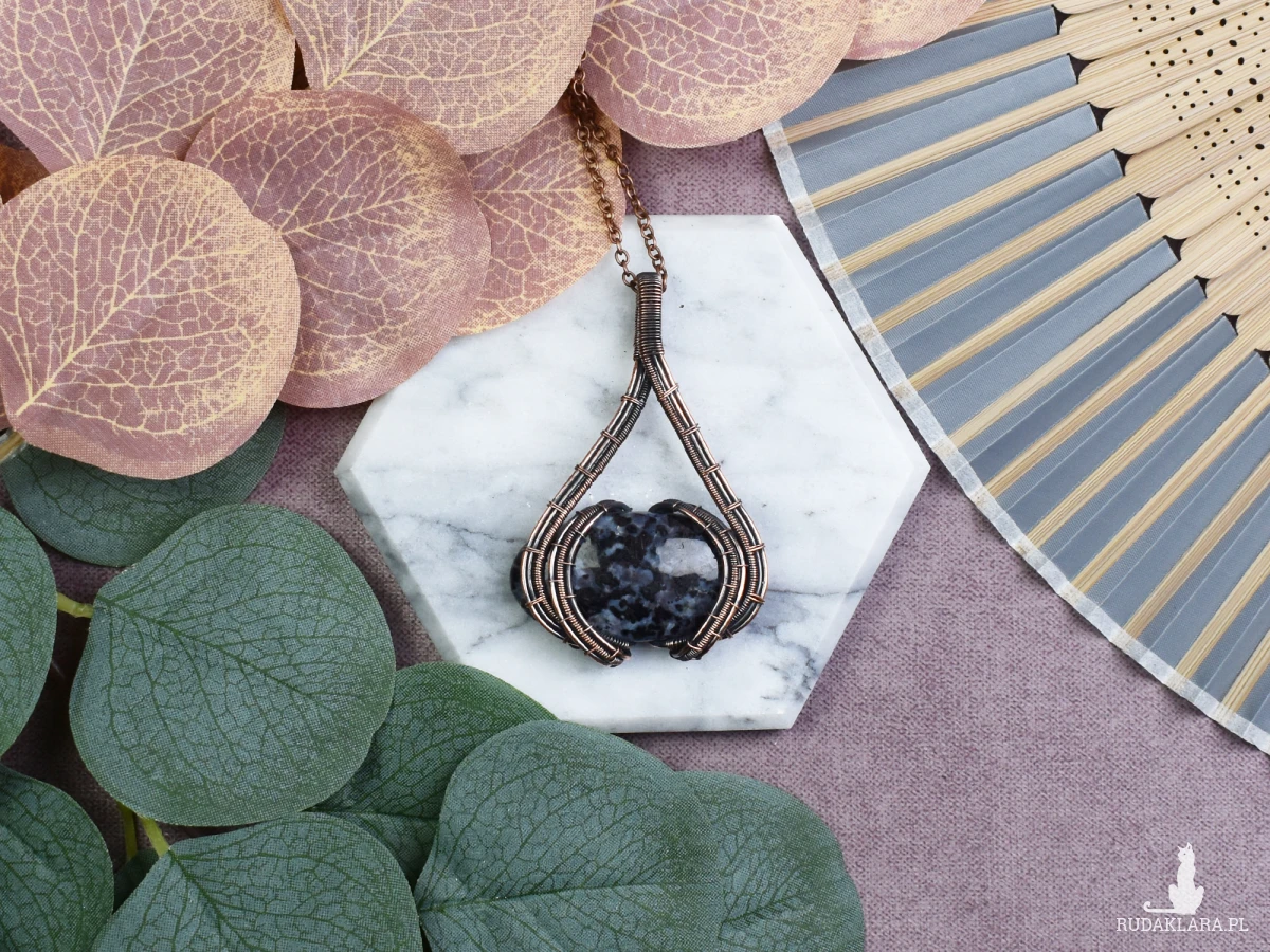 Miedziany wisiorek wykonany techniką wire wrapping z wyjątkowym kamieniem - jaspisem garboo. To niezwykłe połączenie miedzi i naturalnego kamienia, które tworzy prosty, a jednocześnie wyrazisty dodatek. Delikatne zawinięcia drutu podkreślają unikalne cechy kamienia, nadając mu oryginalny charakter. Jaspis garboo, znany również jako jaspis garbusowy, to kamień o pięknych wzorach i ciepłych barwach, co sprawia, że każdy wisiorek jest niepowtarzalny. To subtelne, ręcznie wykonane dzieło, które wnosi do stylizacji naturalny akcent, emanujący siłą i urodą kamienia. Idealny wybór dla miłośników prostoty i autentyczności w biżuterii.