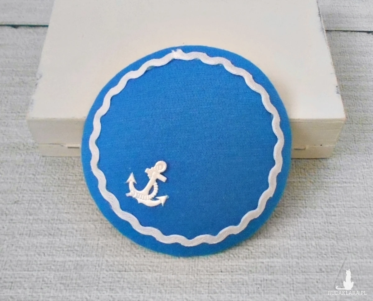 Prosty fascynator, który doskonale uzupełnia styl marynistyczny. Niebieska kolorystyka z delikatnym akcentem bieli oraz motyw kotwicy subtelnie nawiązuje do morskich przygód. Ręcznie wykonana ozdoba do włosów podkreśla Twój styl i pasję do mody, dodając każdej marynistycznej stylizacji elegancji i oryginalności.